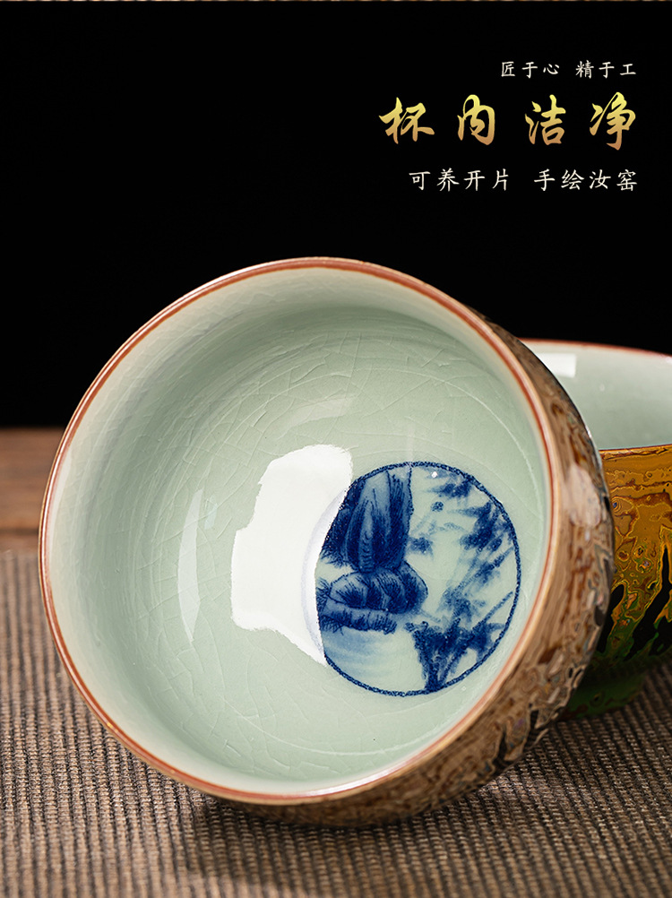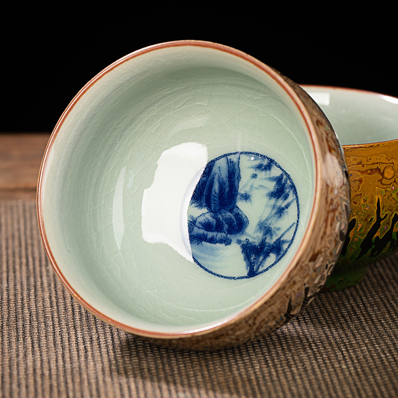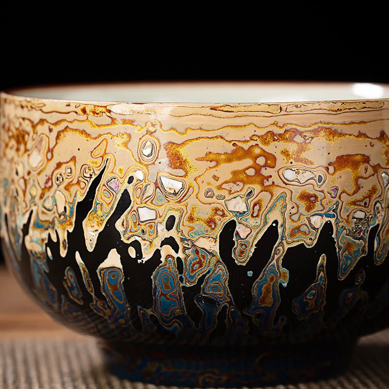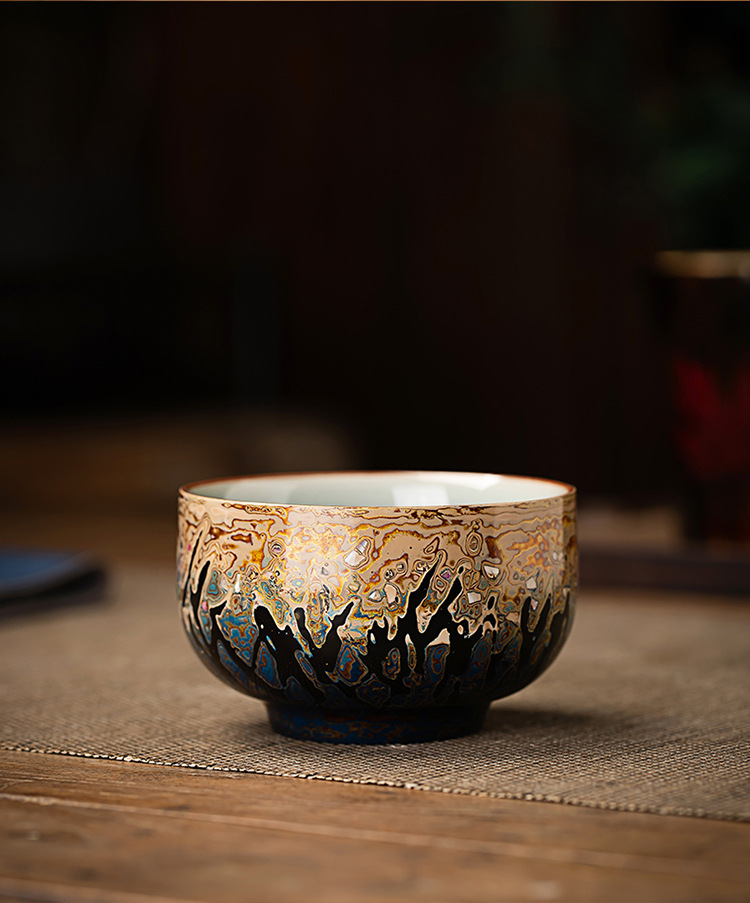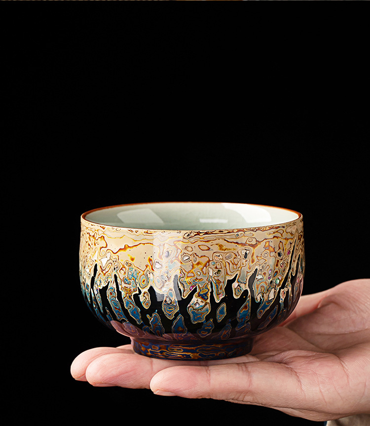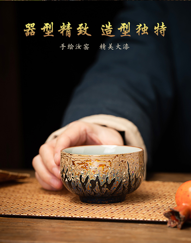 冰裂大漆茶杯福州漆器茶具品茗杯犀皮漆主人杯子纯手工陶瓷茶杯