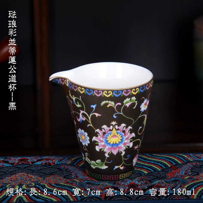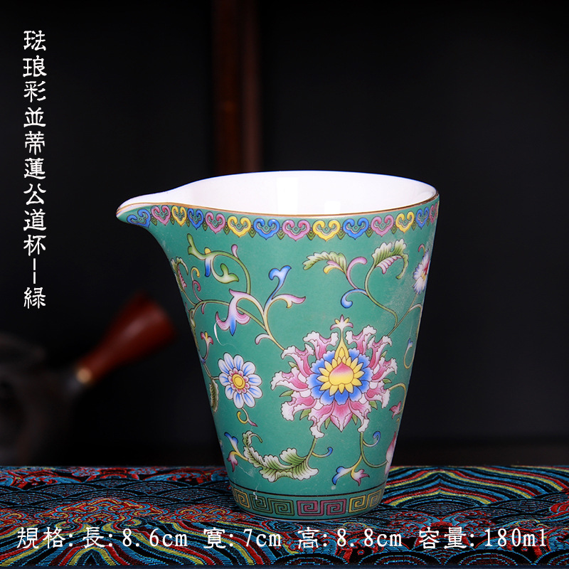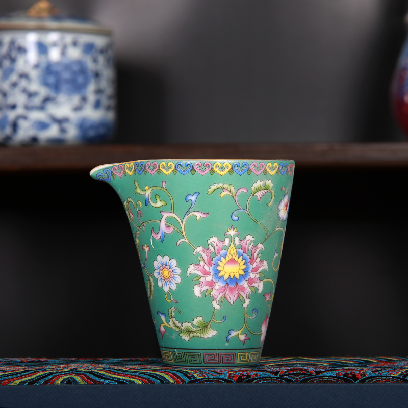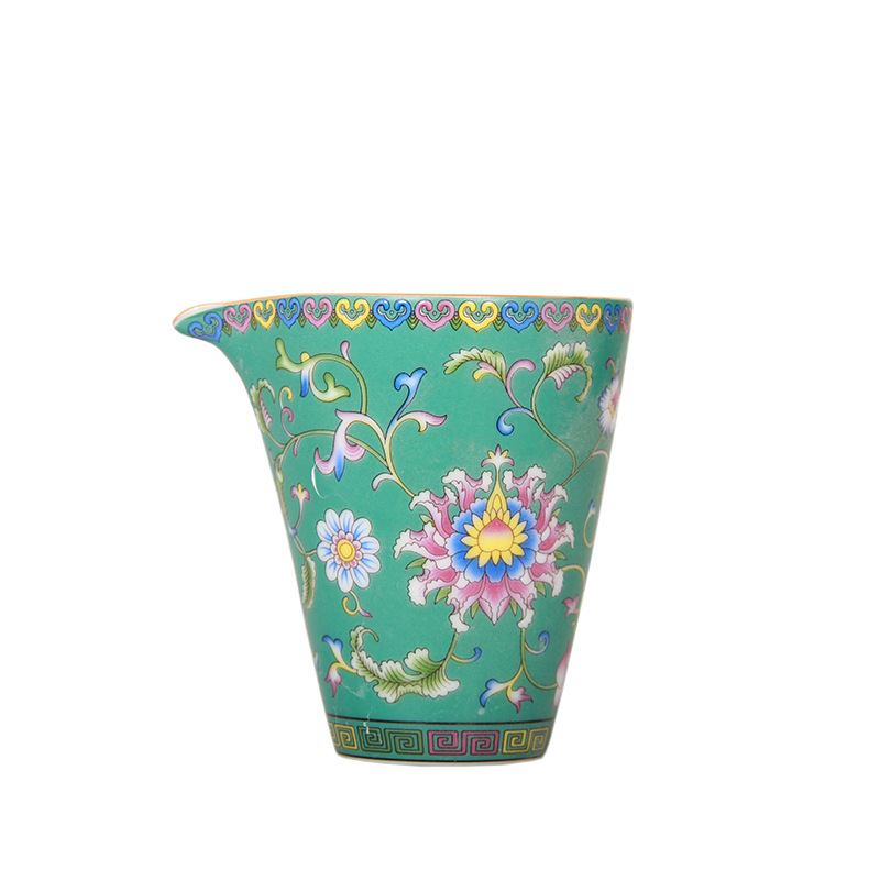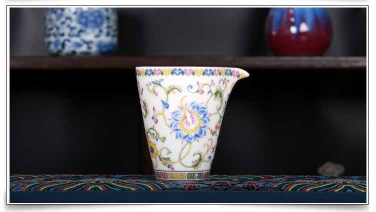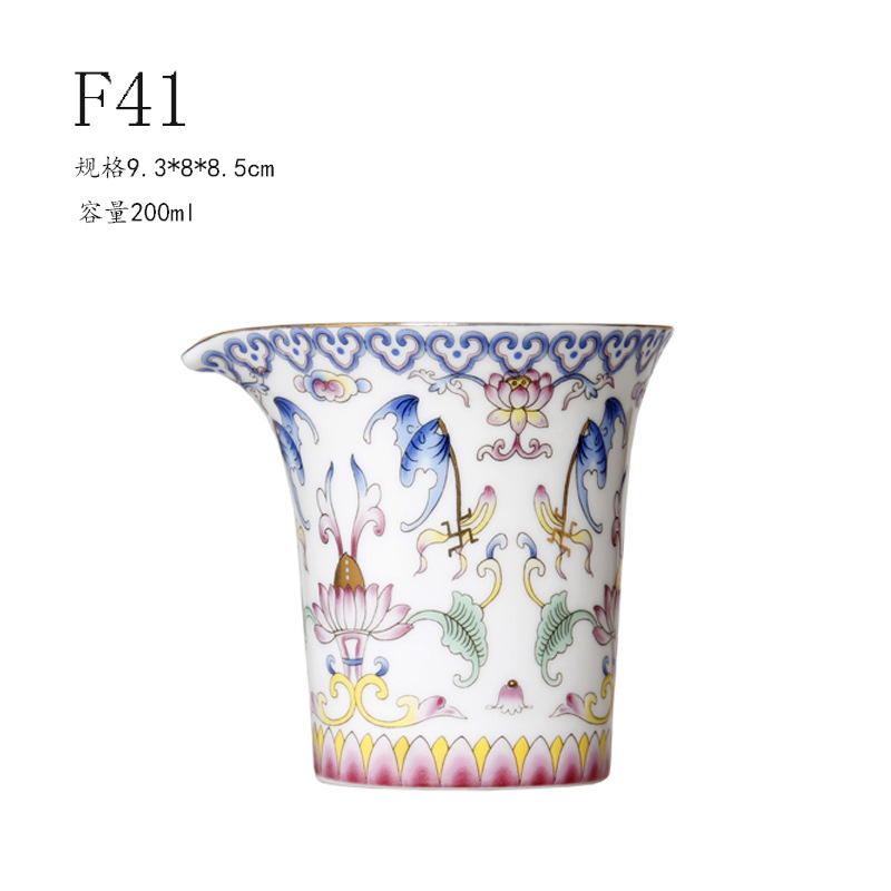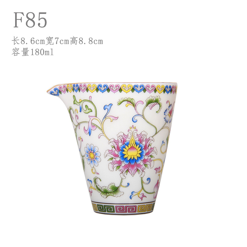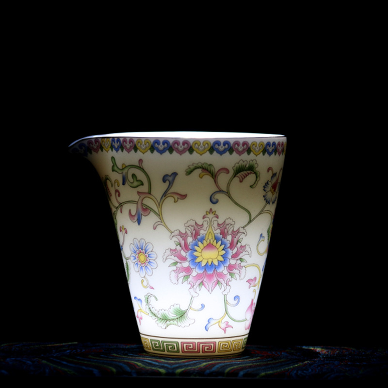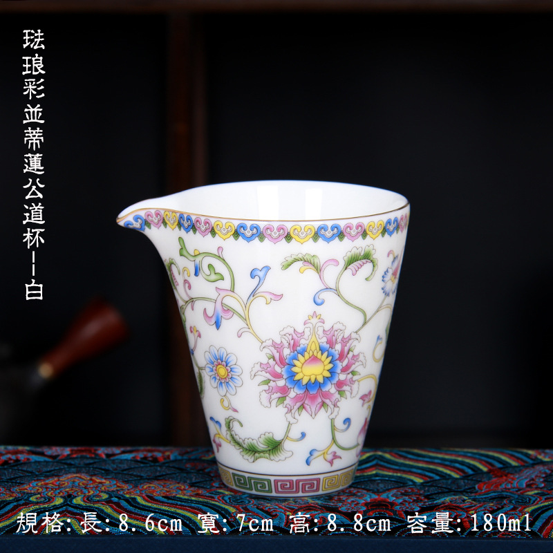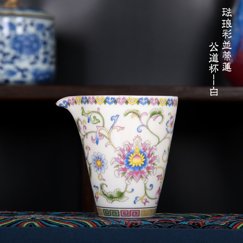 珐琅彩万花无耳茶海宫廷风养线白瓷手抓公道杯玻璃公杯陶瓷分茶器