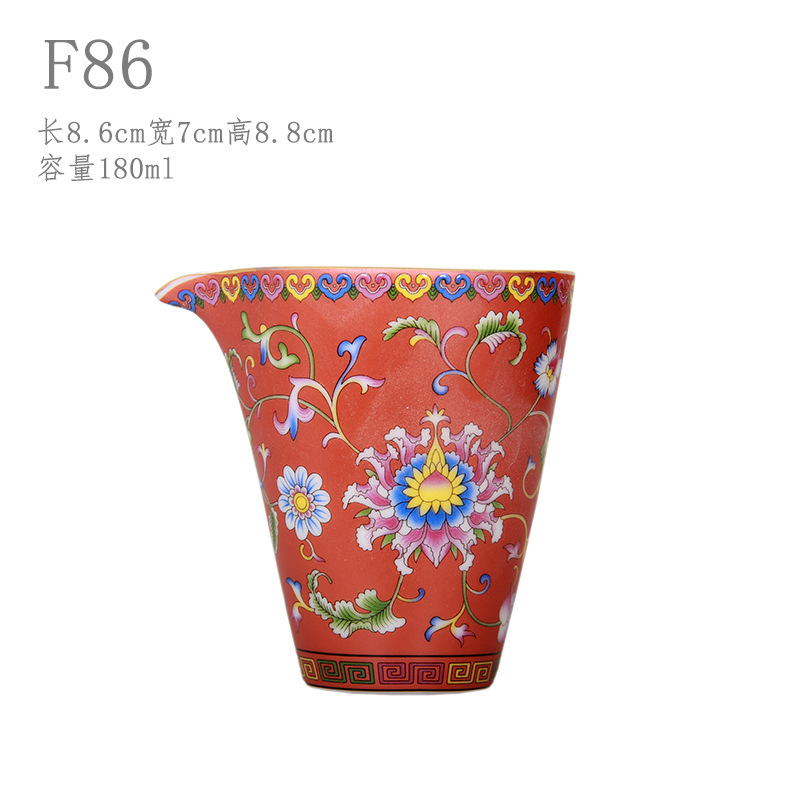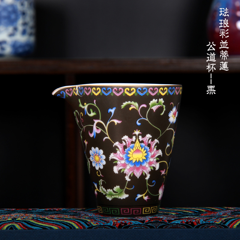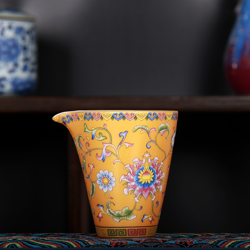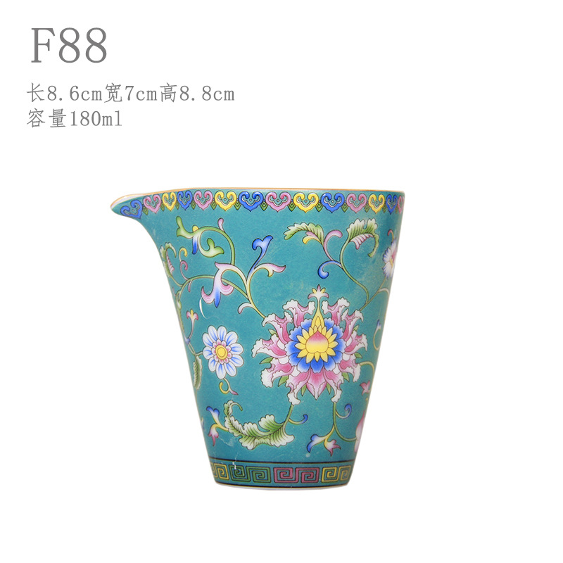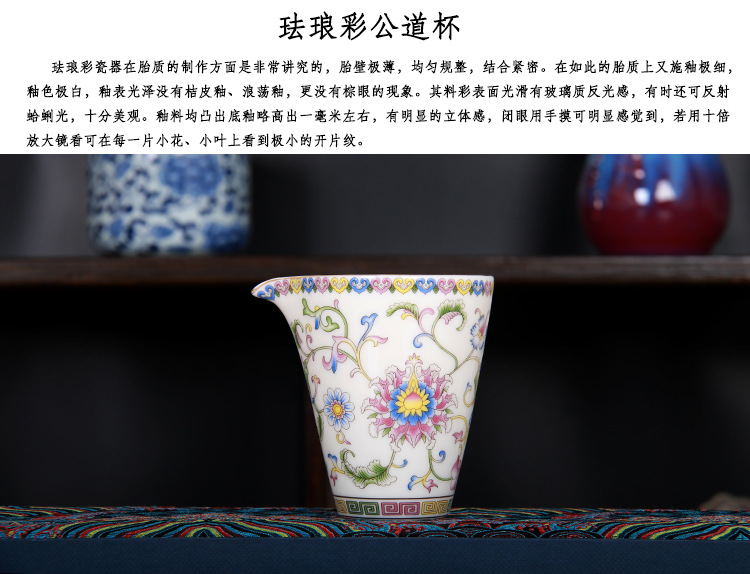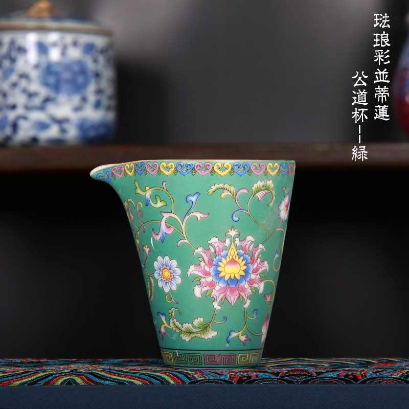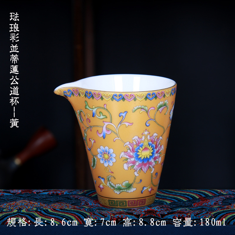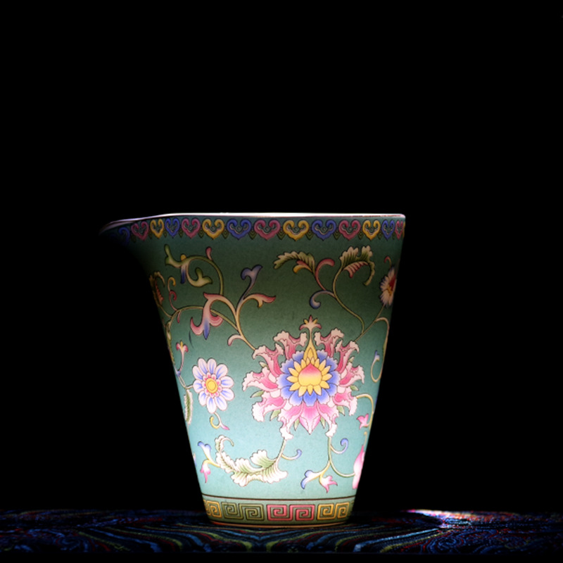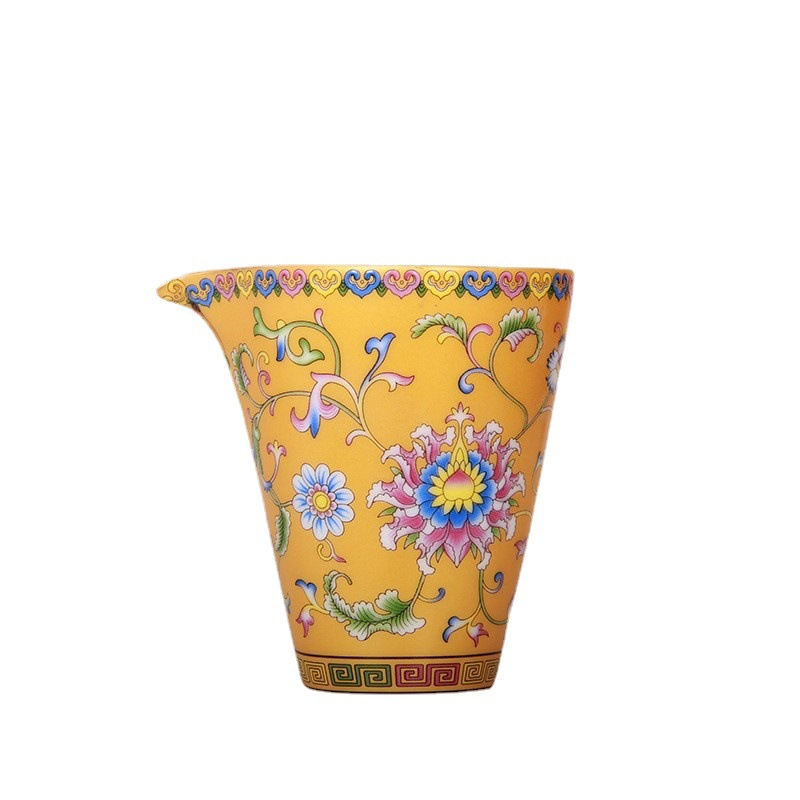 珐琅彩万花无耳茶海宫廷风养线白瓷手抓公道杯玻璃公杯陶瓷分茶器