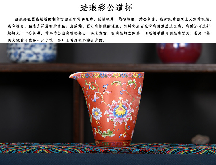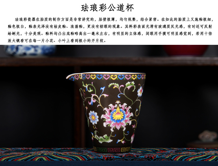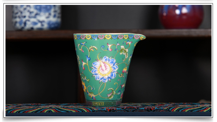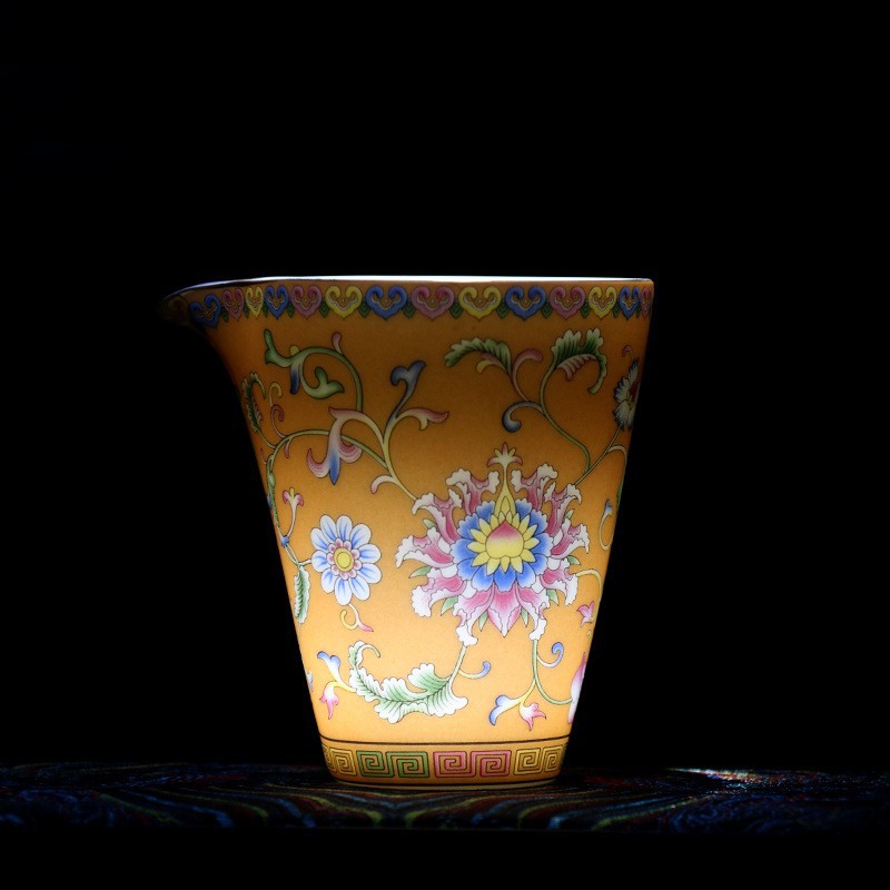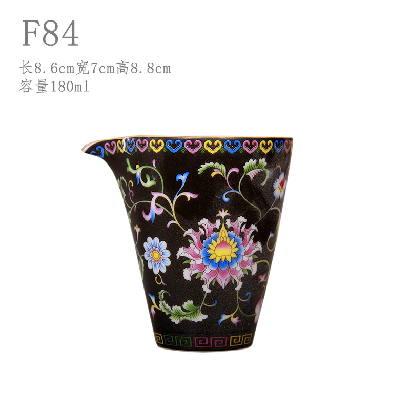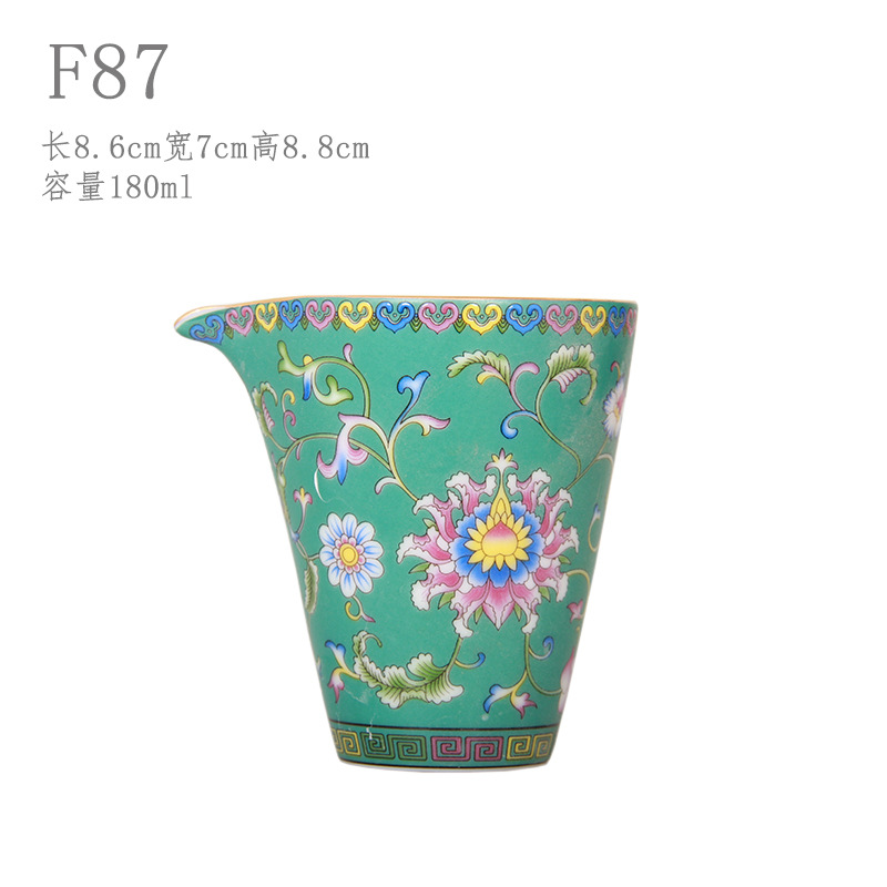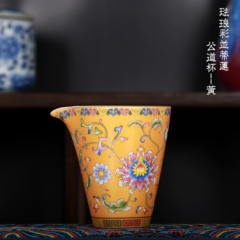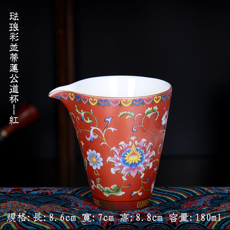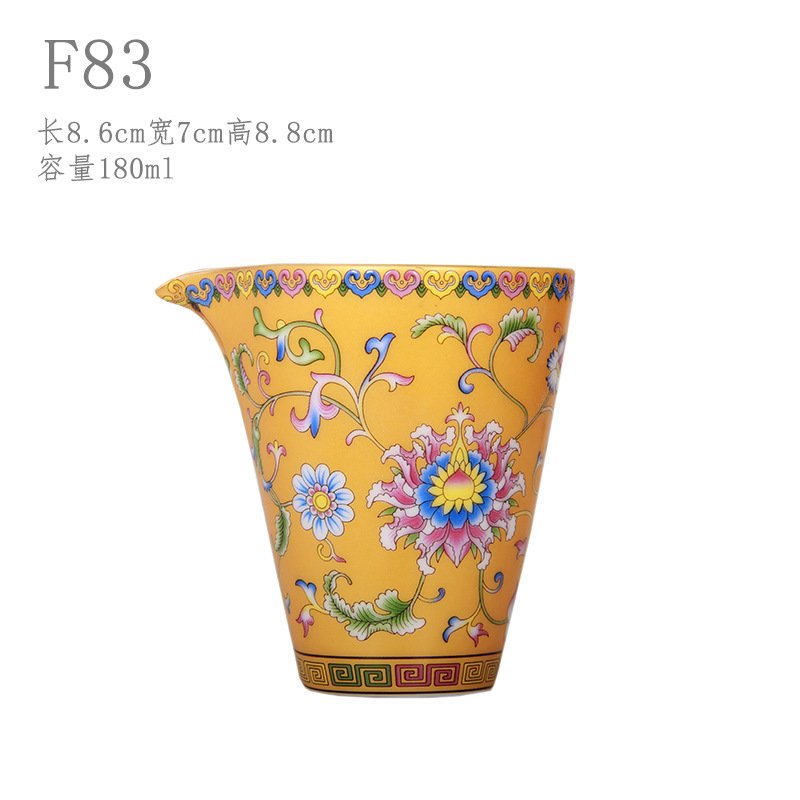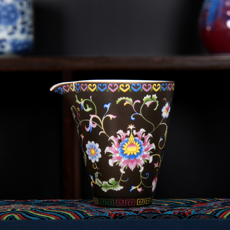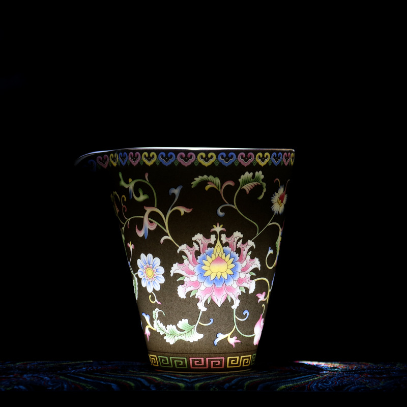 珐琅彩万花无耳茶海宫廷风养线白瓷手抓公道杯玻璃公杯陶瓷分茶器
