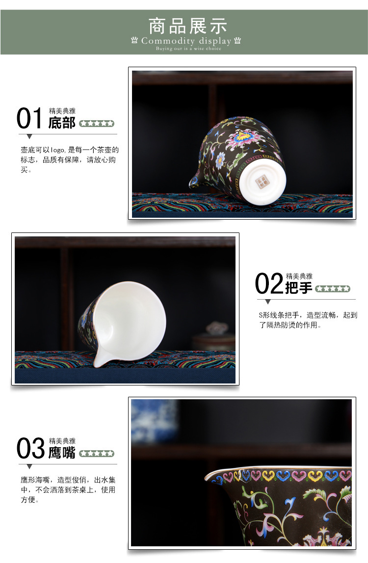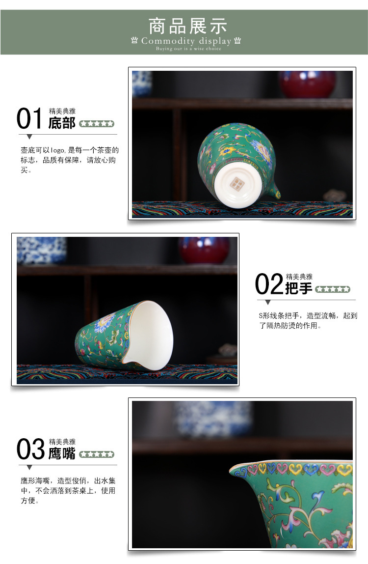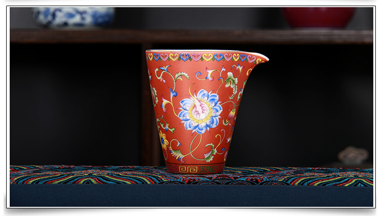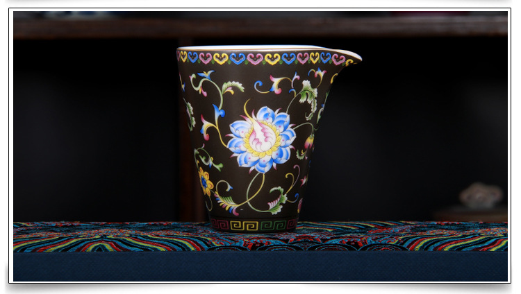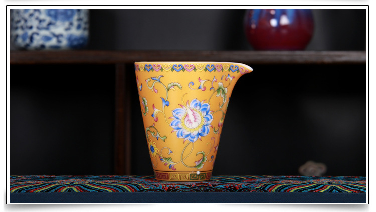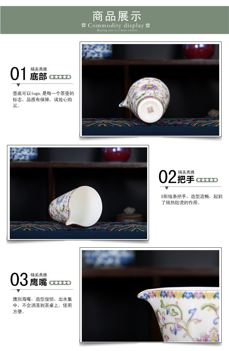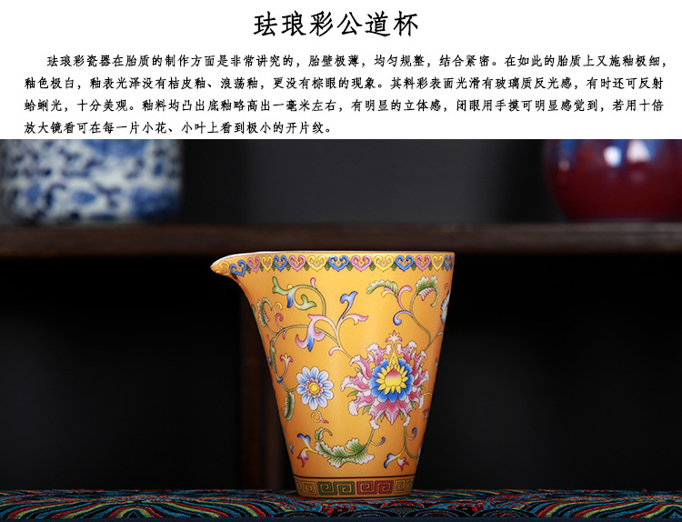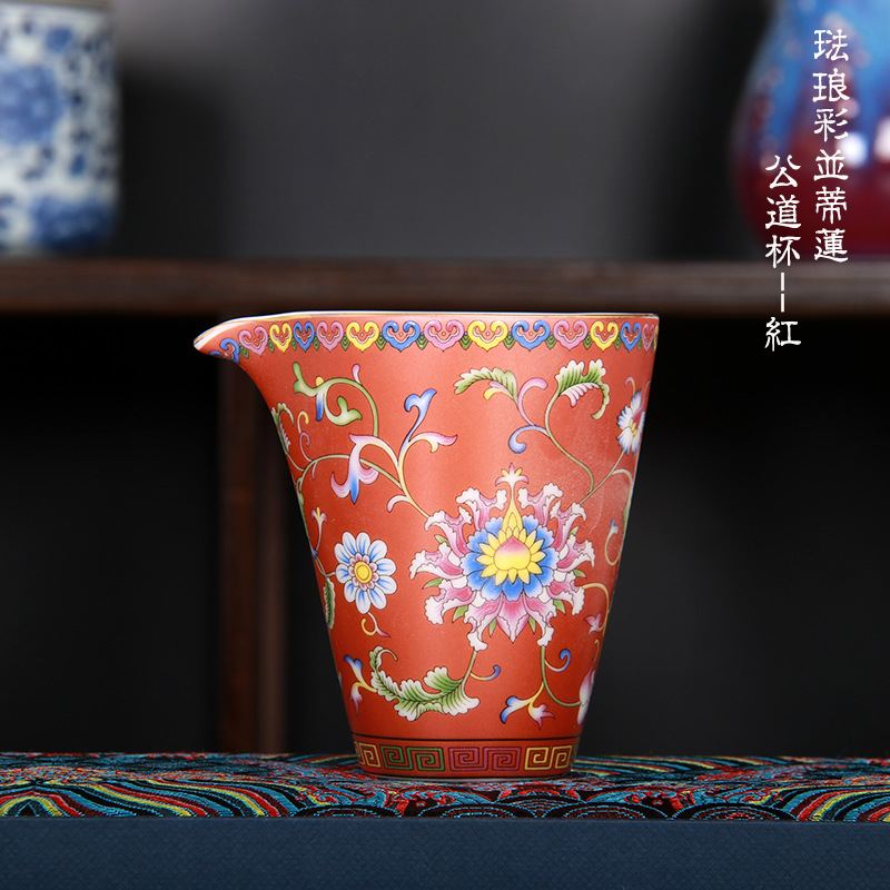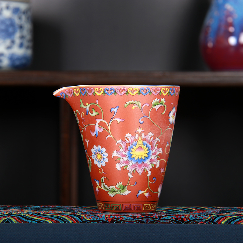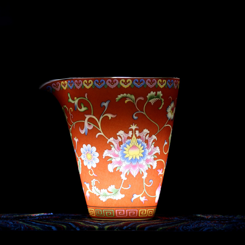 珐琅彩万花无耳茶海宫廷风养线白瓷手抓公道杯玻璃公杯陶瓷分茶器