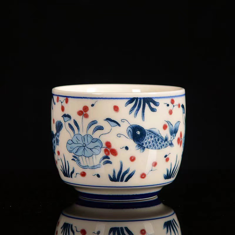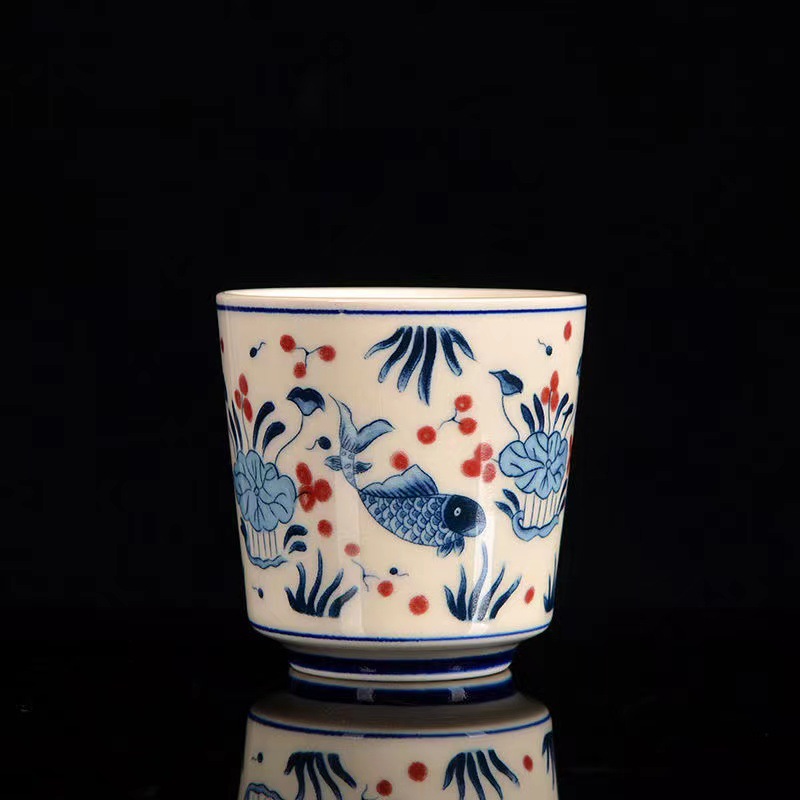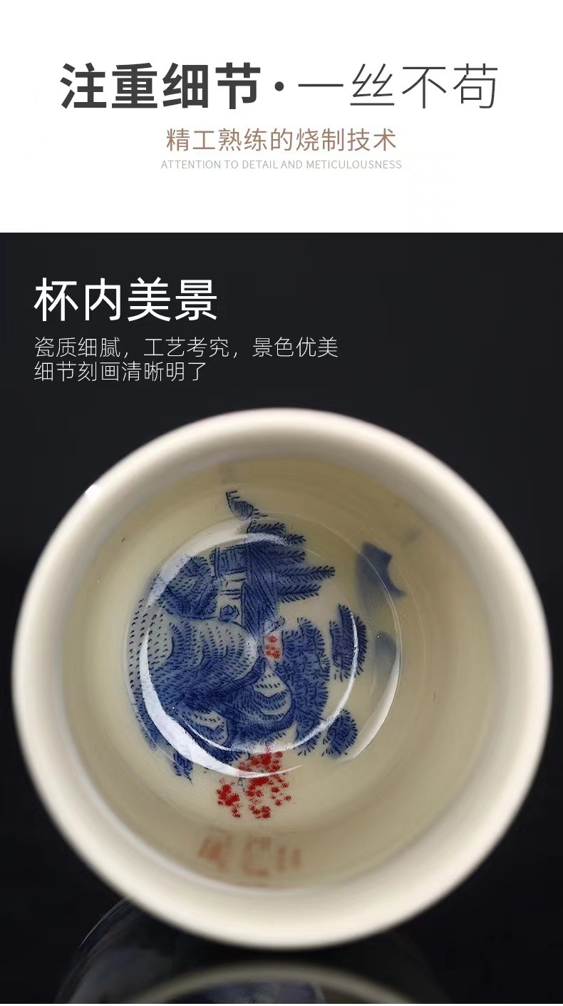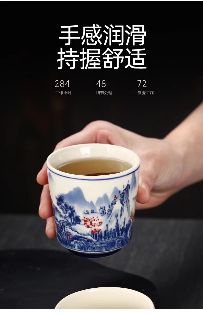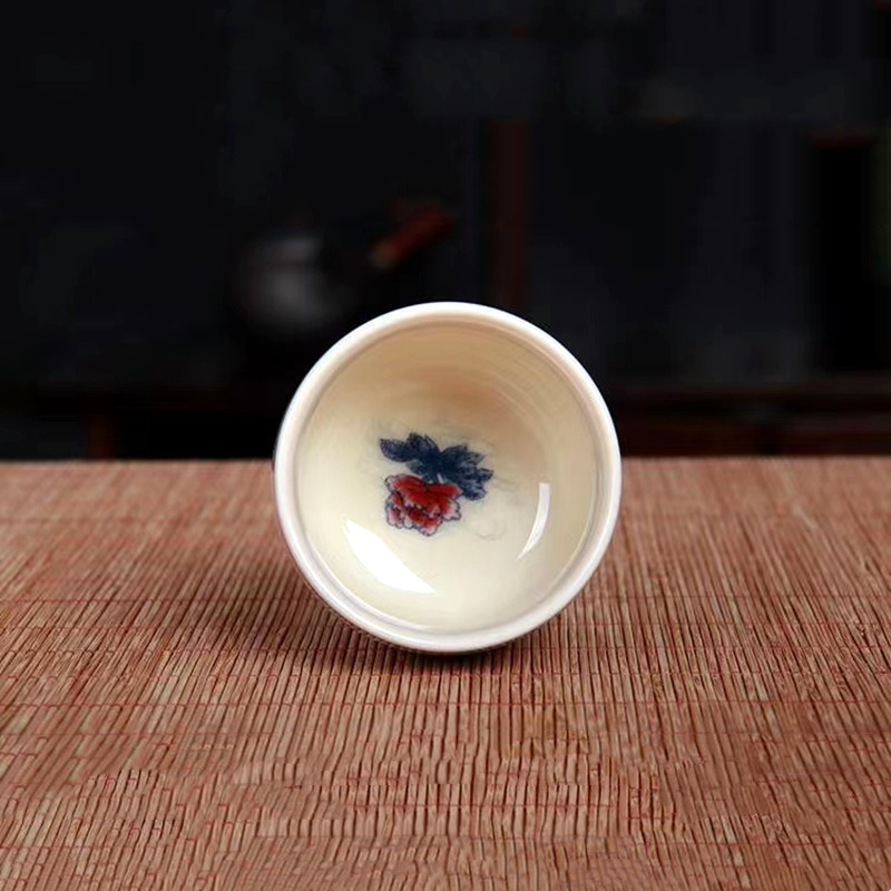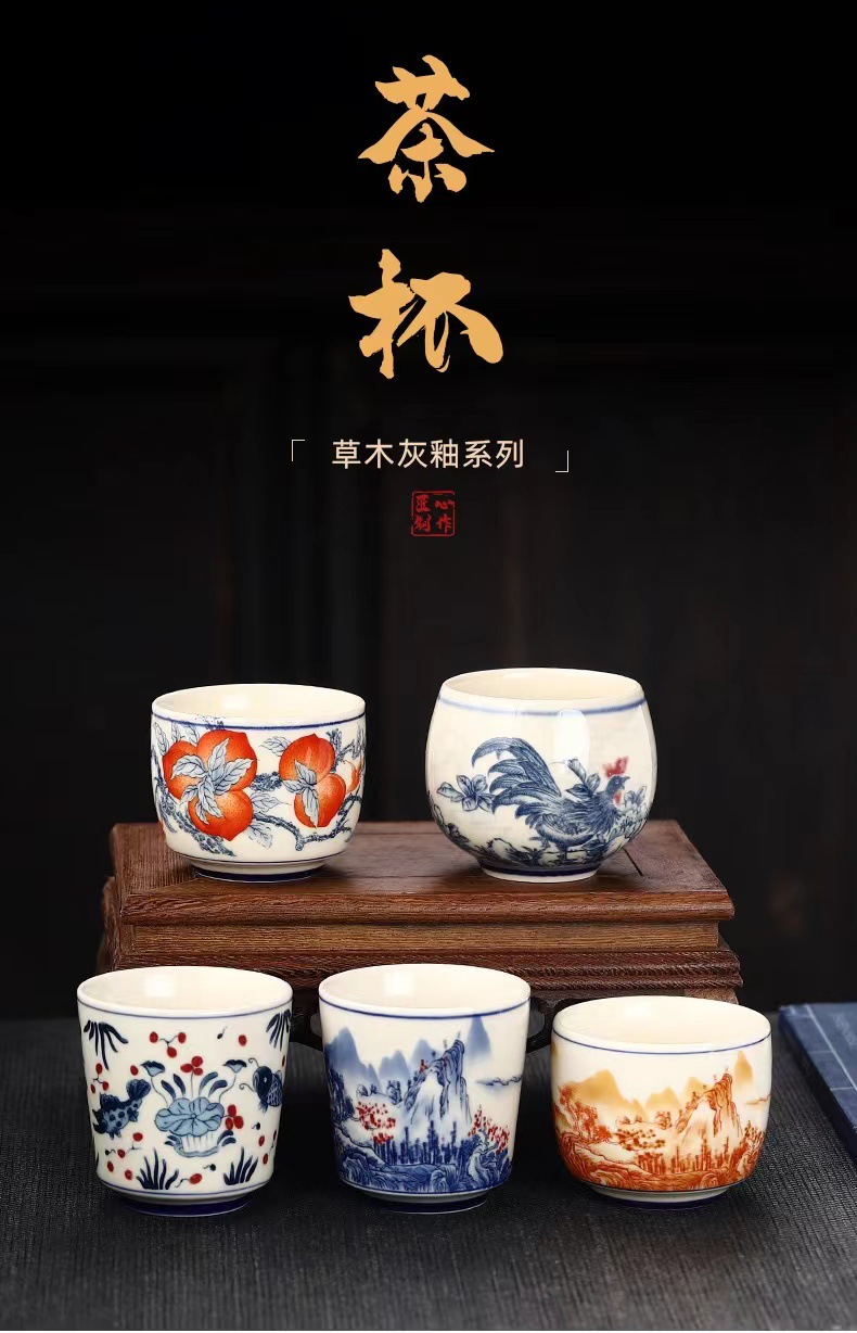 羊脂玉草木灰釉主人杯高杯防烫喝茶罗汉杯陶瓷单杯品茗杯个人专用
