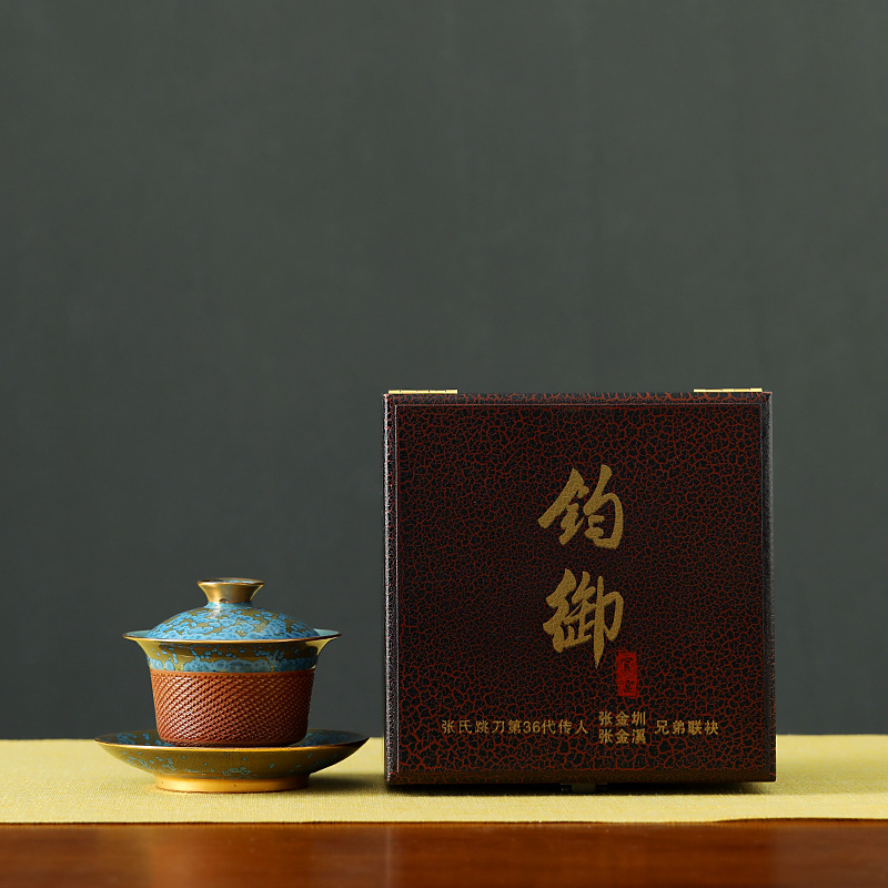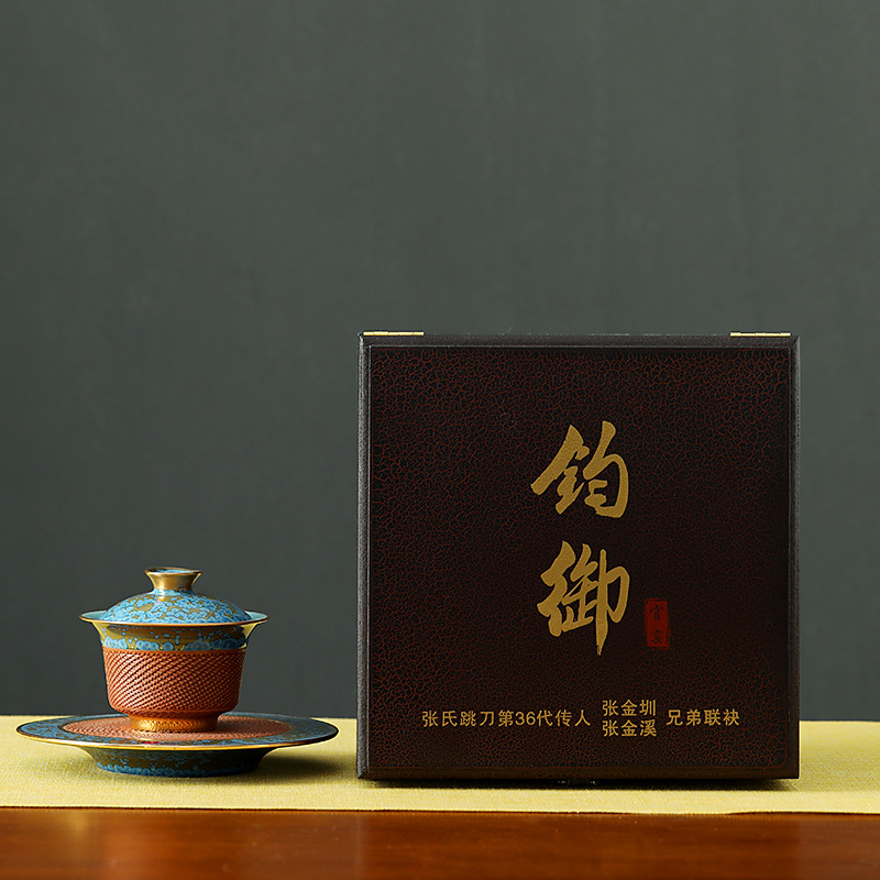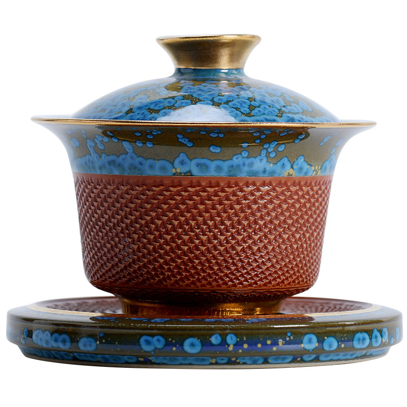 钧御窑变三才盖碗高档功夫茶具名师跳刀工艺轻奢泡茶碗敬茶碗盖杯