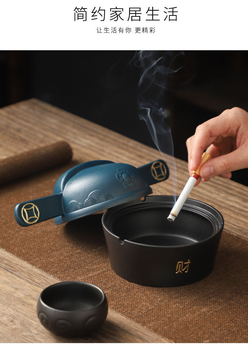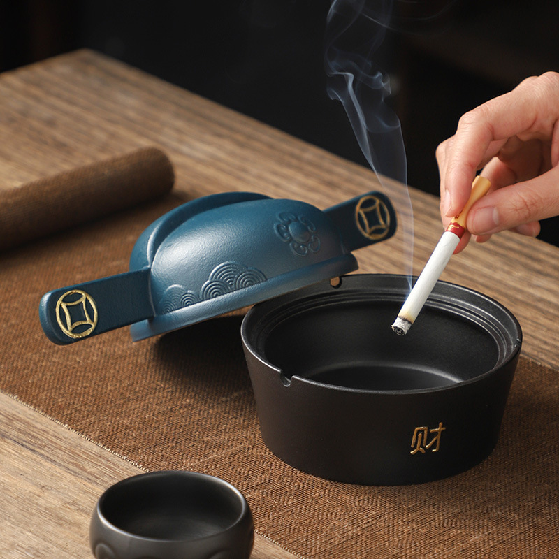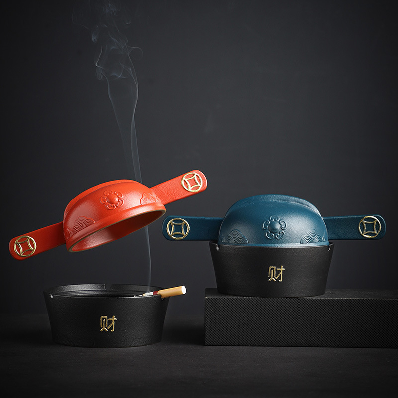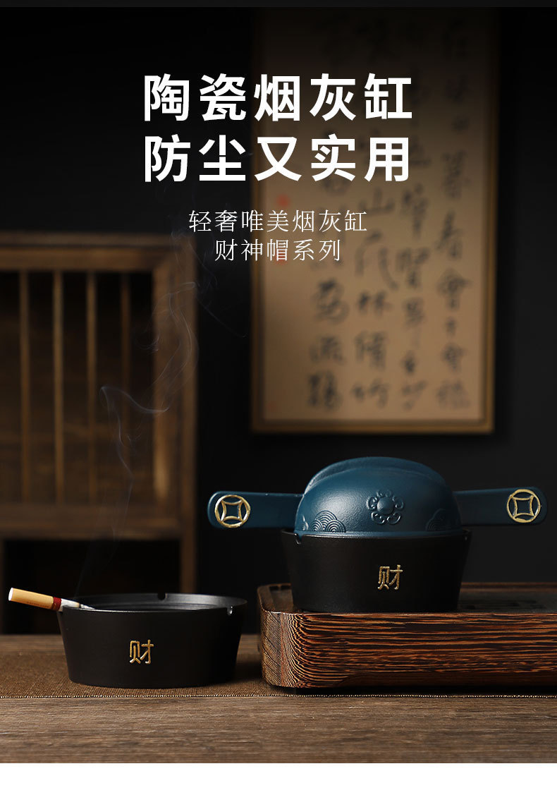 复古财神帽陶瓷烟灰缸防飞灰家用办公酒店休闲厅潮流创意摆件LOGO