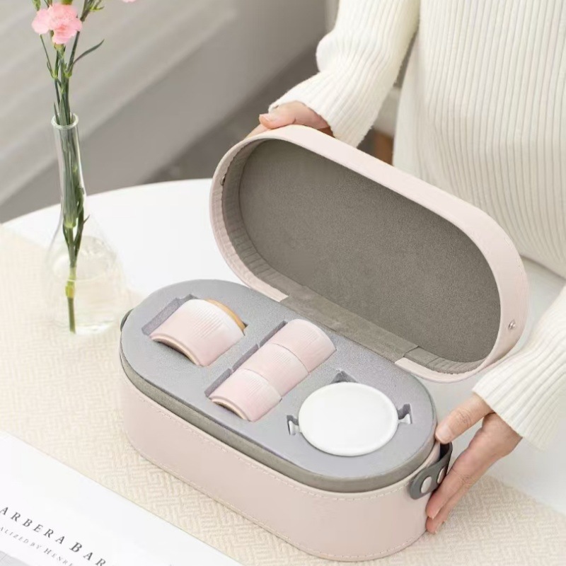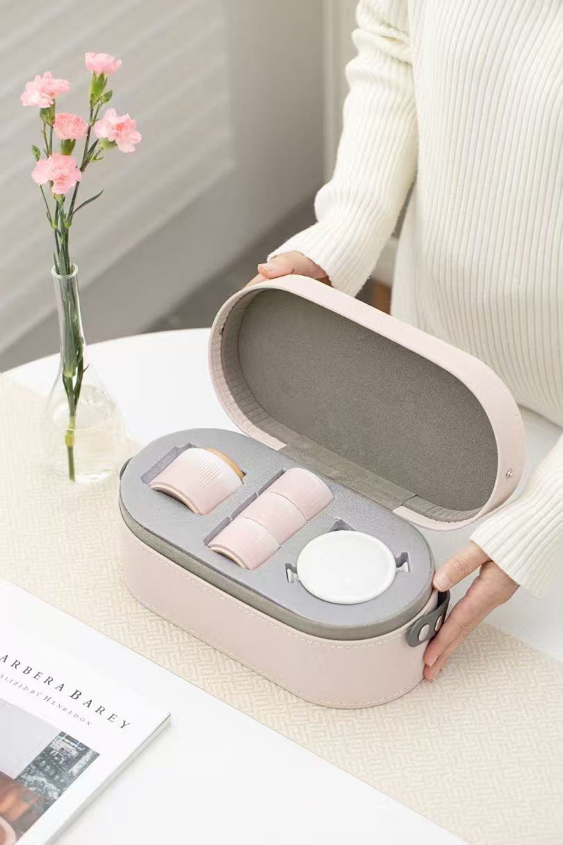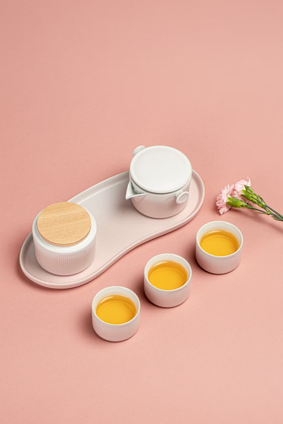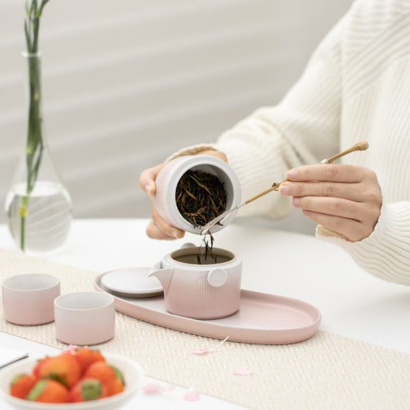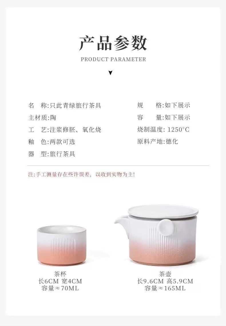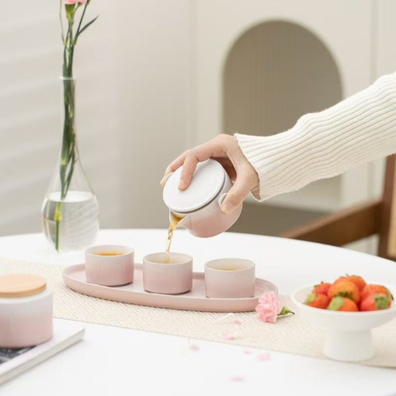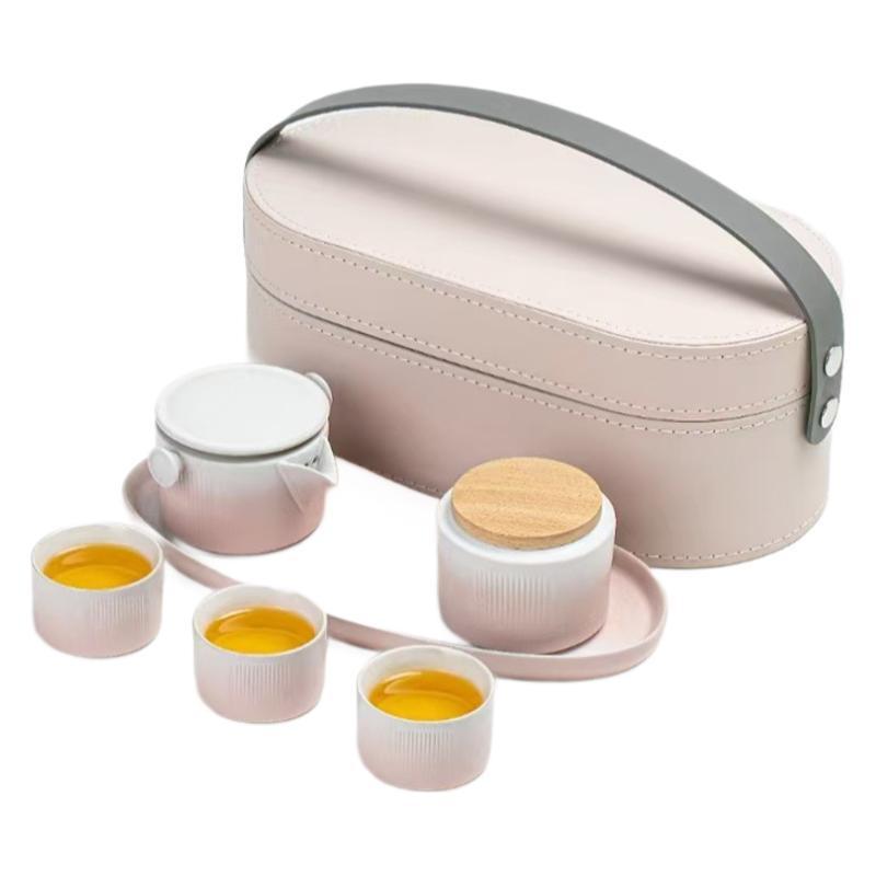 粉白渐变手抓壶旅行陶瓷茶具小套装户外便携装一壶三杯茶盘礼品