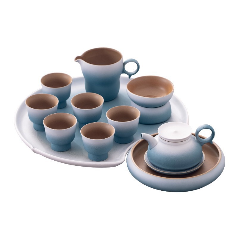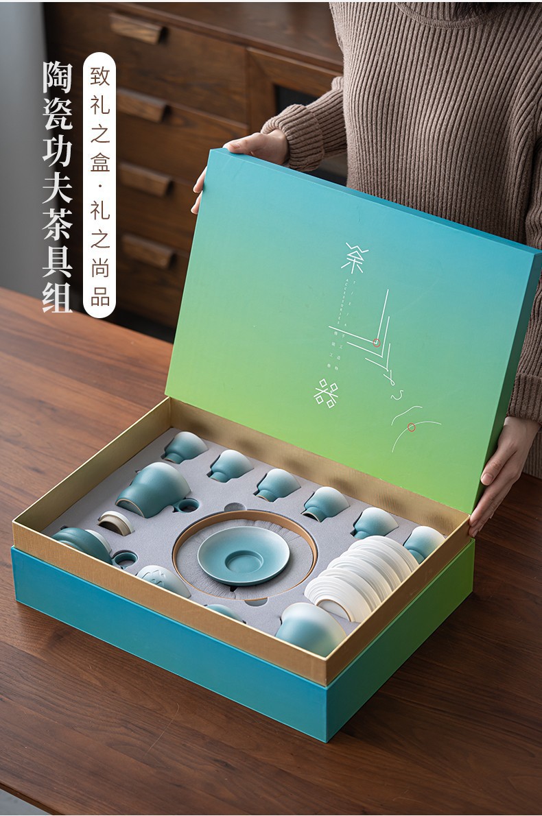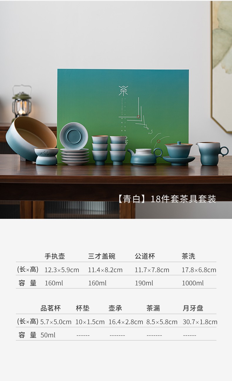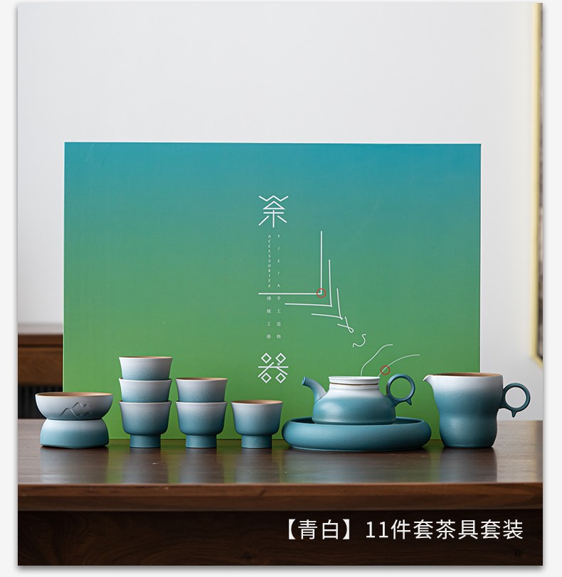 青白粗陶轻奢茶具套装家用办公室会客茶壶盖碗高档整套送礼印logo
