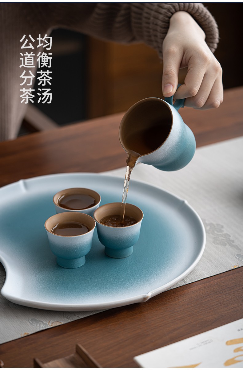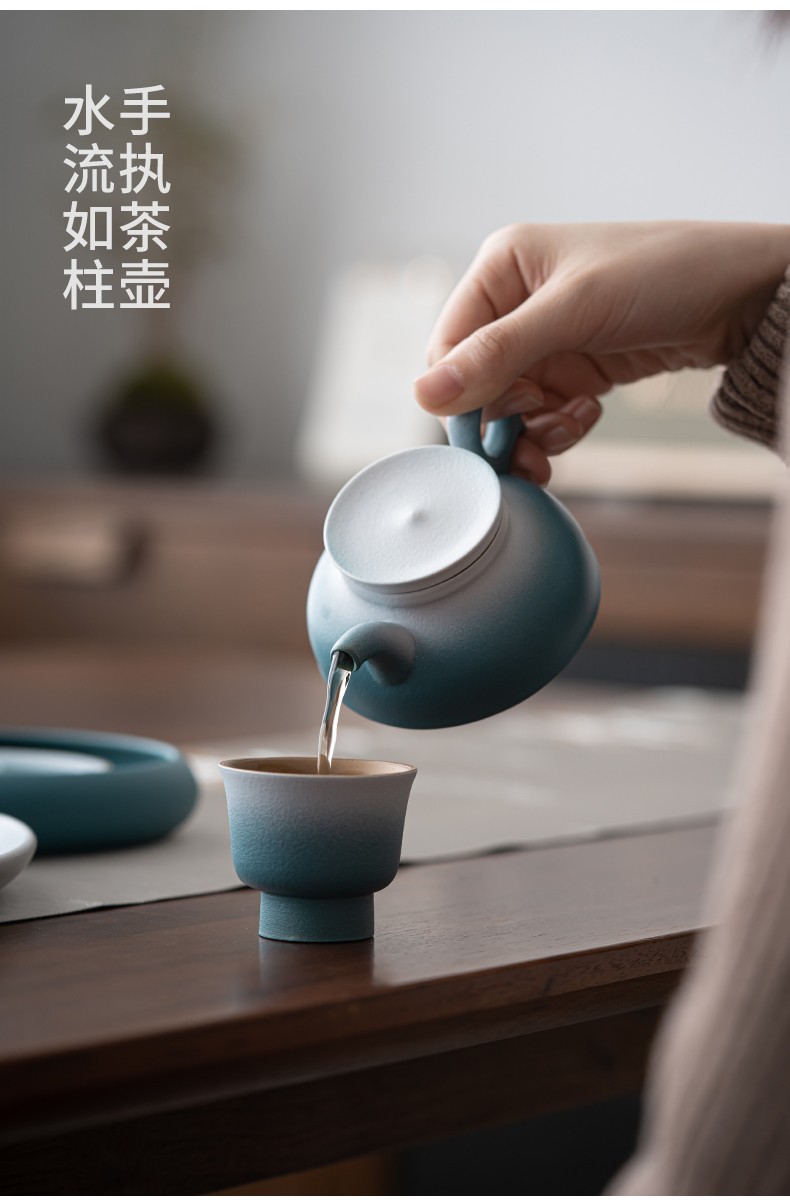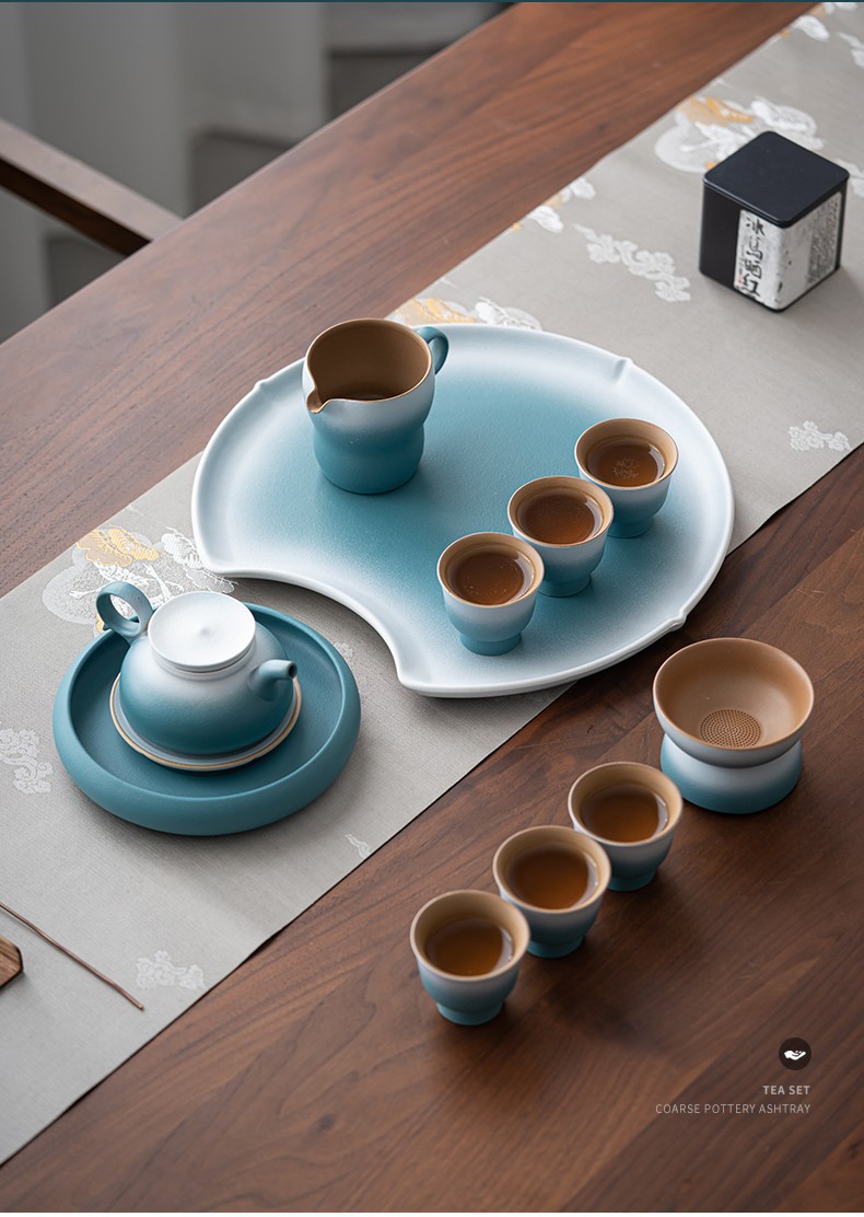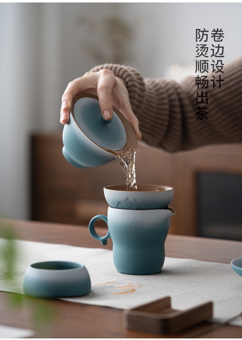 青白粗陶轻奢茶具套装家用办公室会客茶壶盖碗高档整套送礼印logo