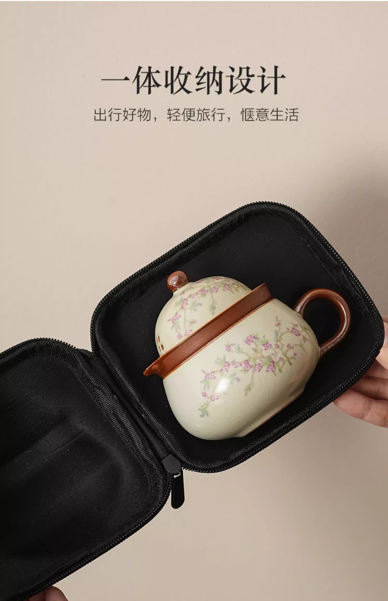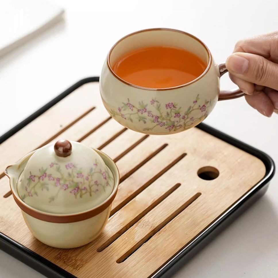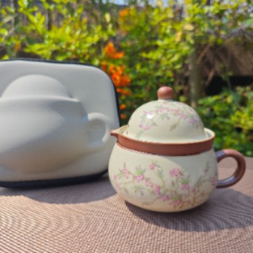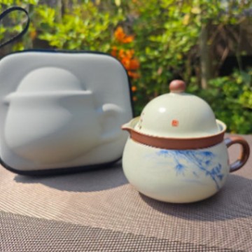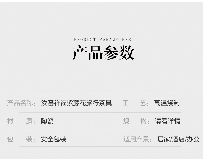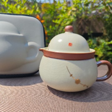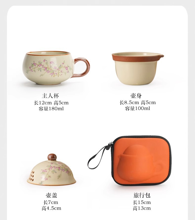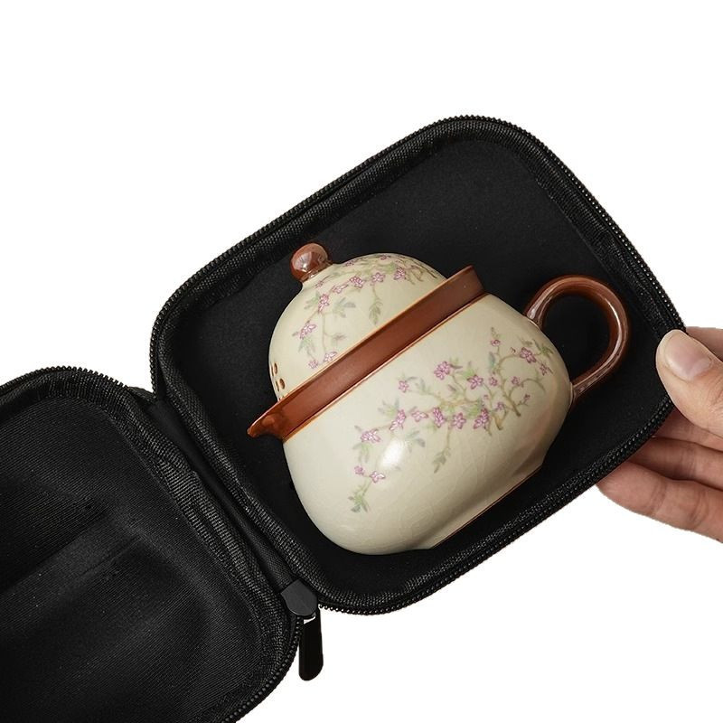 汝窑紫藤花祥福旅行茶具套装户外便携式快客杯车载旅游泡茶器套组