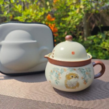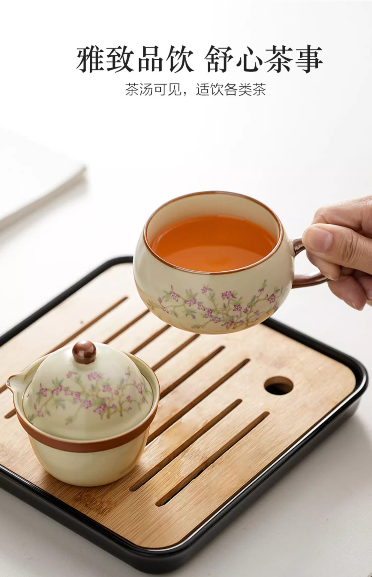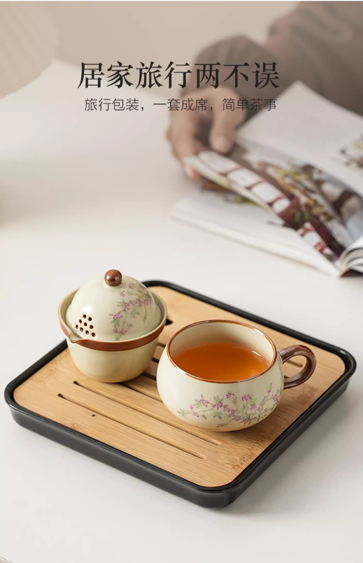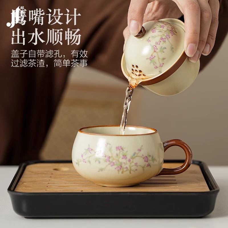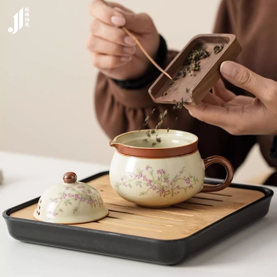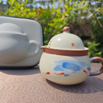 汝窑紫藤花祥福旅行茶具套装户外便携式快客杯车载旅游泡茶器套组