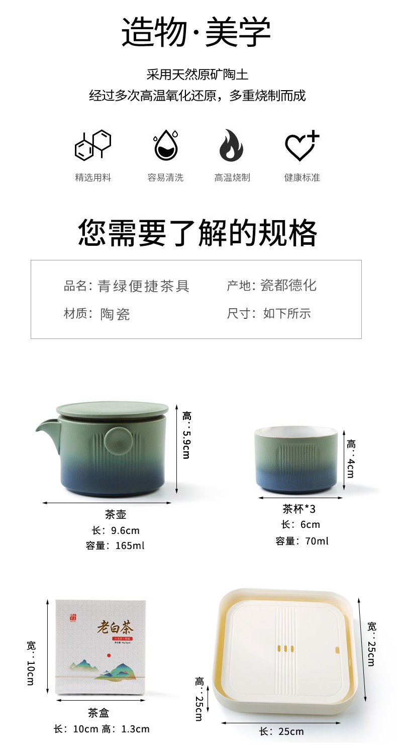 茶具套装小泡球茶具国潮全套便携旅行礼品陶瓷快客杯1壶3杯礼盒装