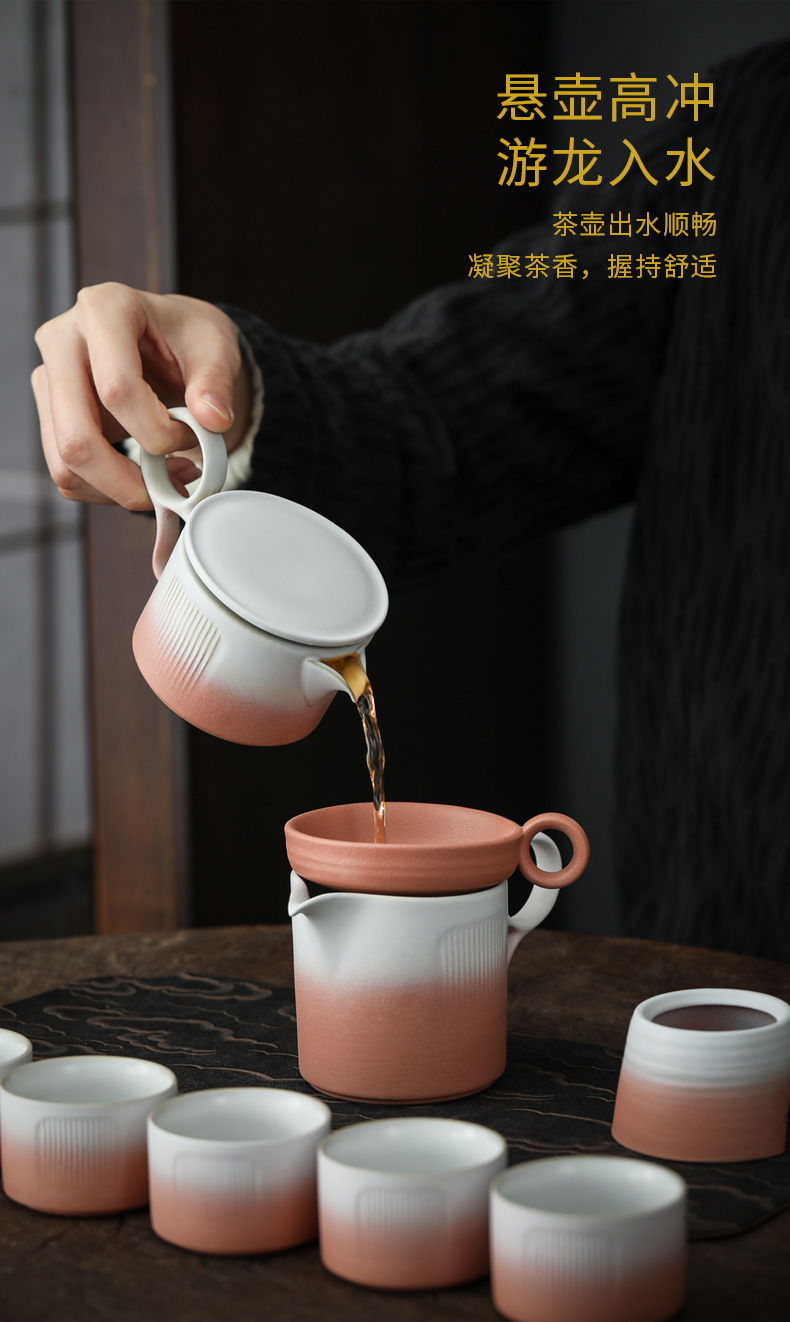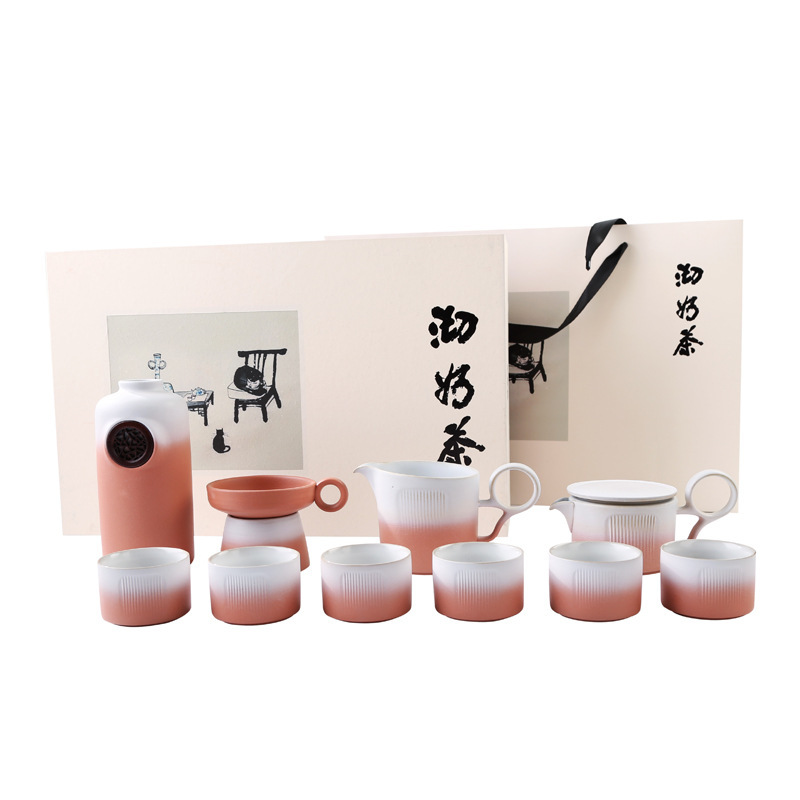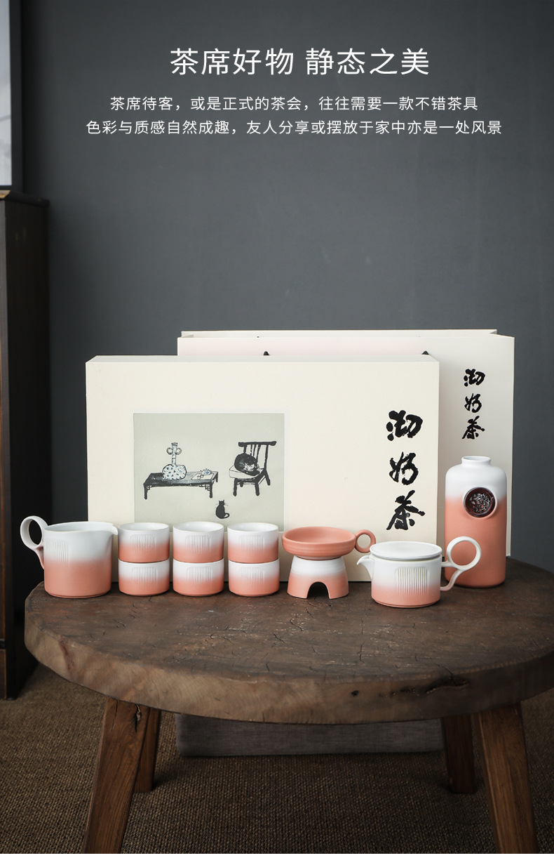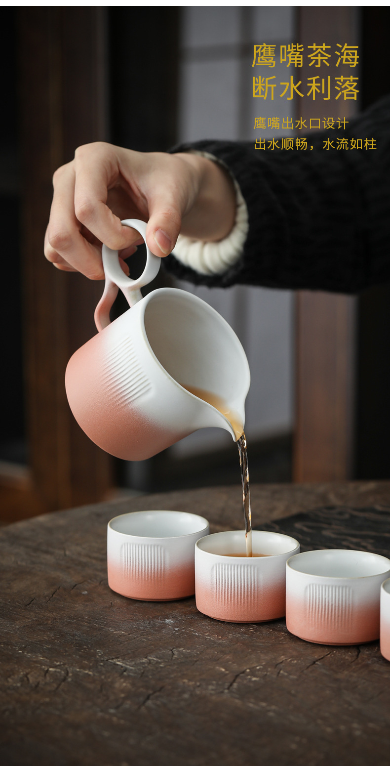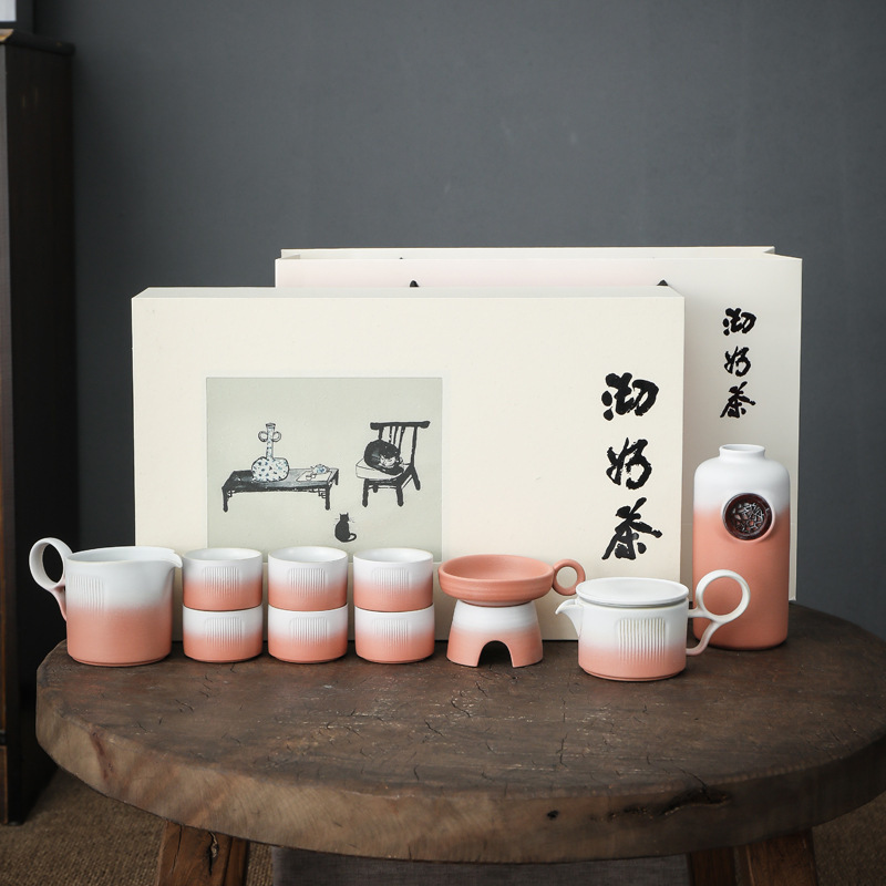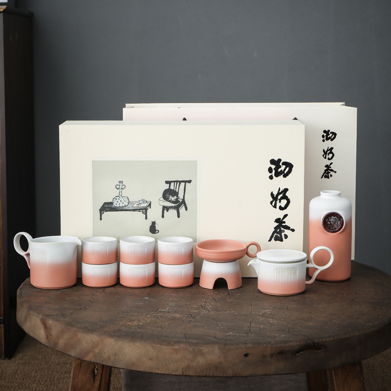 商务陶瓷茶具套装客厅办公室渐变国潮风粗陶茶壶茶杯泡茶器伴手礼