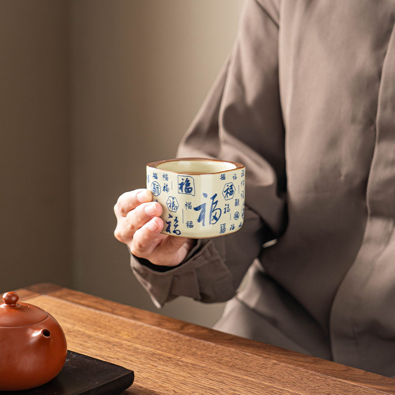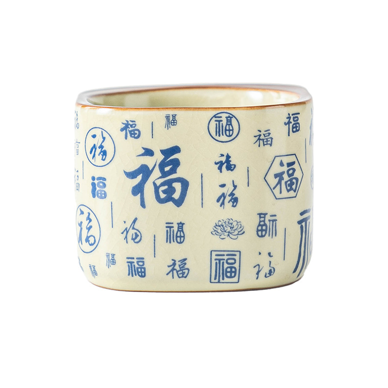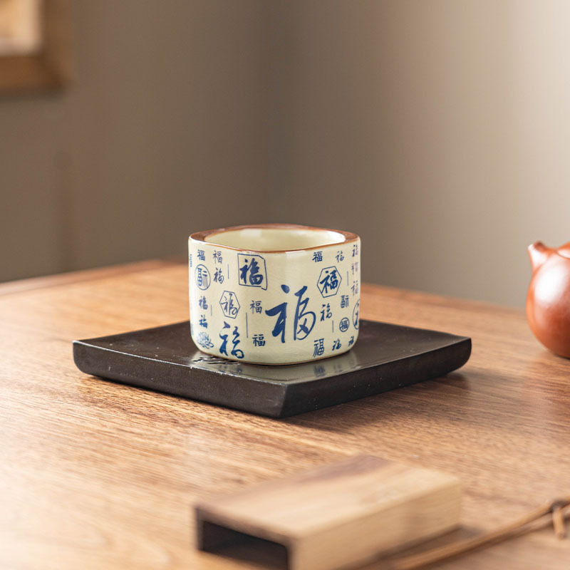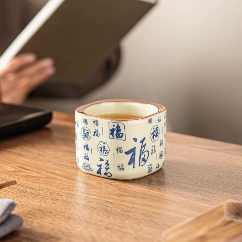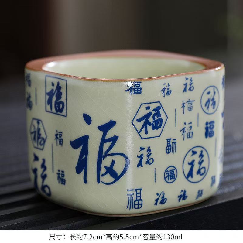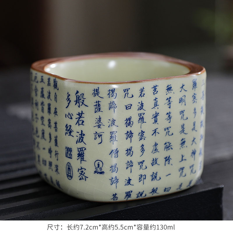 汝窑百福四方杯陶瓷主人杯个人专用品茗杯心经杯中式茶杯单杯礼品