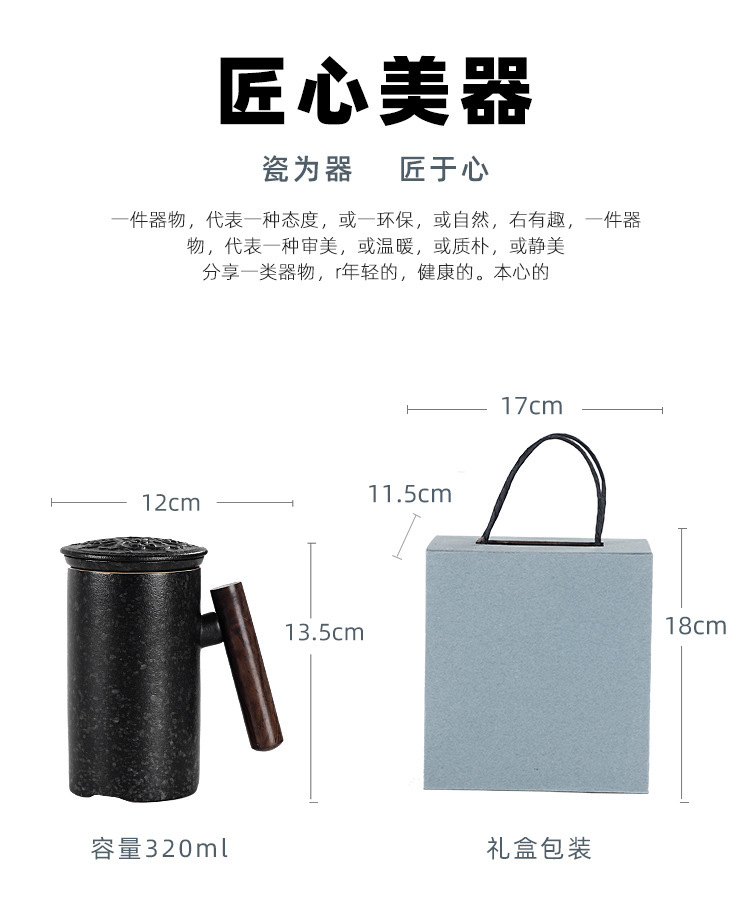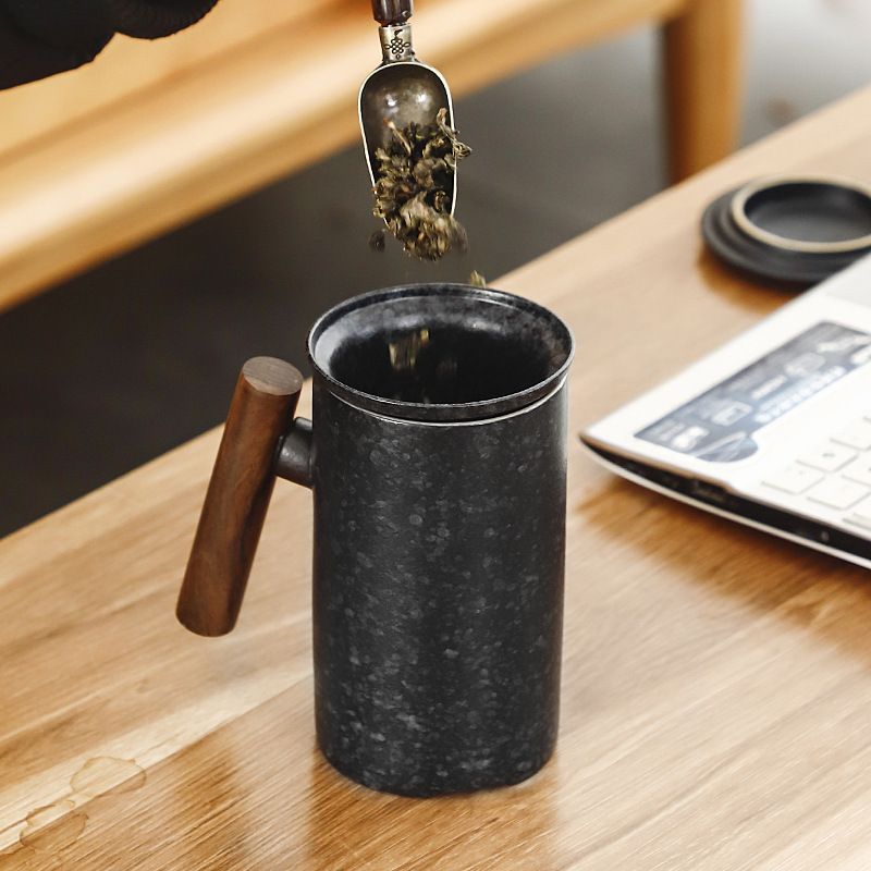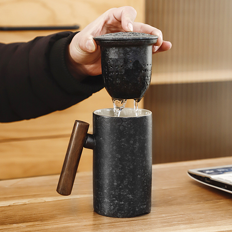 马克杯办公室水杯茶水分离杯陶瓷带盖男士泡茶杯刻字印logo小礼品