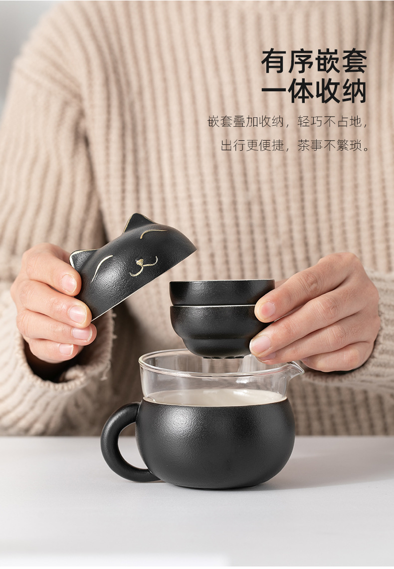 便携式旅行茶具小套装户外精致女士可爱泡茶壶茶杯简易露营快客杯
