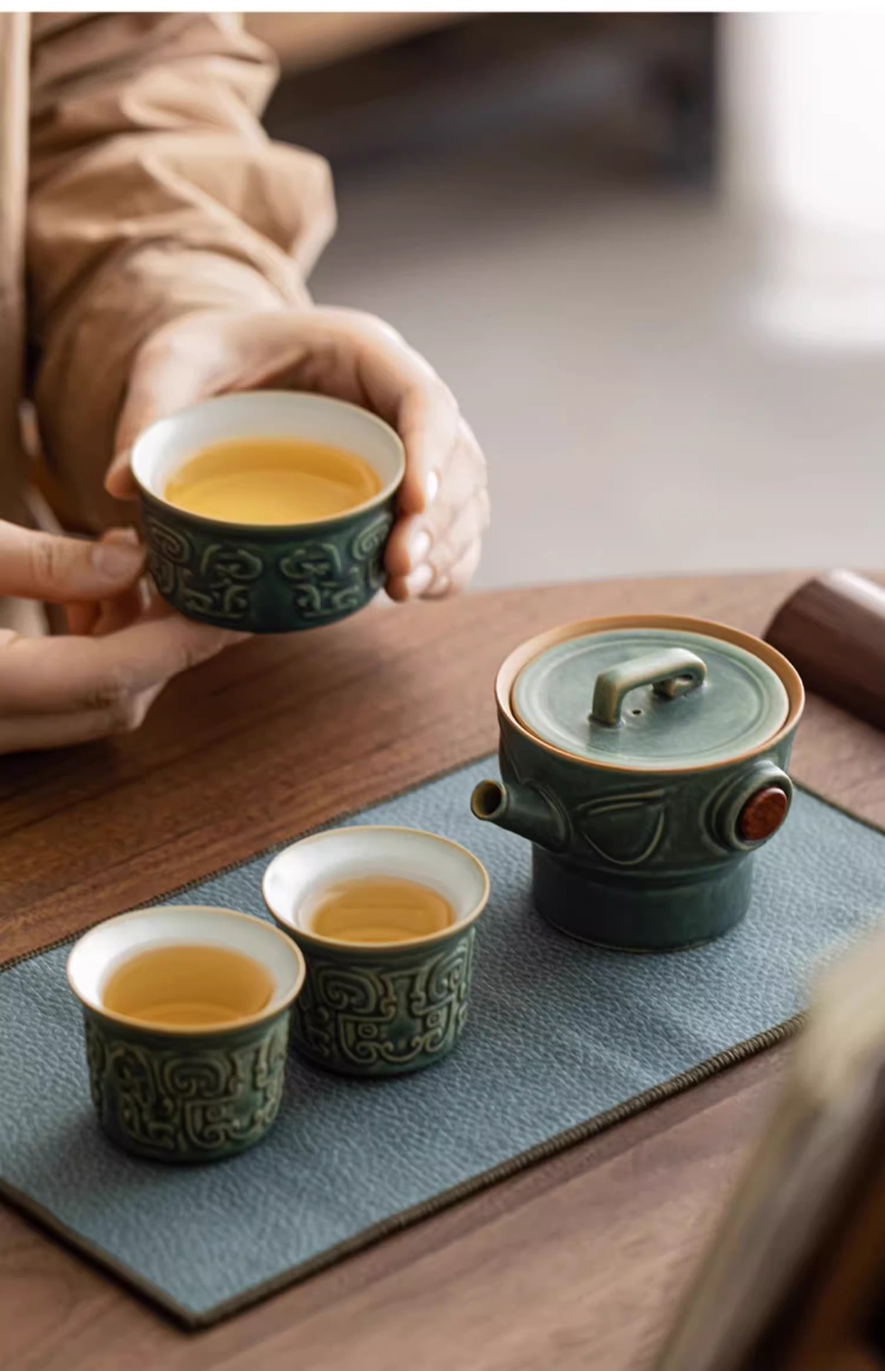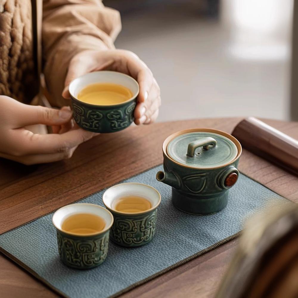 三星堆快客杯一壶两杯户外便携式旅行茶具套装送长辈商务伴手礼