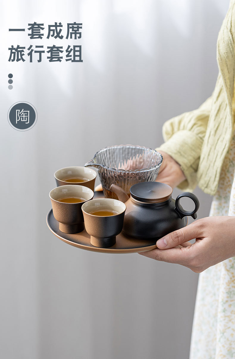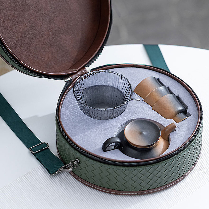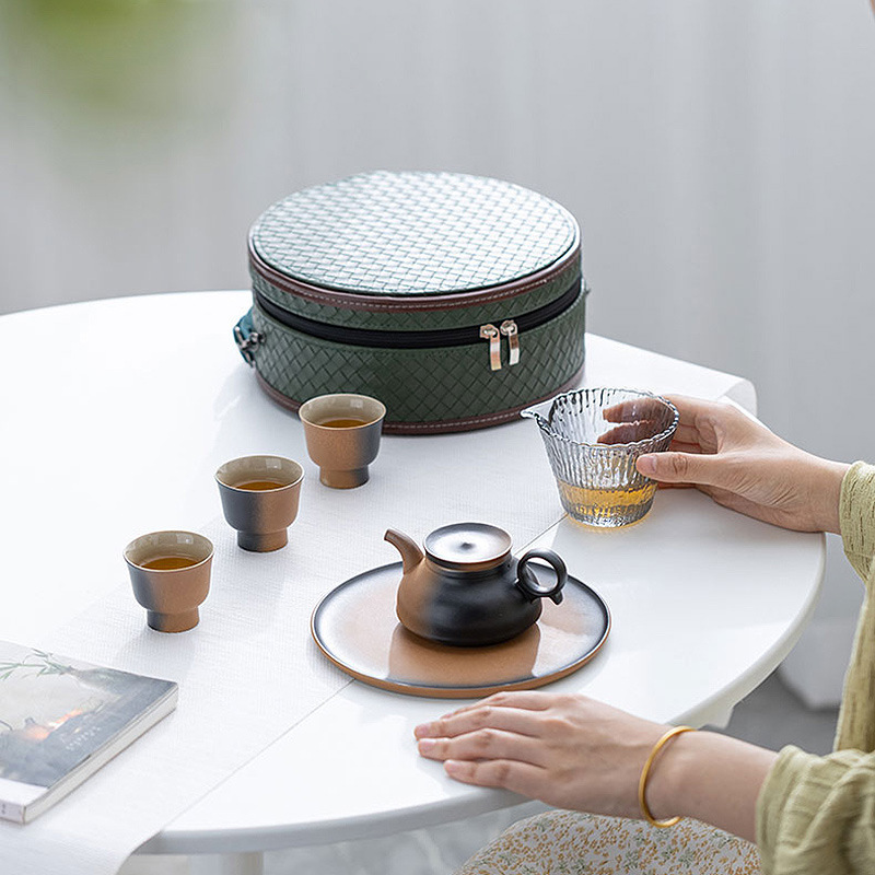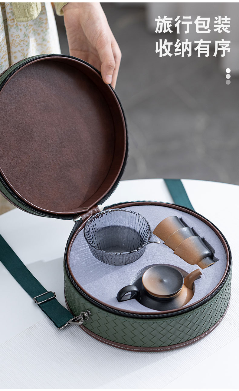 创意便携小挎包旅行茶具一壶三杯收纳包户外露营快客杯泡茶壶小套
