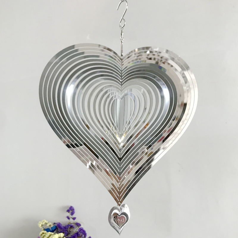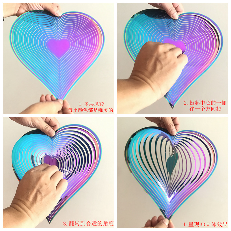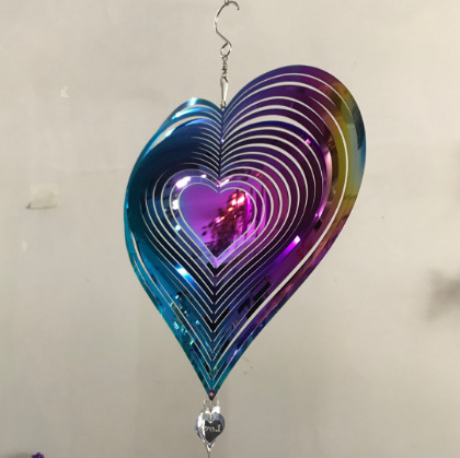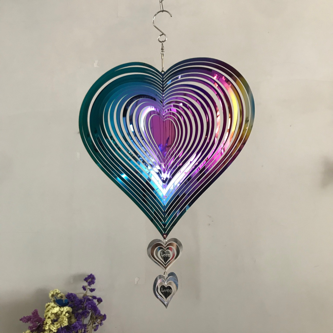 金属3D心形旋转风铃风转跨境电商工艺品供货厂家彩不锈钢爱心礼物