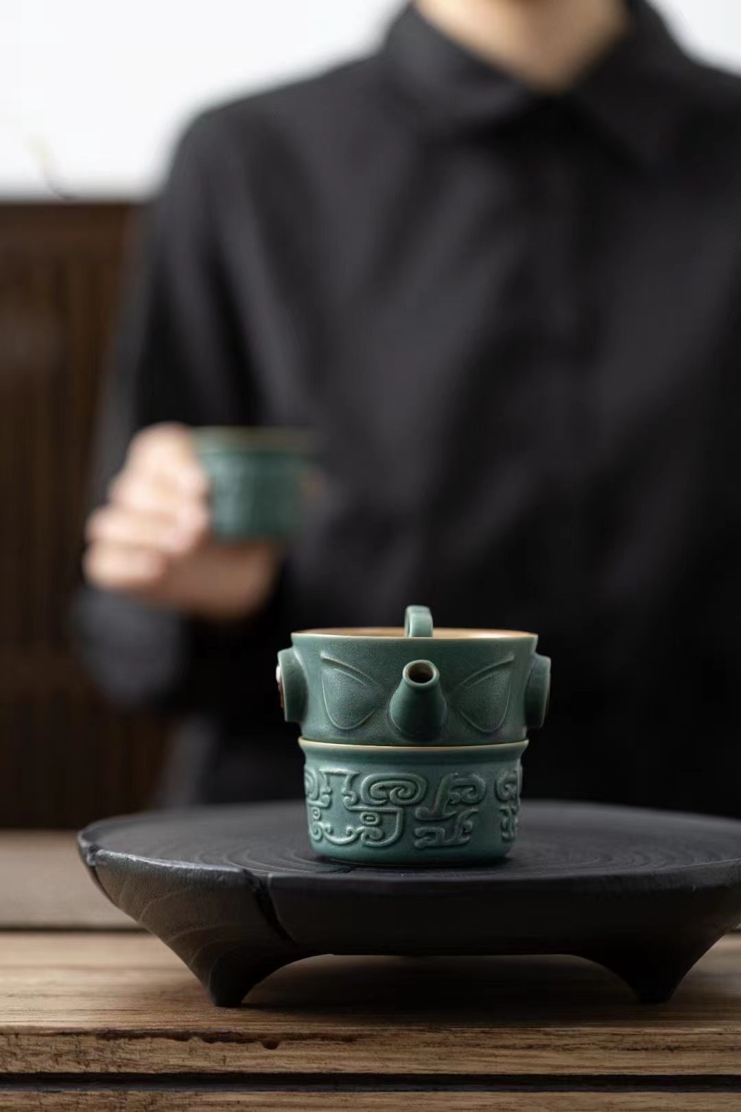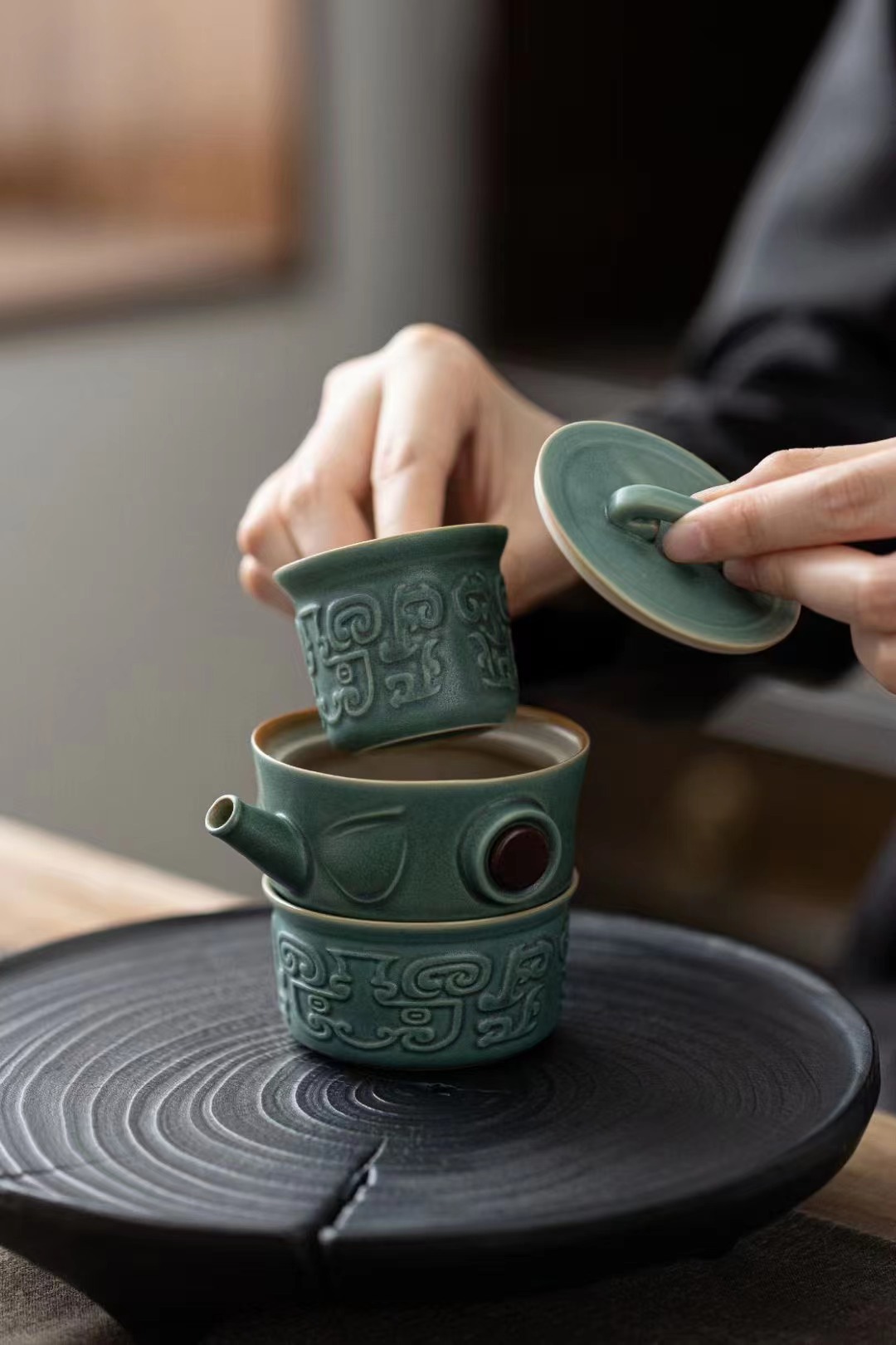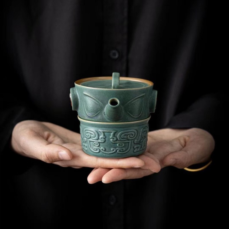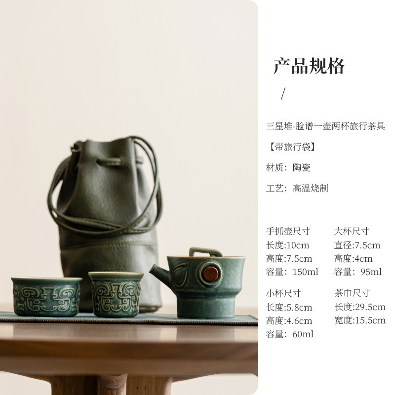 文创三星堆快客杯一壶二杯便携旅行茶具套装青铜面具家用户外茶壶