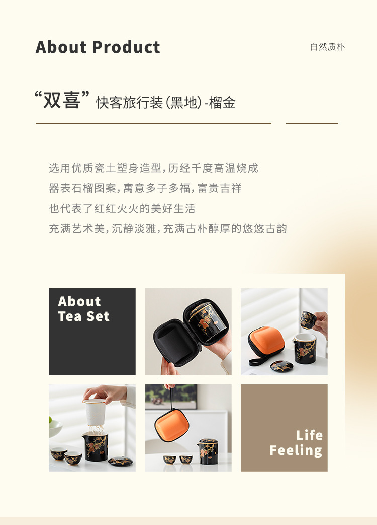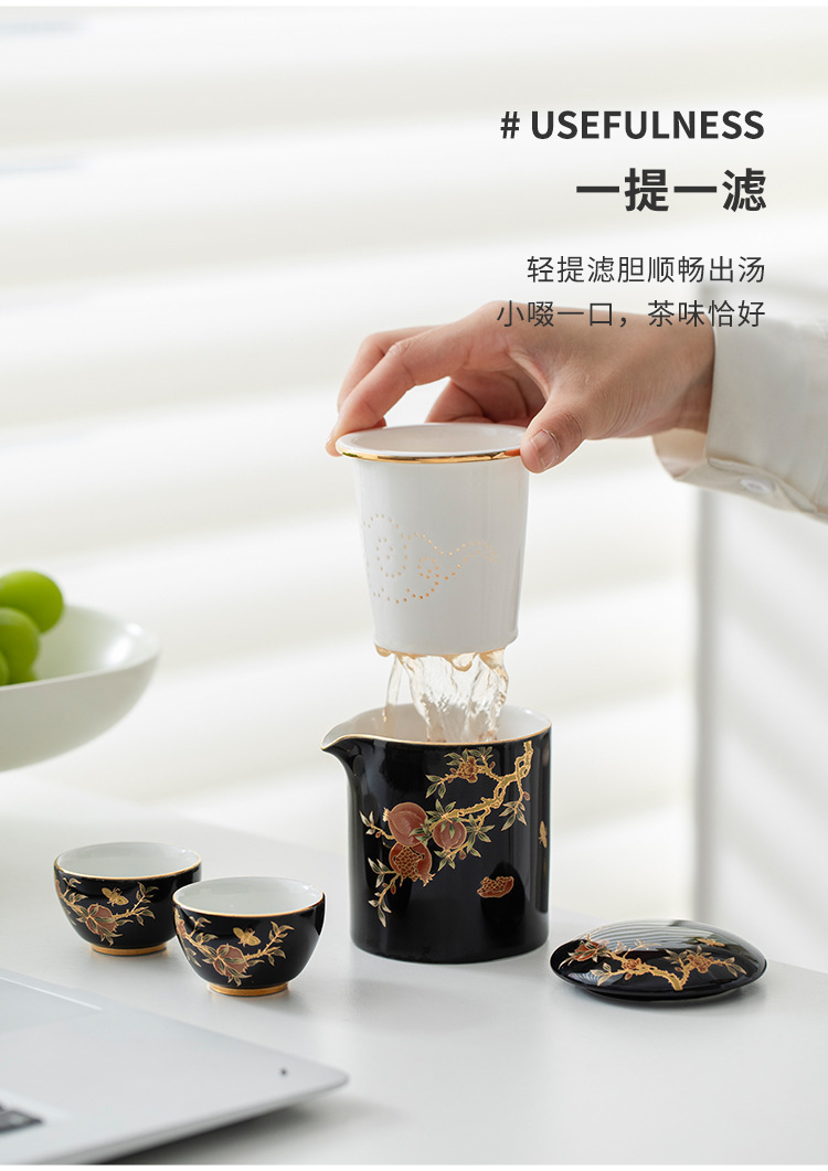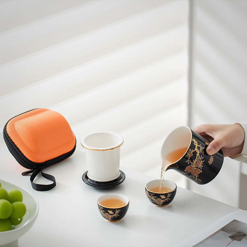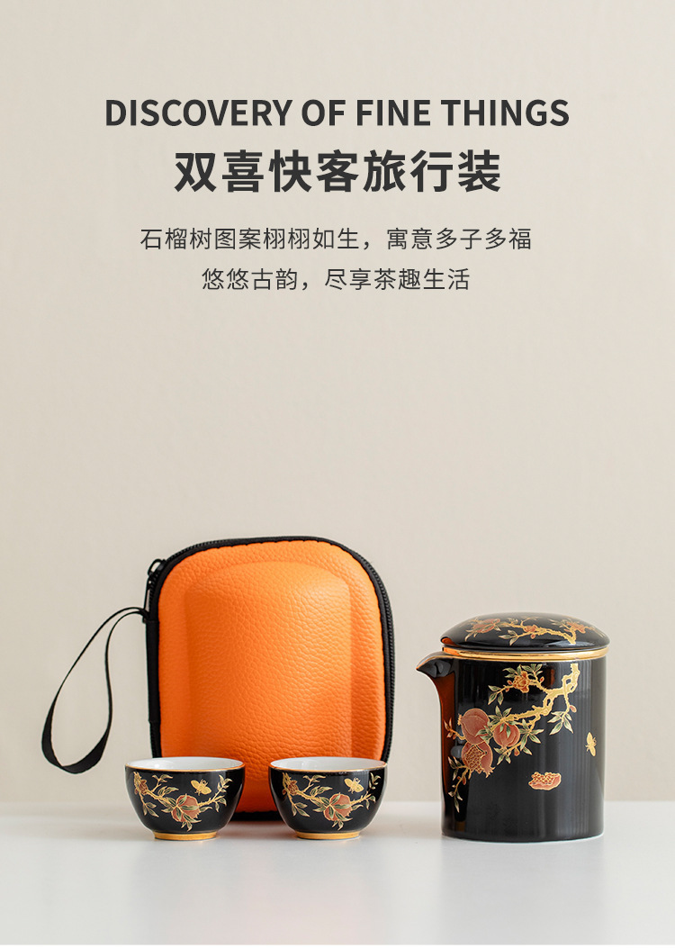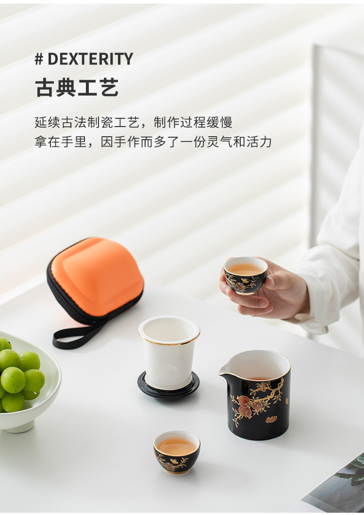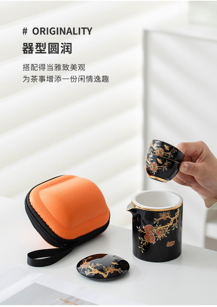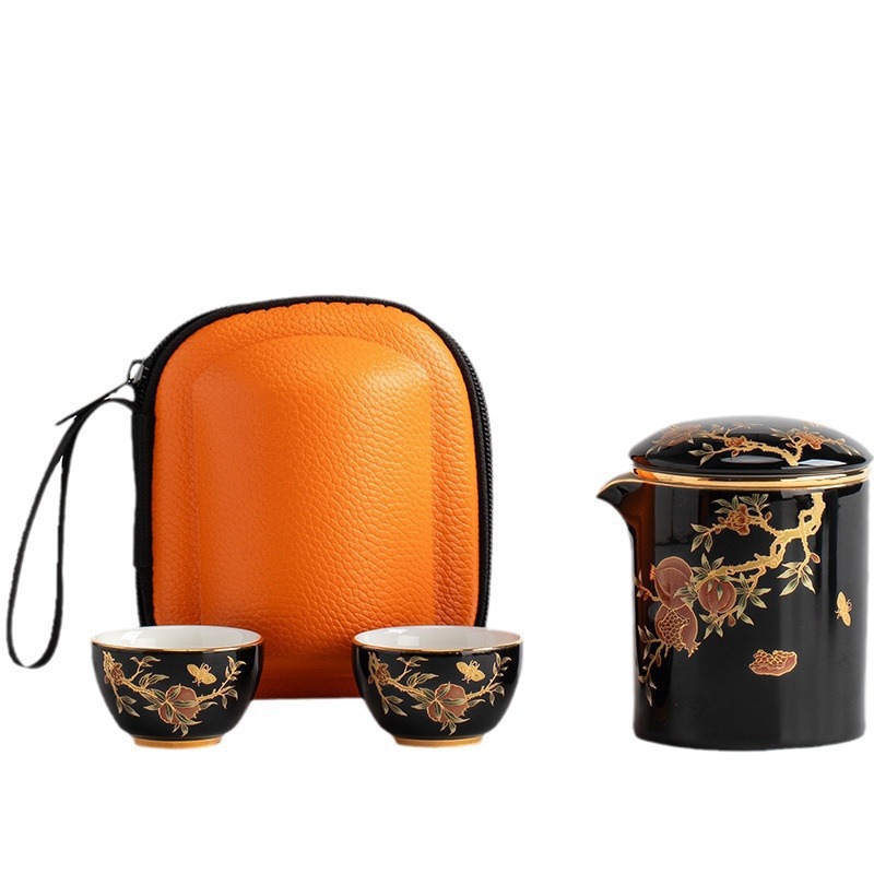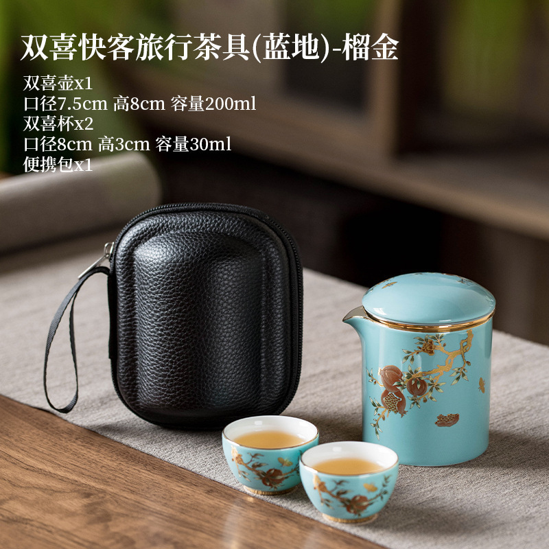高档旅行茶具套装珐琅彩快客杯一壶两杯户外便携泡茶壶送客户礼品