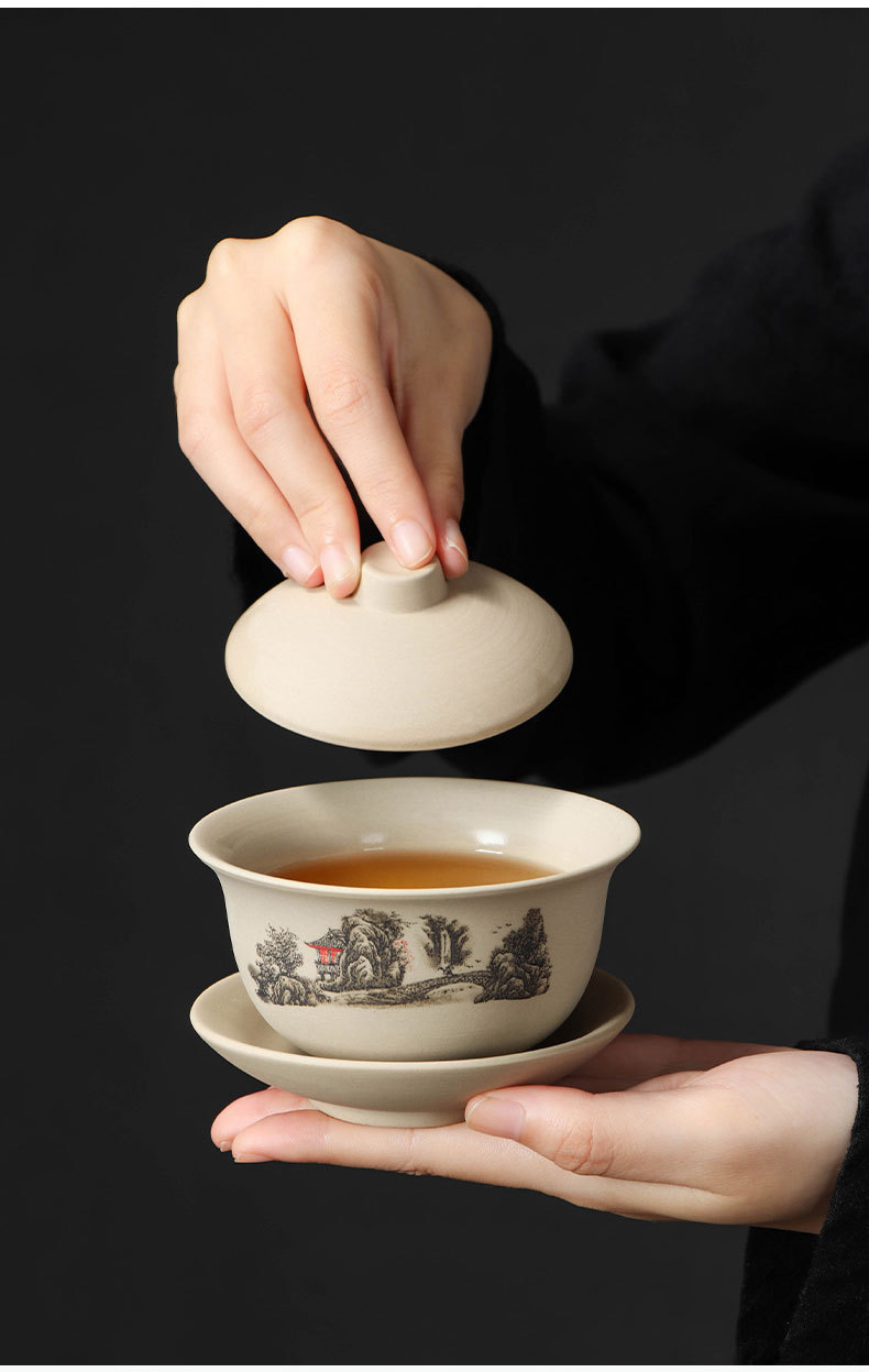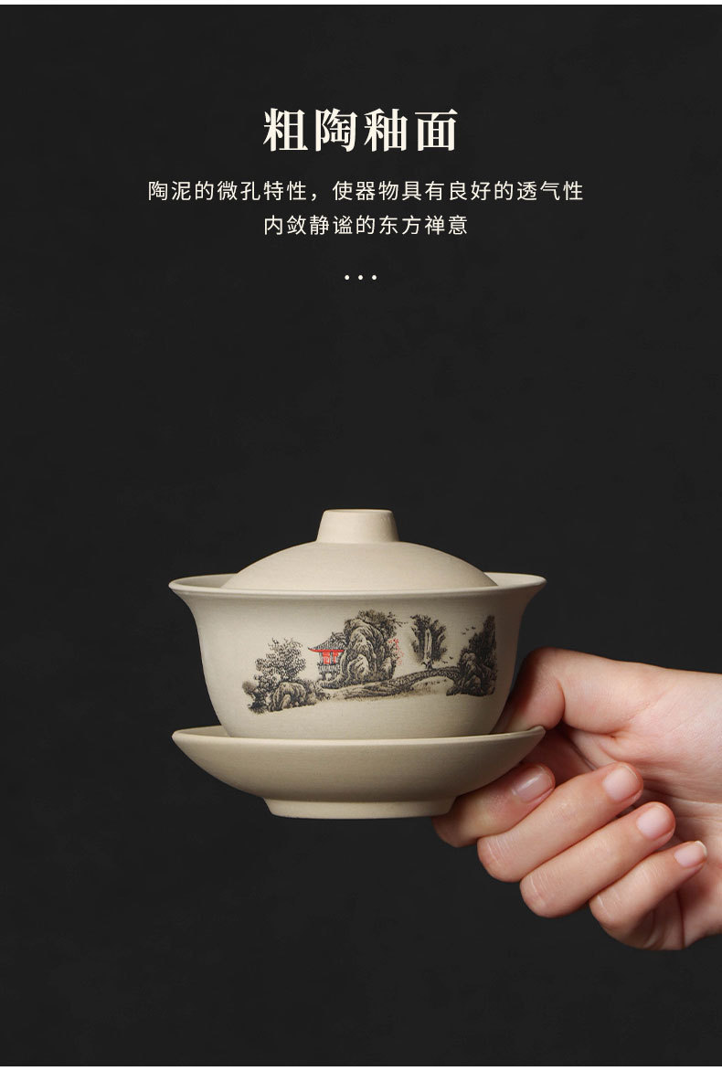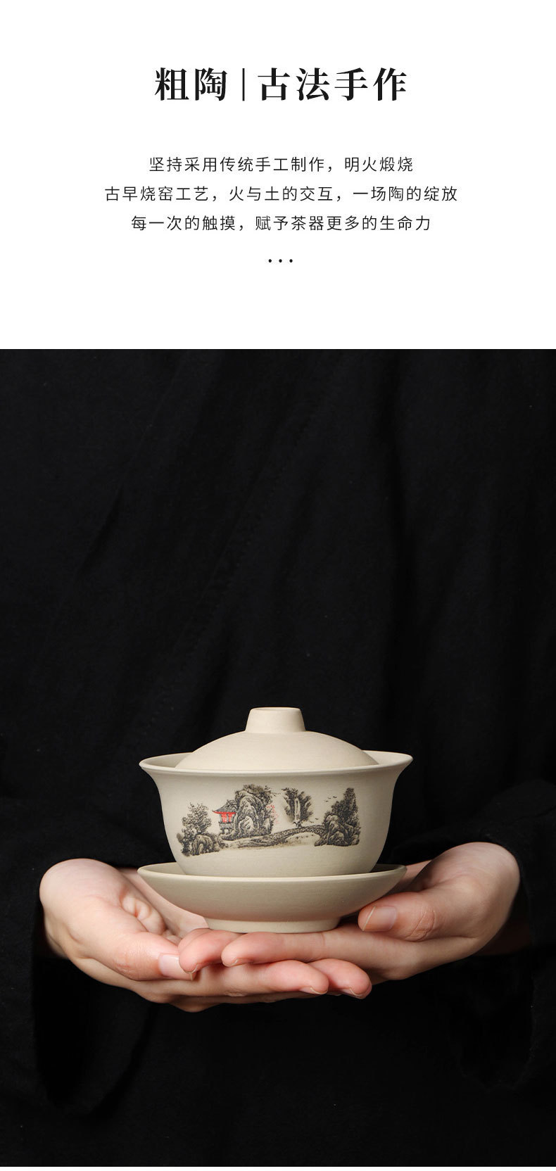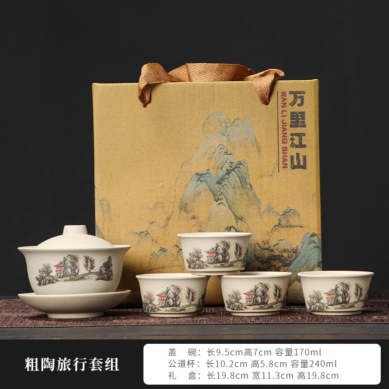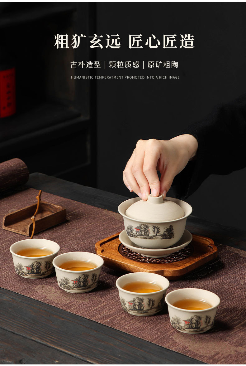 粗陶功夫茶具三才盖碗茶杯套装公司商务活动纪念店铺开业LOGO礼品