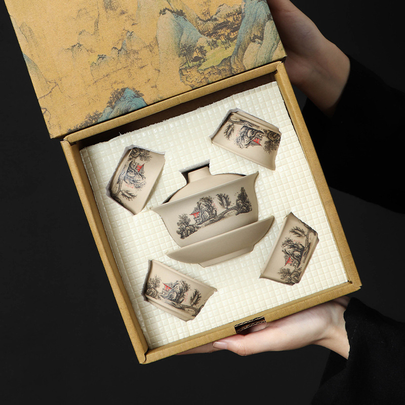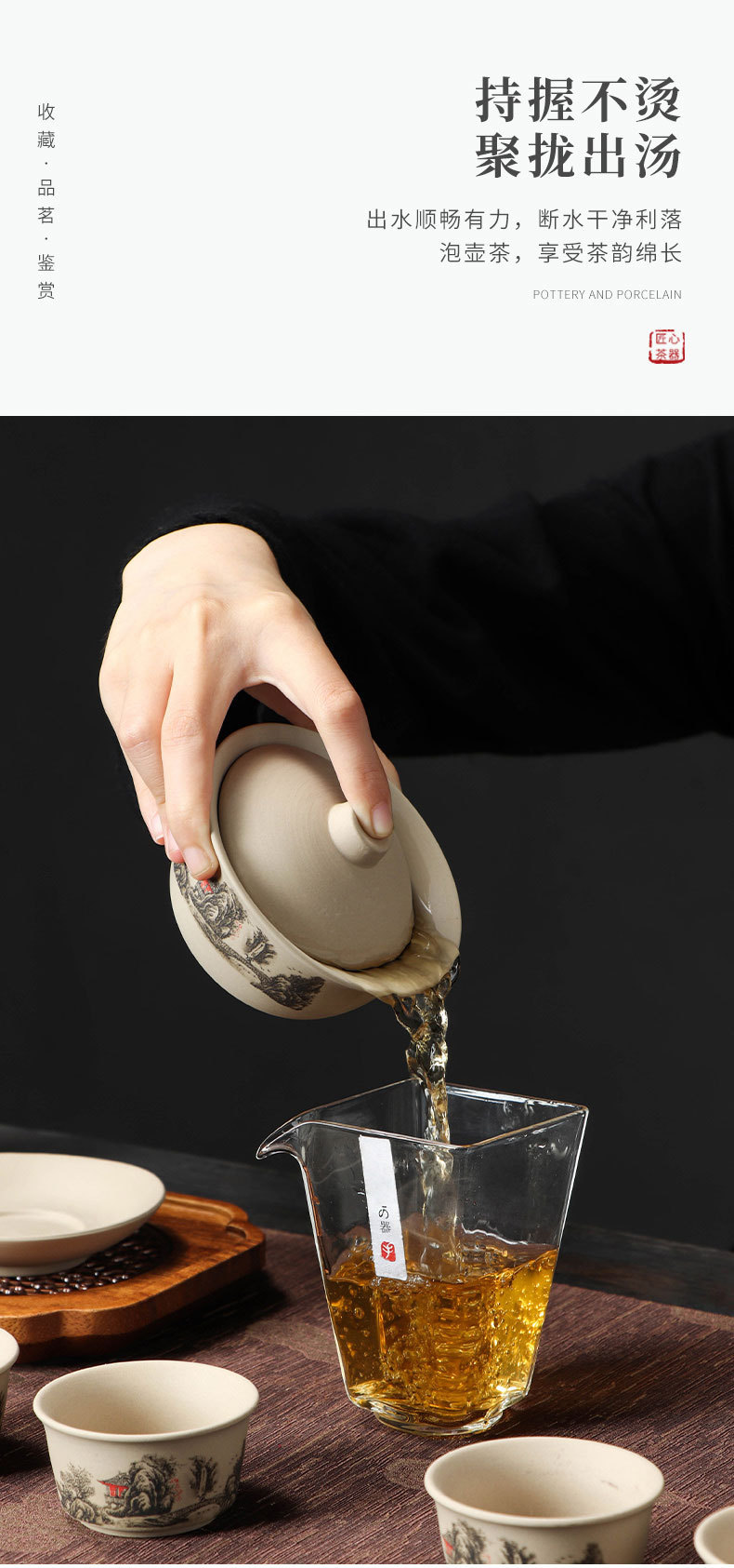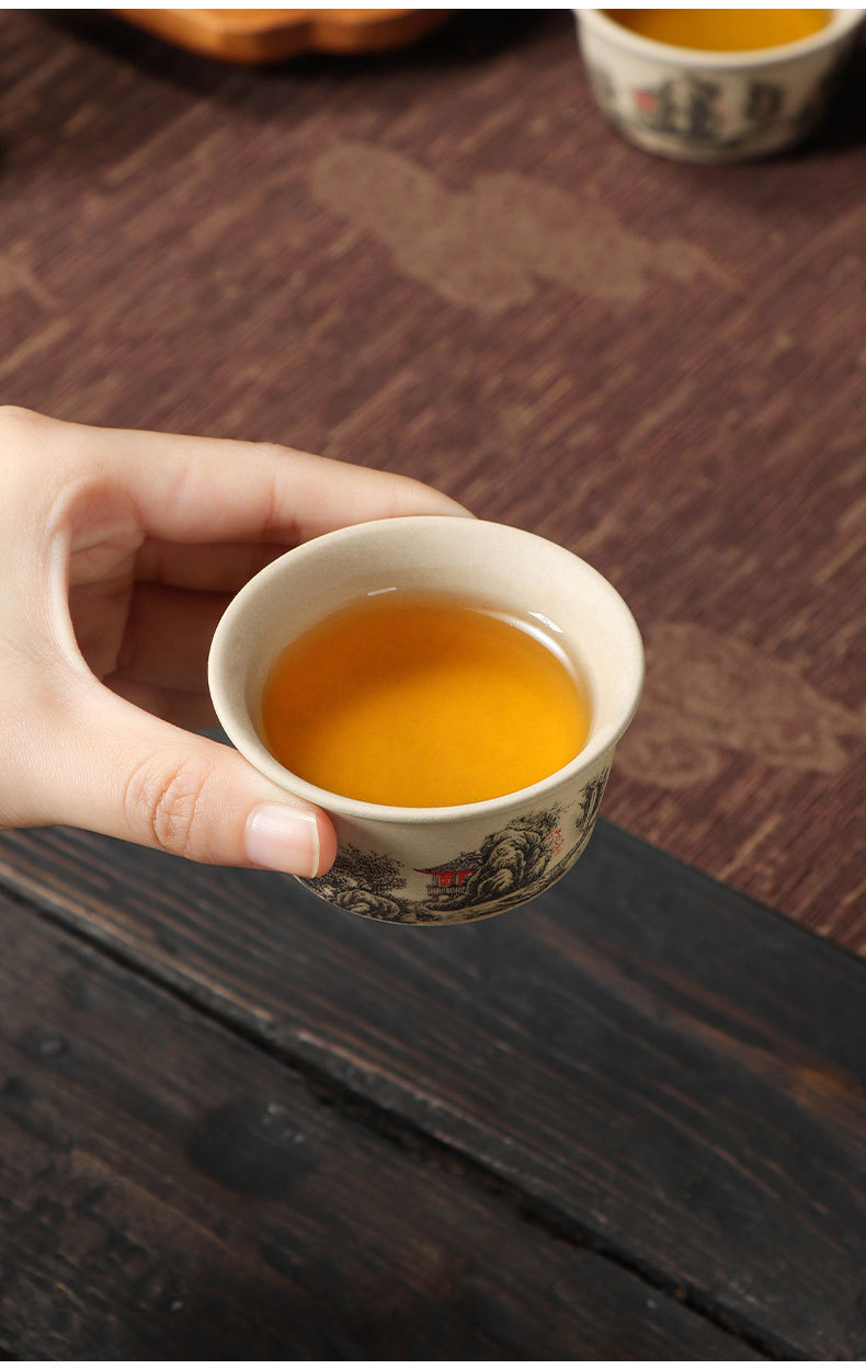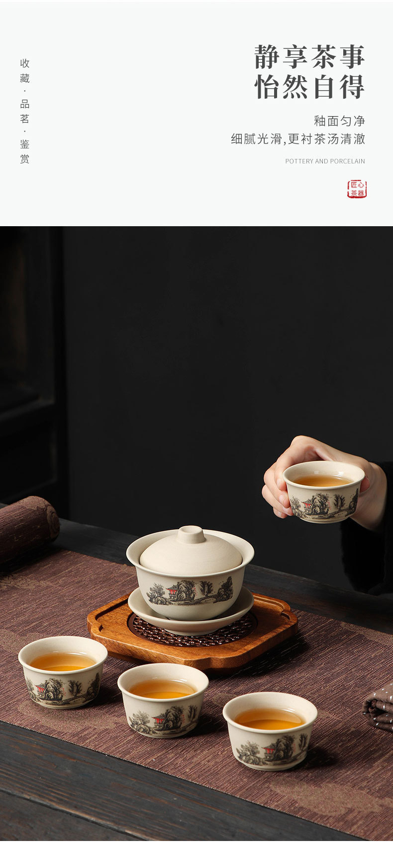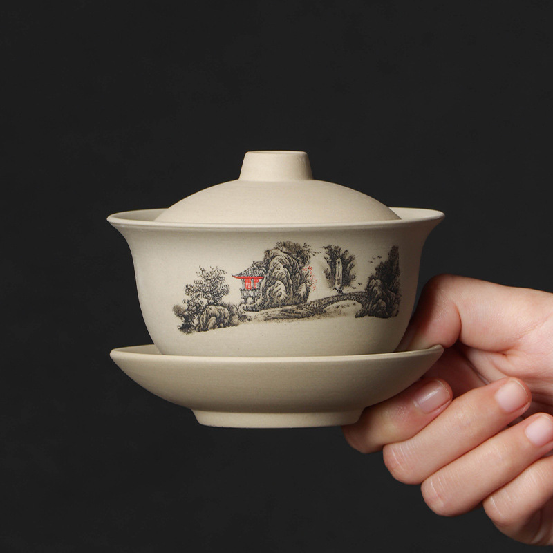 粗陶功夫茶具三才盖碗茶杯套装公司商务活动纪念店铺开业LOGO礼品