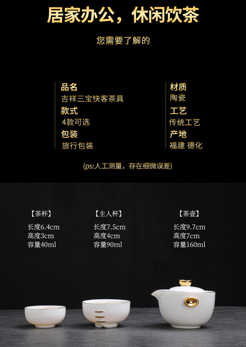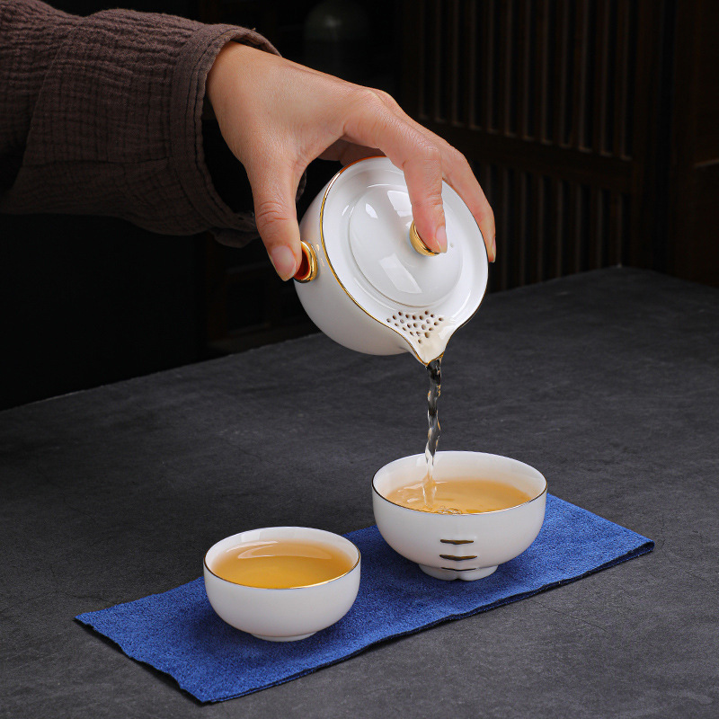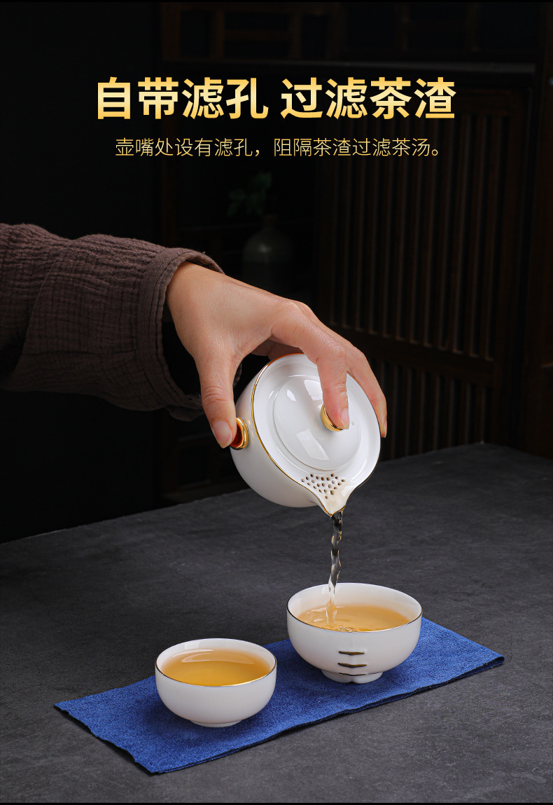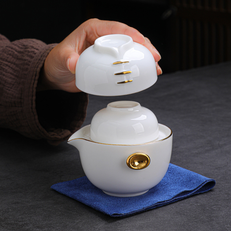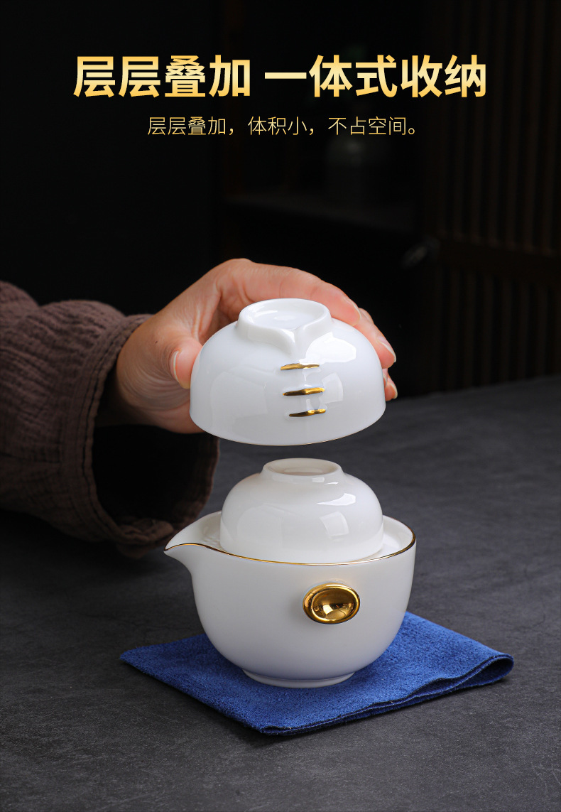 羊脂玉瓷手抓壶便携户外旅行茶具套装元旦公司年会商务礼品加logo