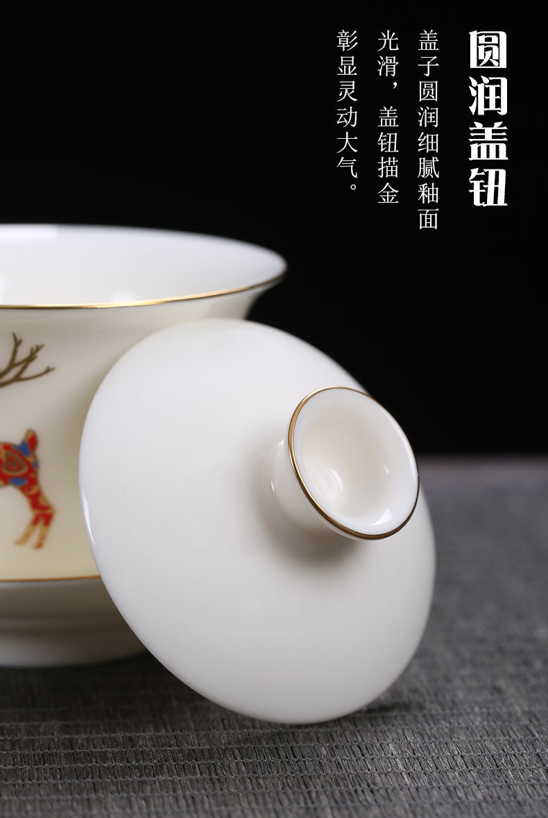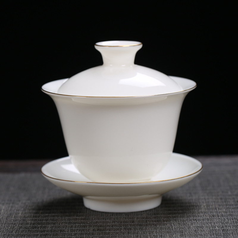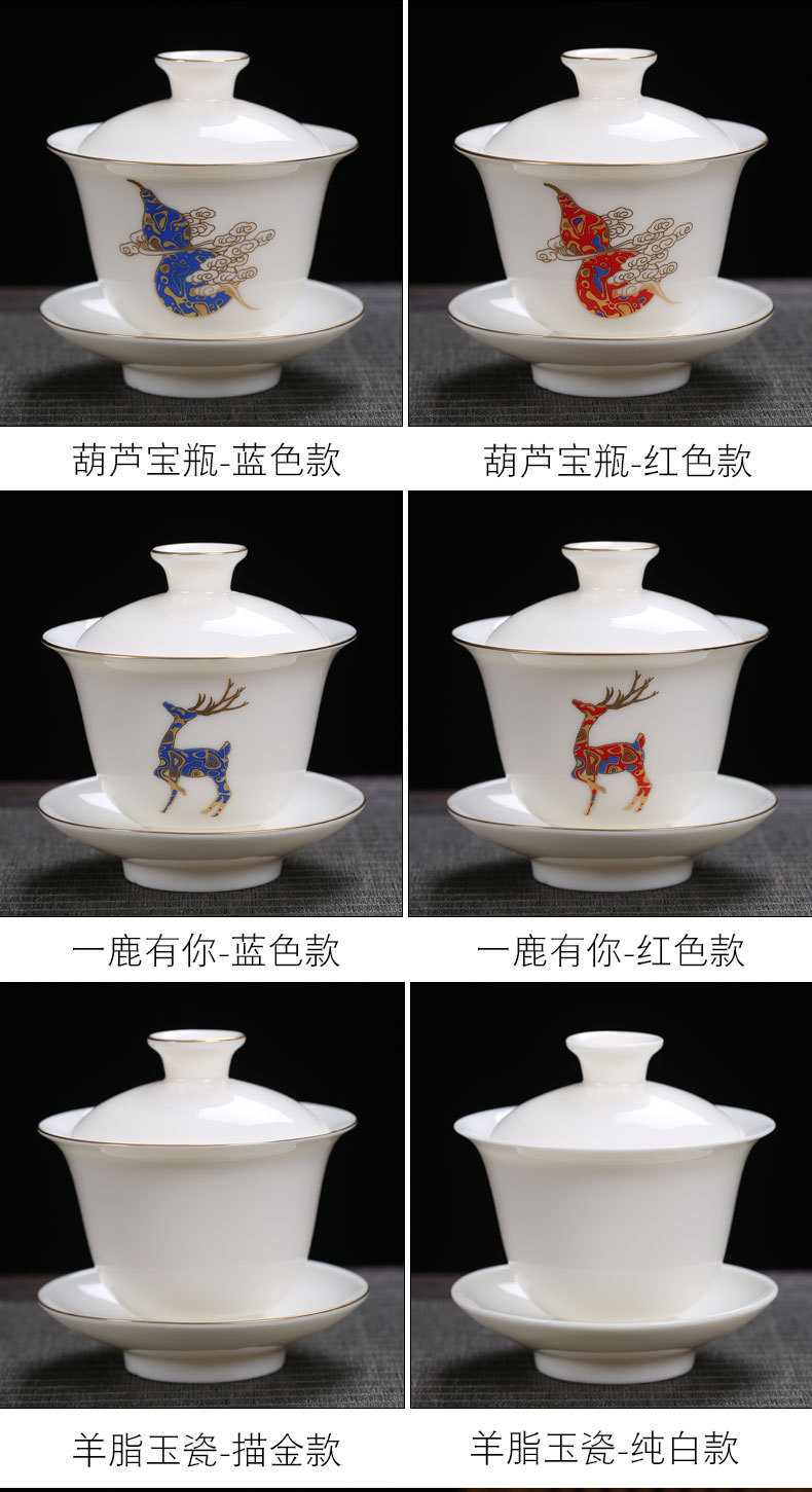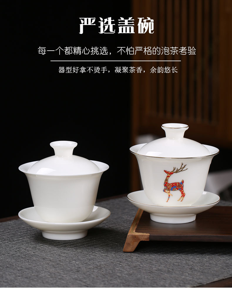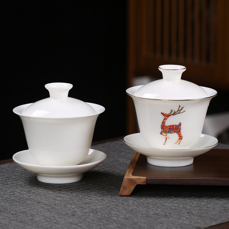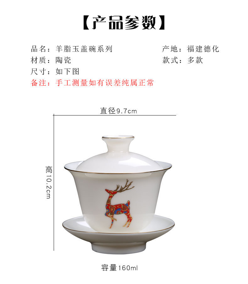 3.8寸羊脂玉白瓷盖碗手绘功夫茶具泡茶碗陶瓷三才盖碗茶杯盖杯喝