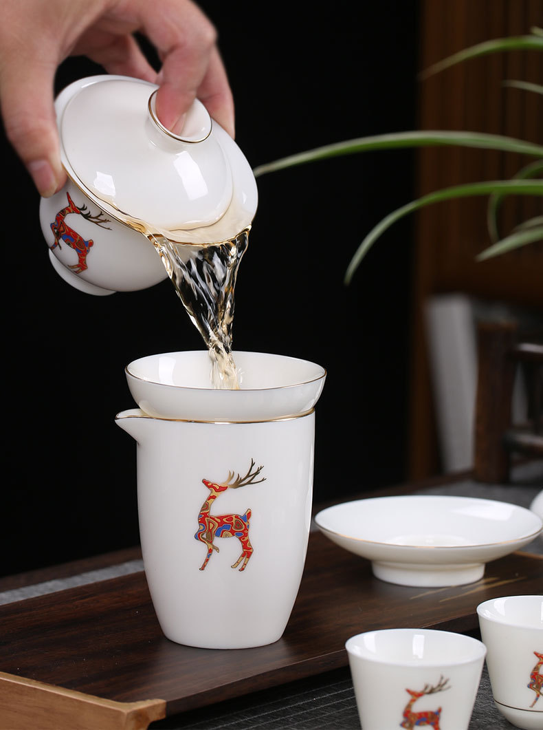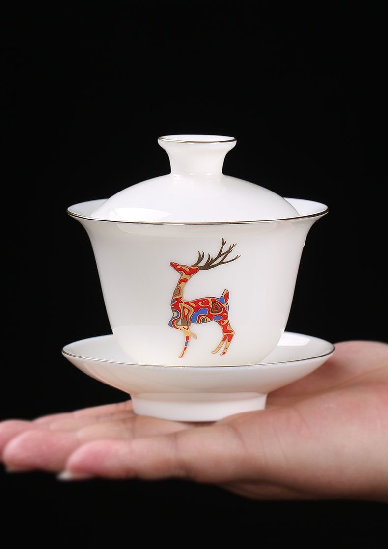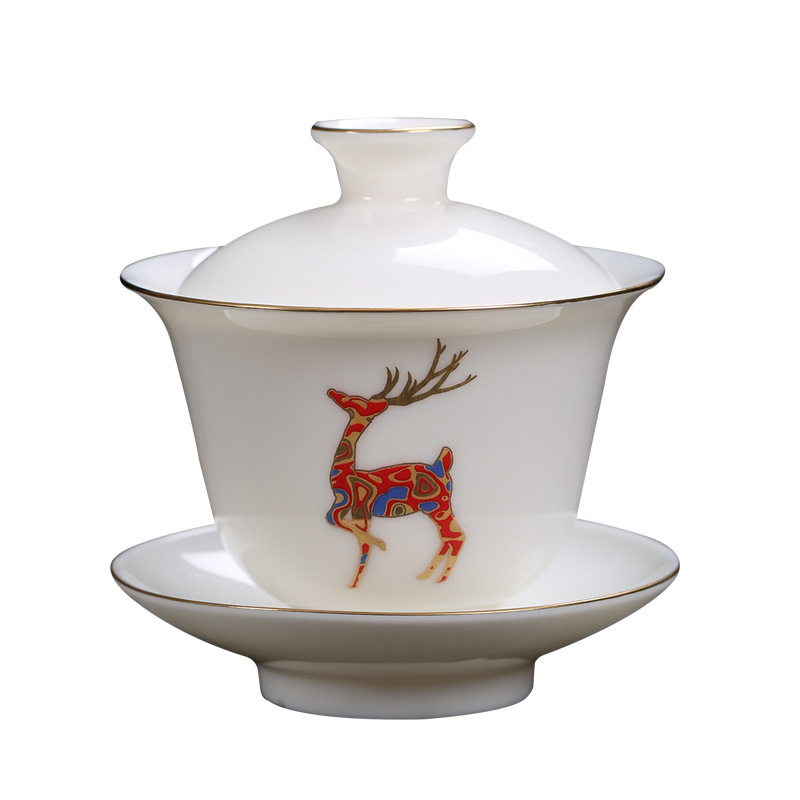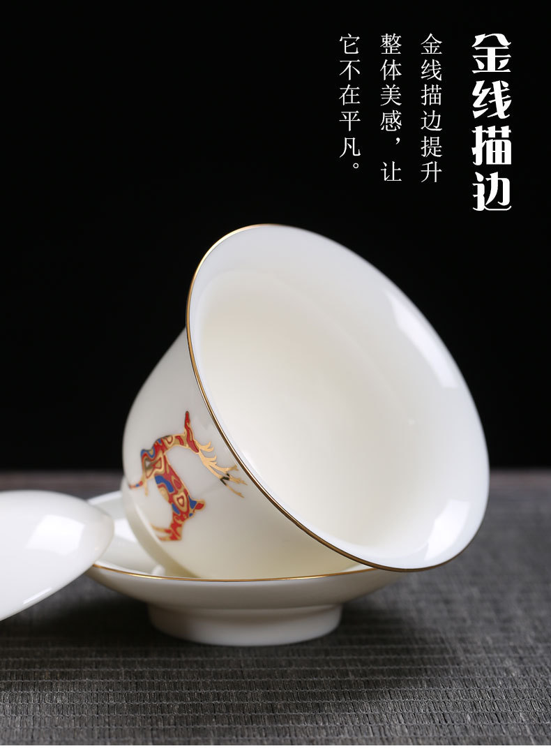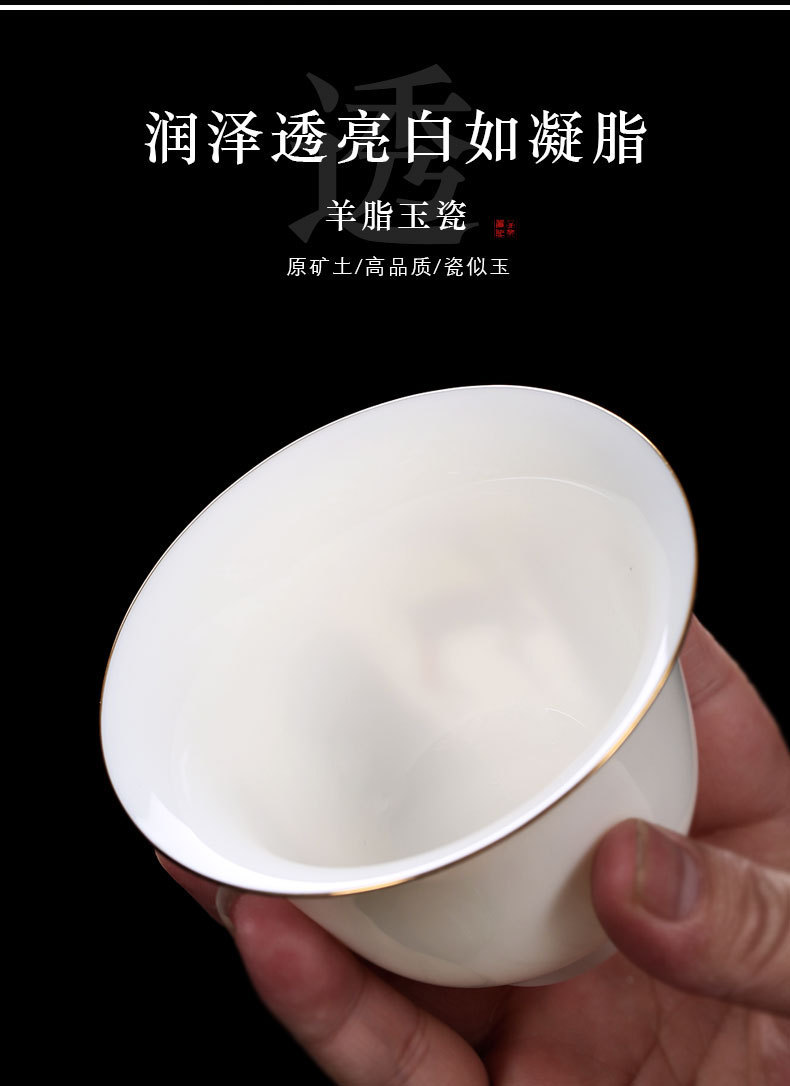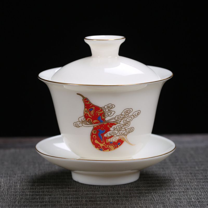 3.8寸羊脂玉白瓷盖碗手绘功夫茶具泡茶碗陶瓷三才盖碗茶杯盖杯喝