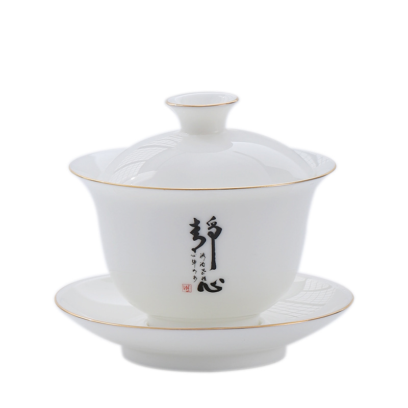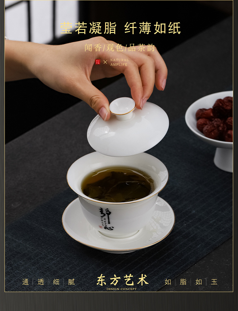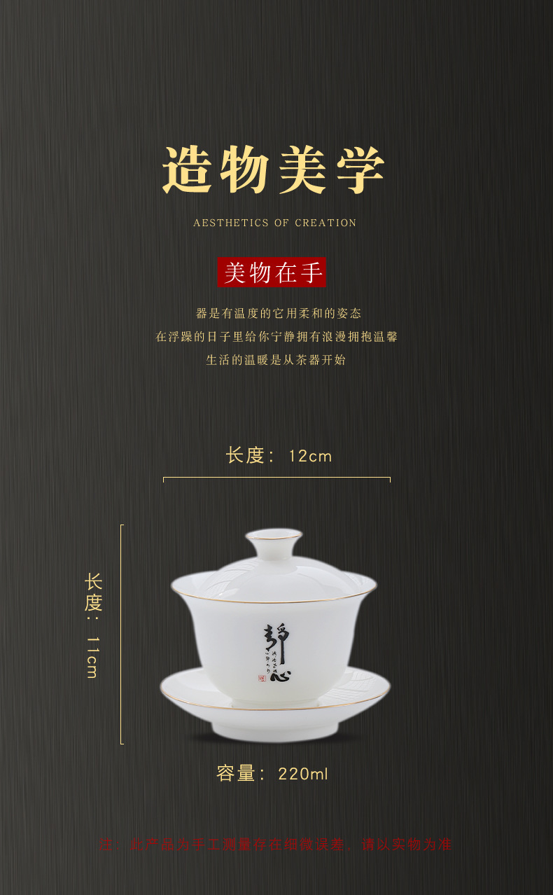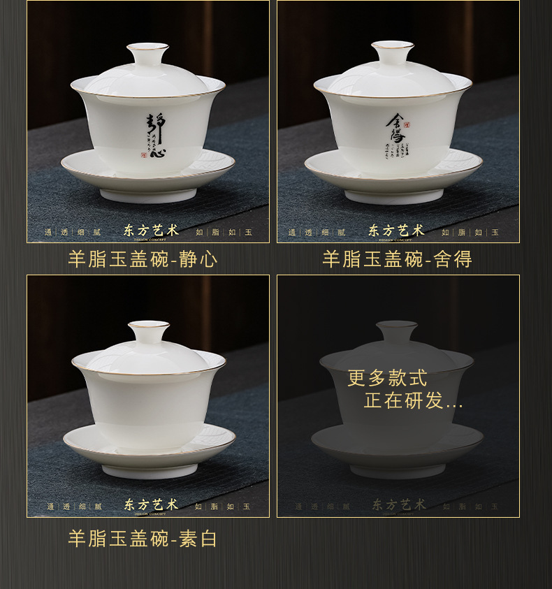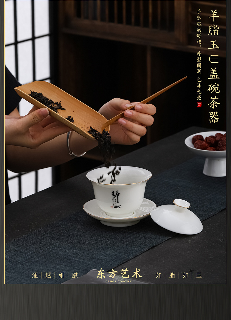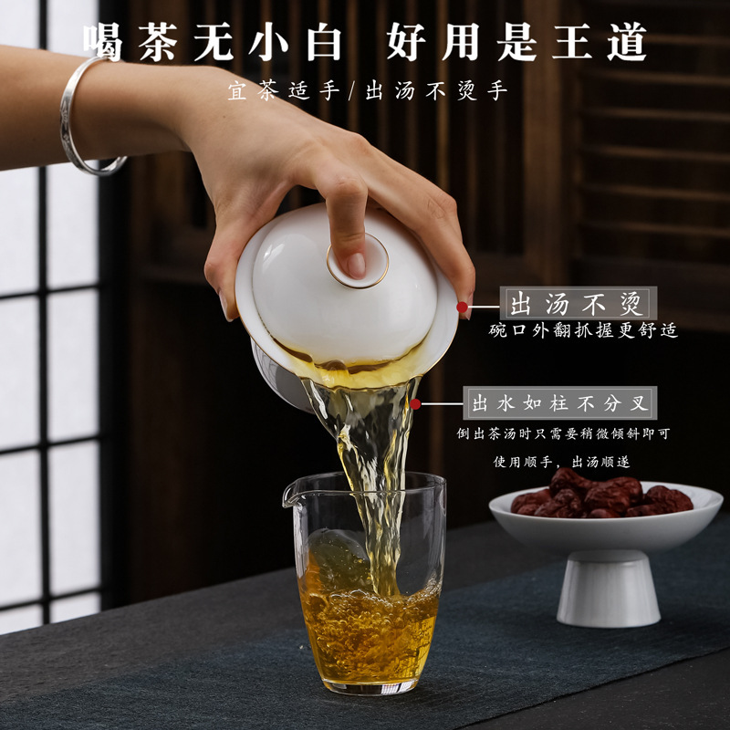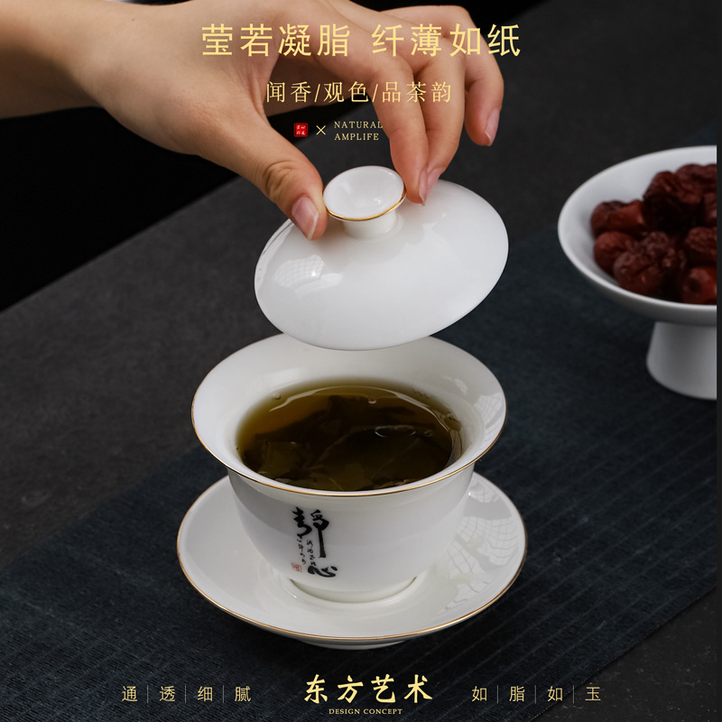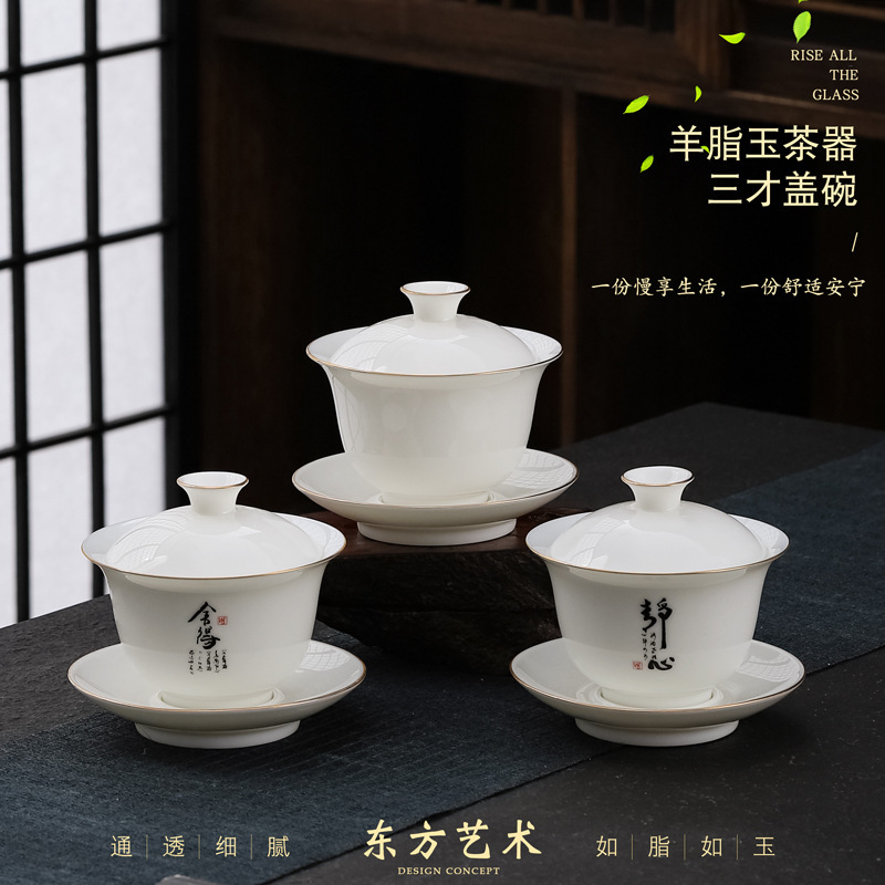 大号容量陶瓷三才盖碗茶杯创意简约家用功夫茶具白瓷羊脂玉盖碗