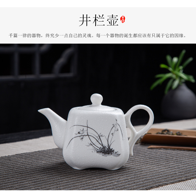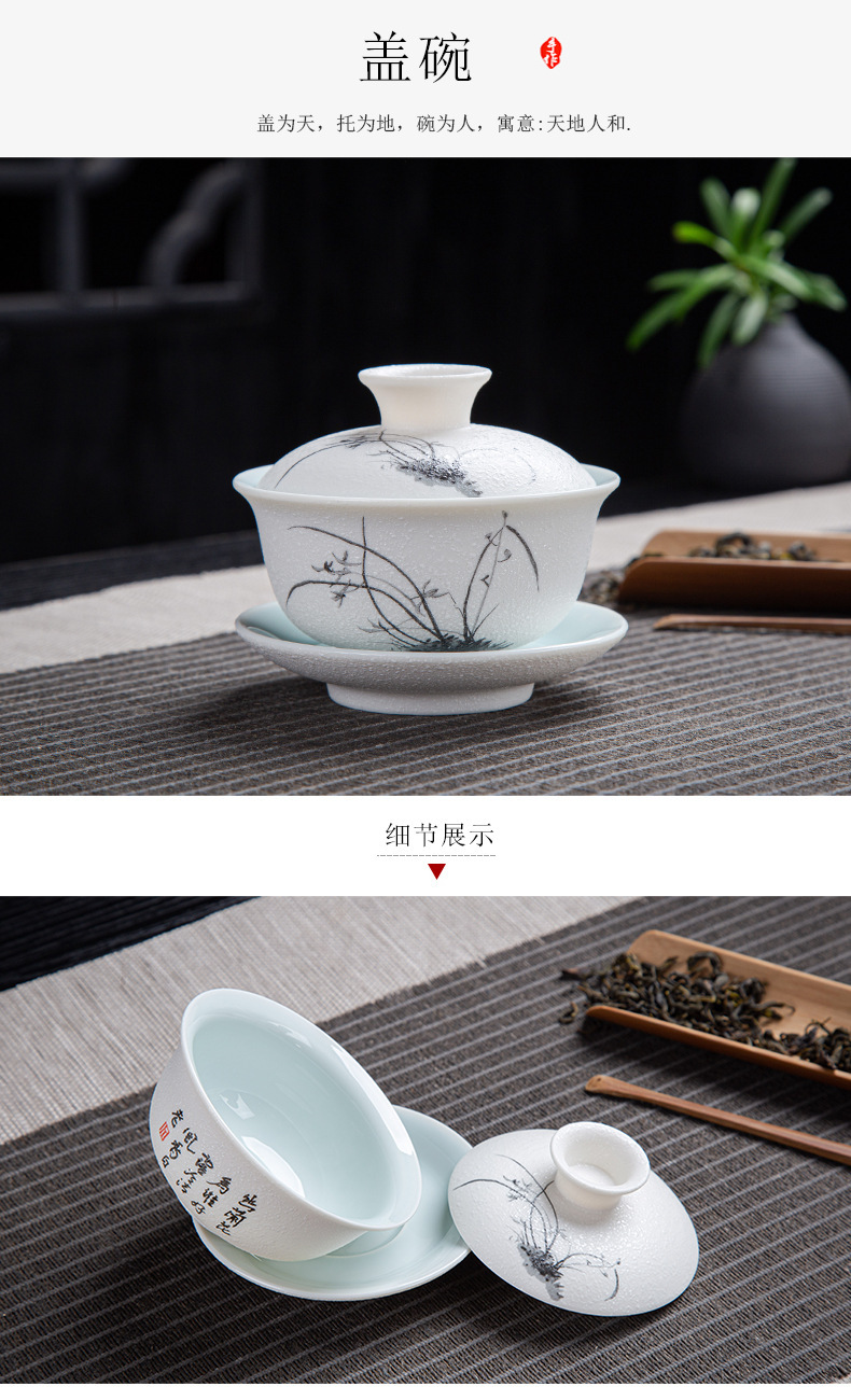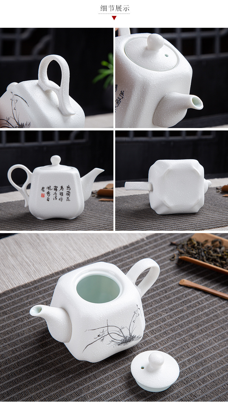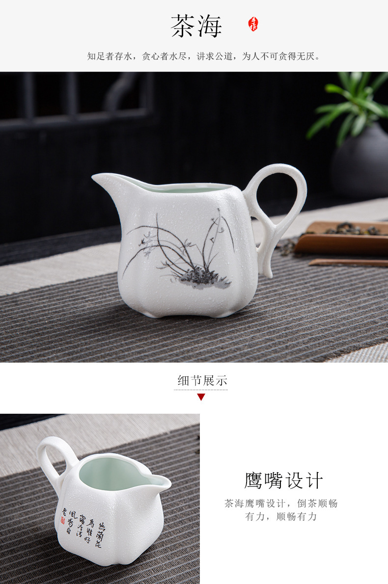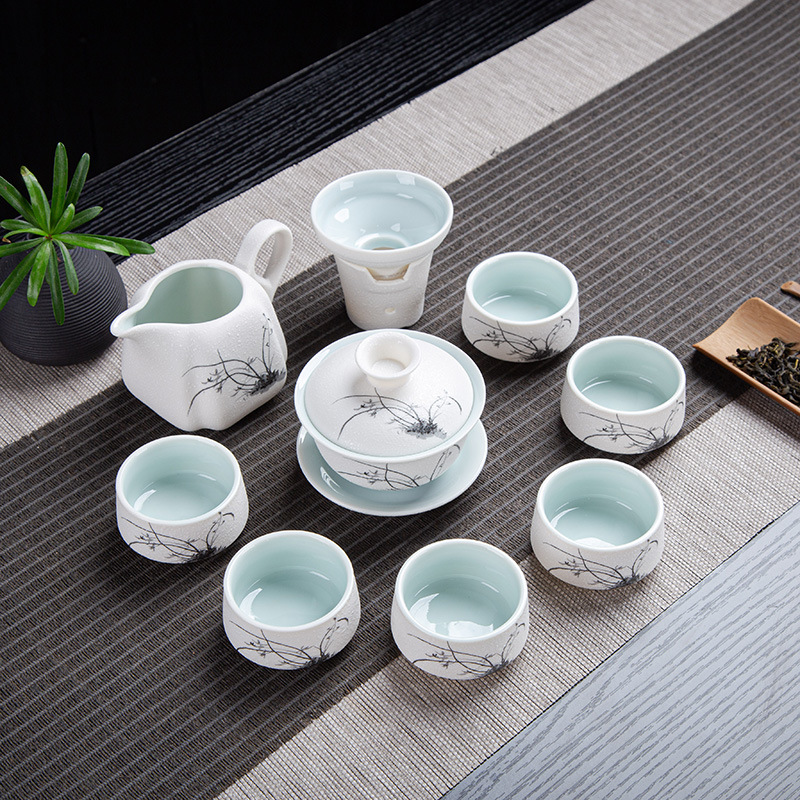 茶具套装雪花釉整套功夫茶具年年有鱼礼品办公室陶瓷家用泡茶壶