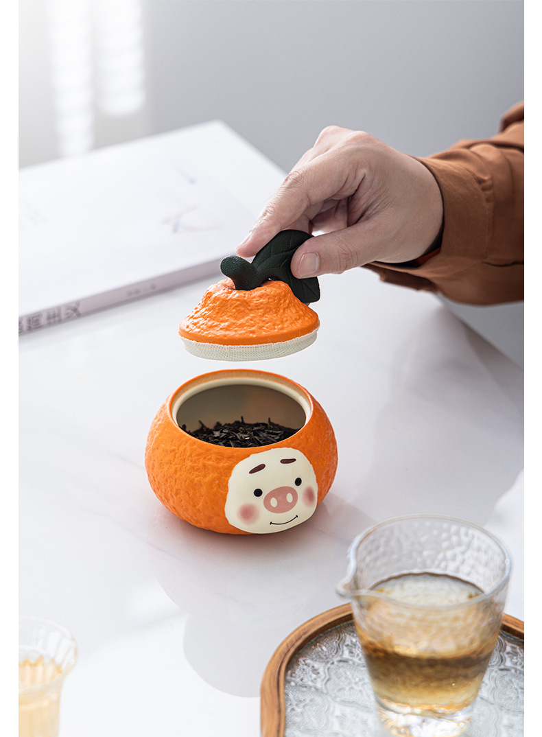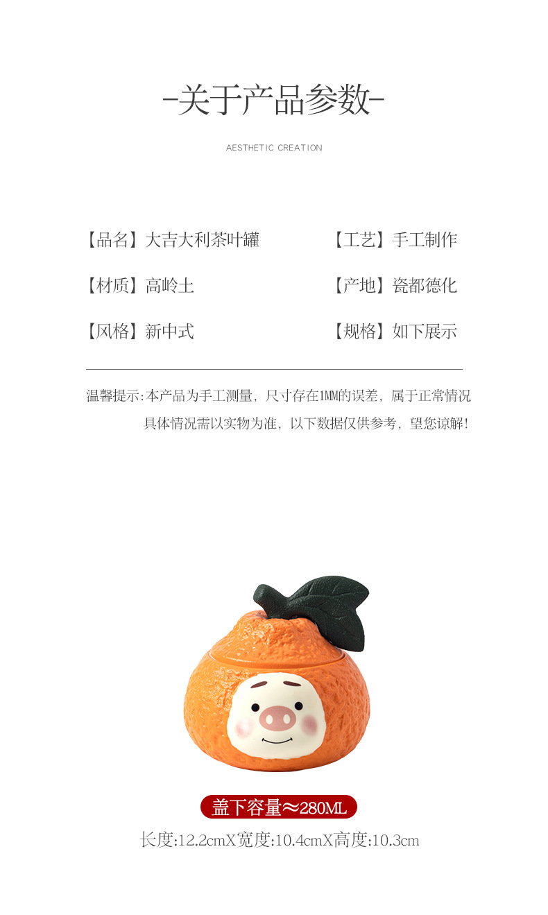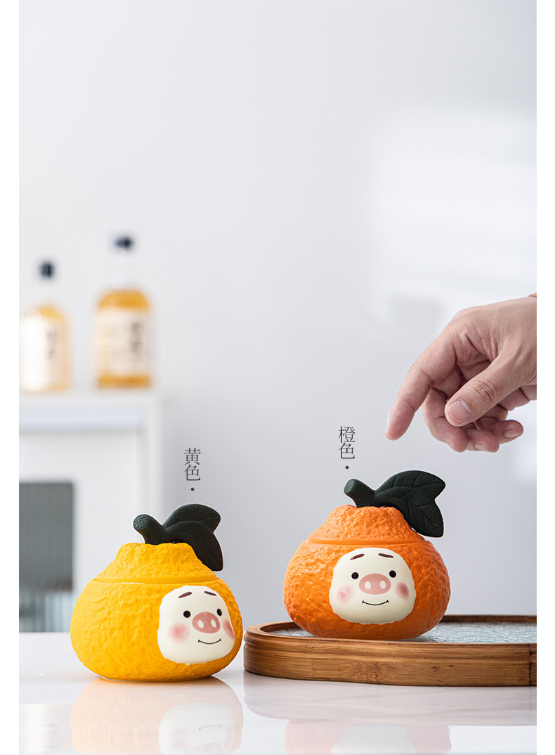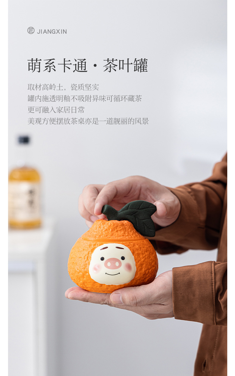 蜡笔小猪大吉大利茶叶罐陶瓷小号密封罐普洱红绿茶糖果罐logo雕刻