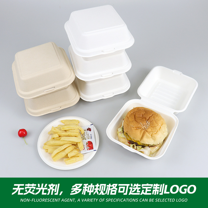 一次性可降解汉堡盒纸浆蛋糕提拉米苏便当餐盒外卖6寸汉堡打包盒