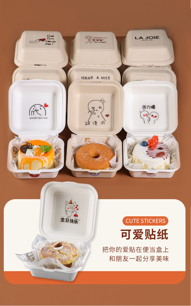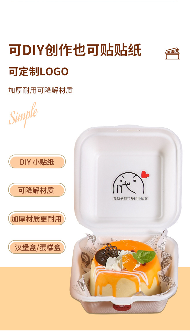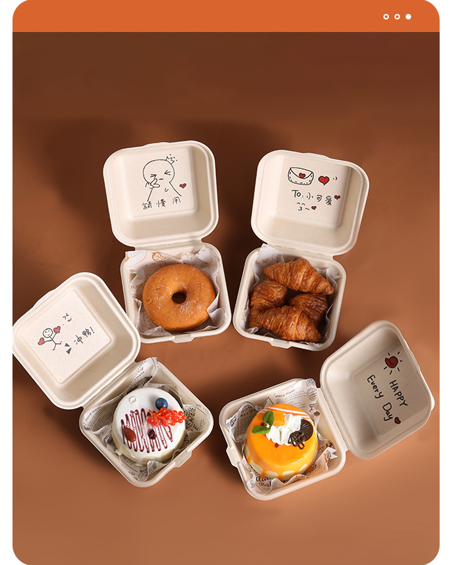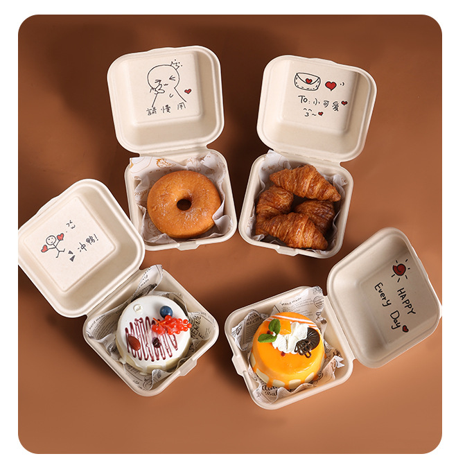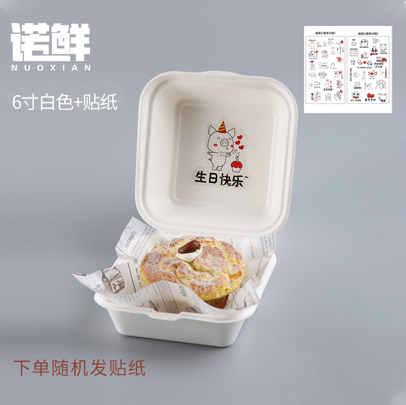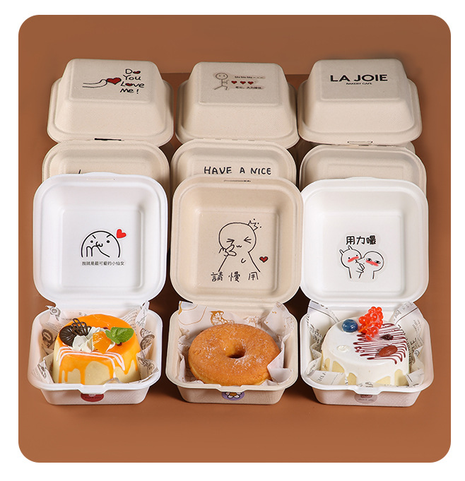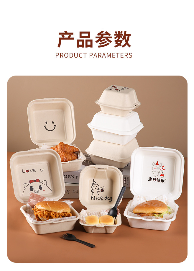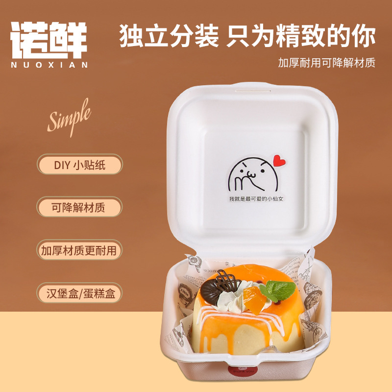 一次性纸浆汉堡盒蛋糕甜品便当盒4寸6寸外卖打包盒网红小吃野餐