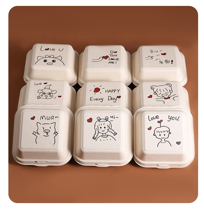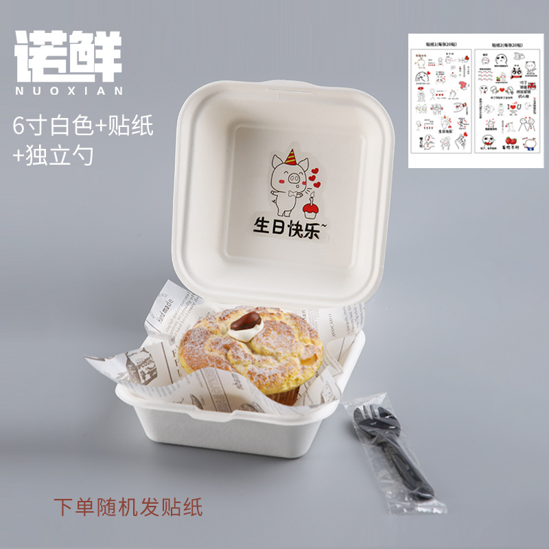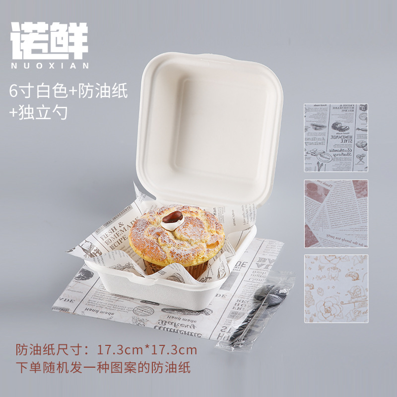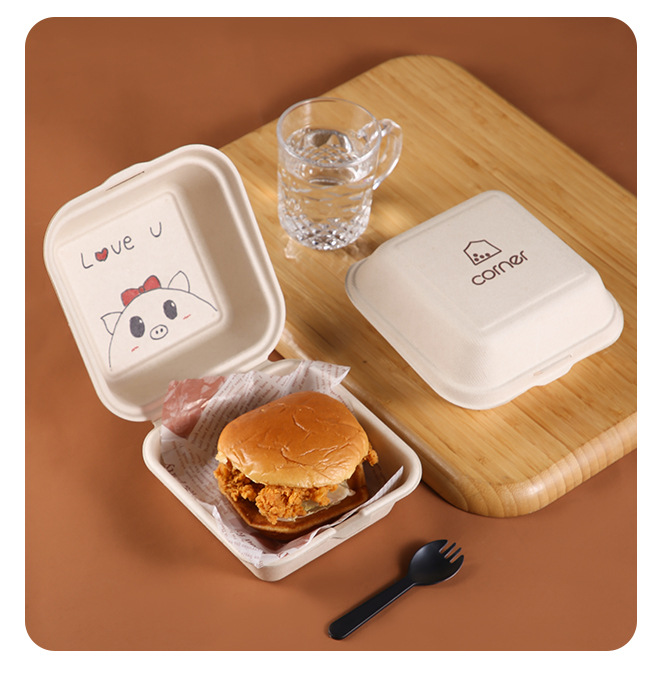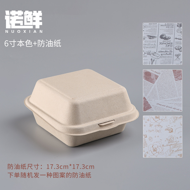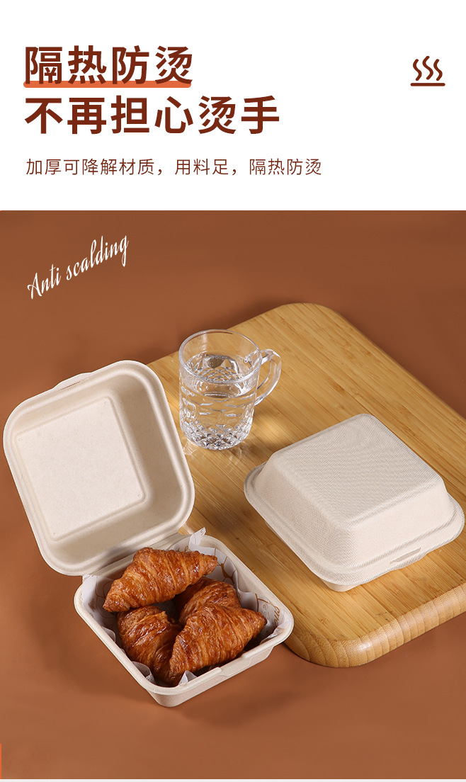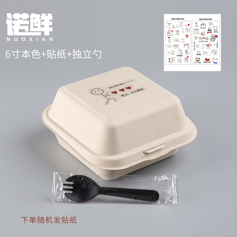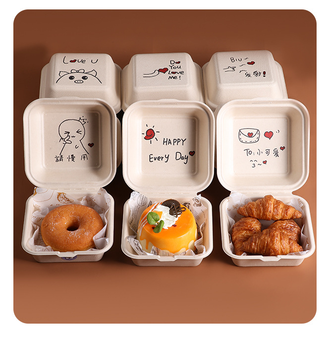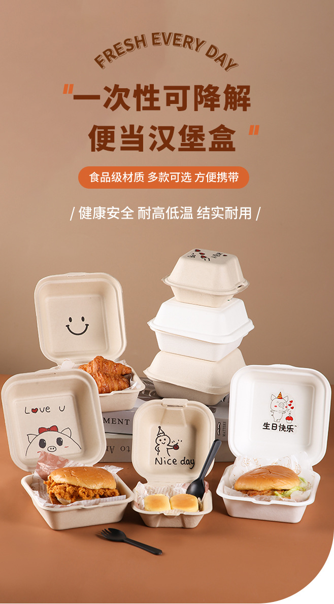一次性纸浆汉堡盒蛋糕甜品便当盒4寸6寸外卖打包盒网红小吃野餐