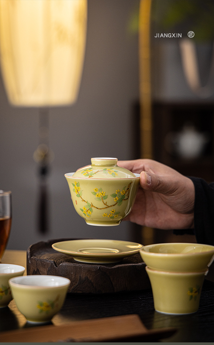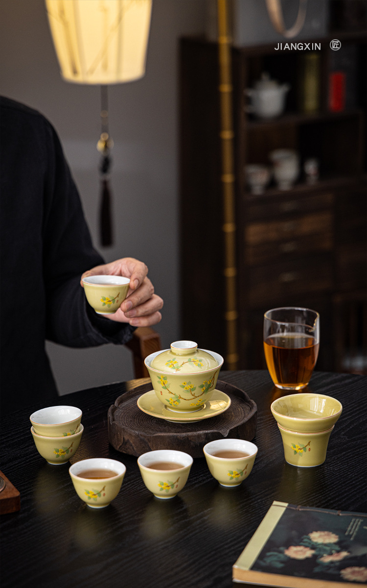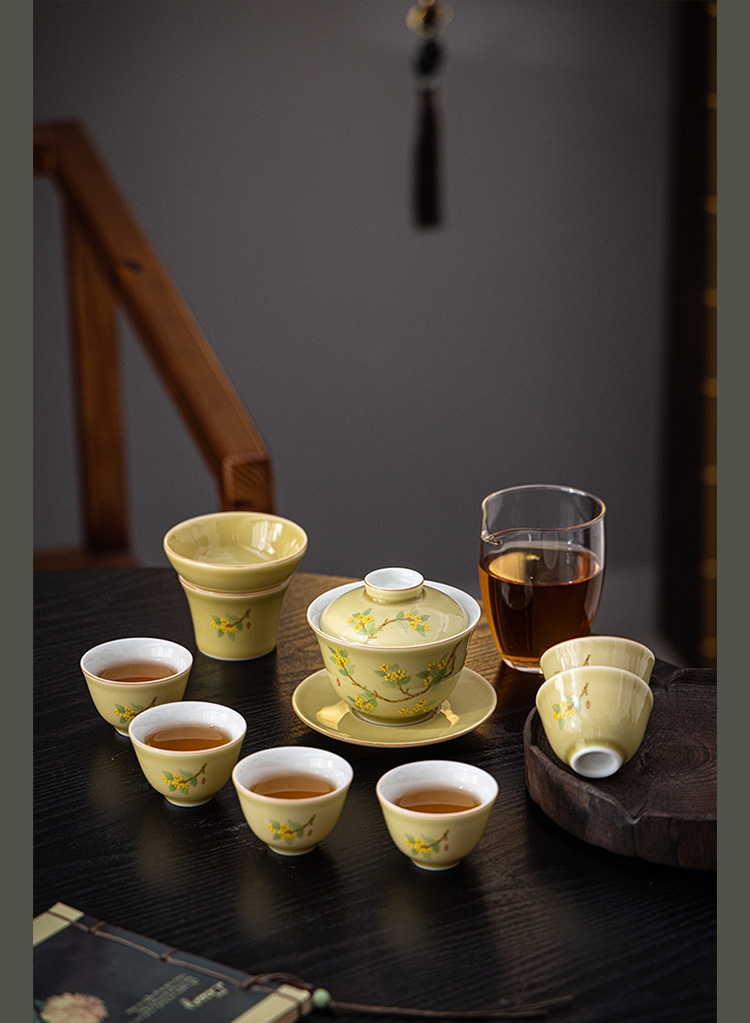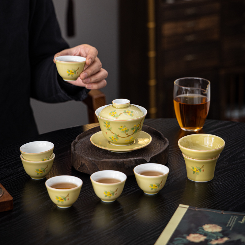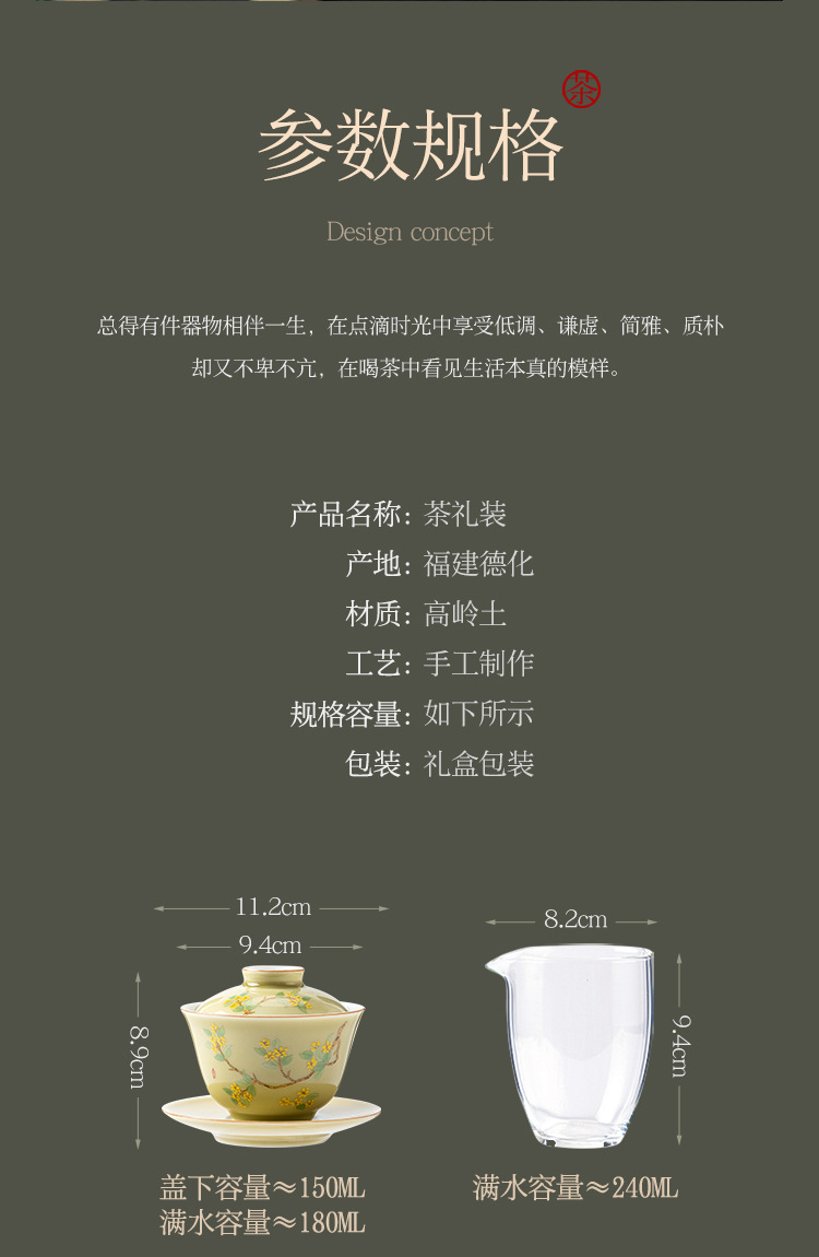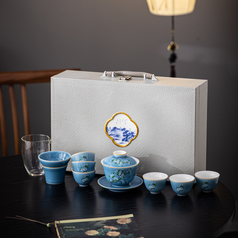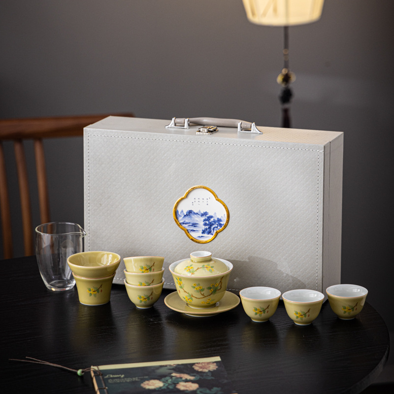 羊脂玉瓷功夫茶具套装新款送礼家用陶瓷泡茶专用茶具白瓷盖碗茶杯