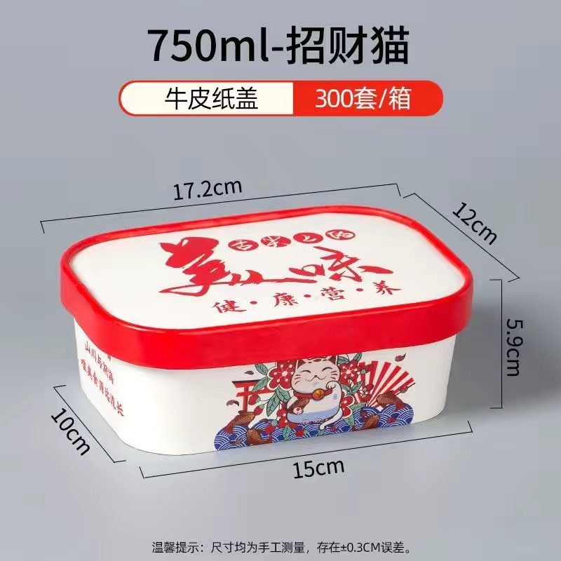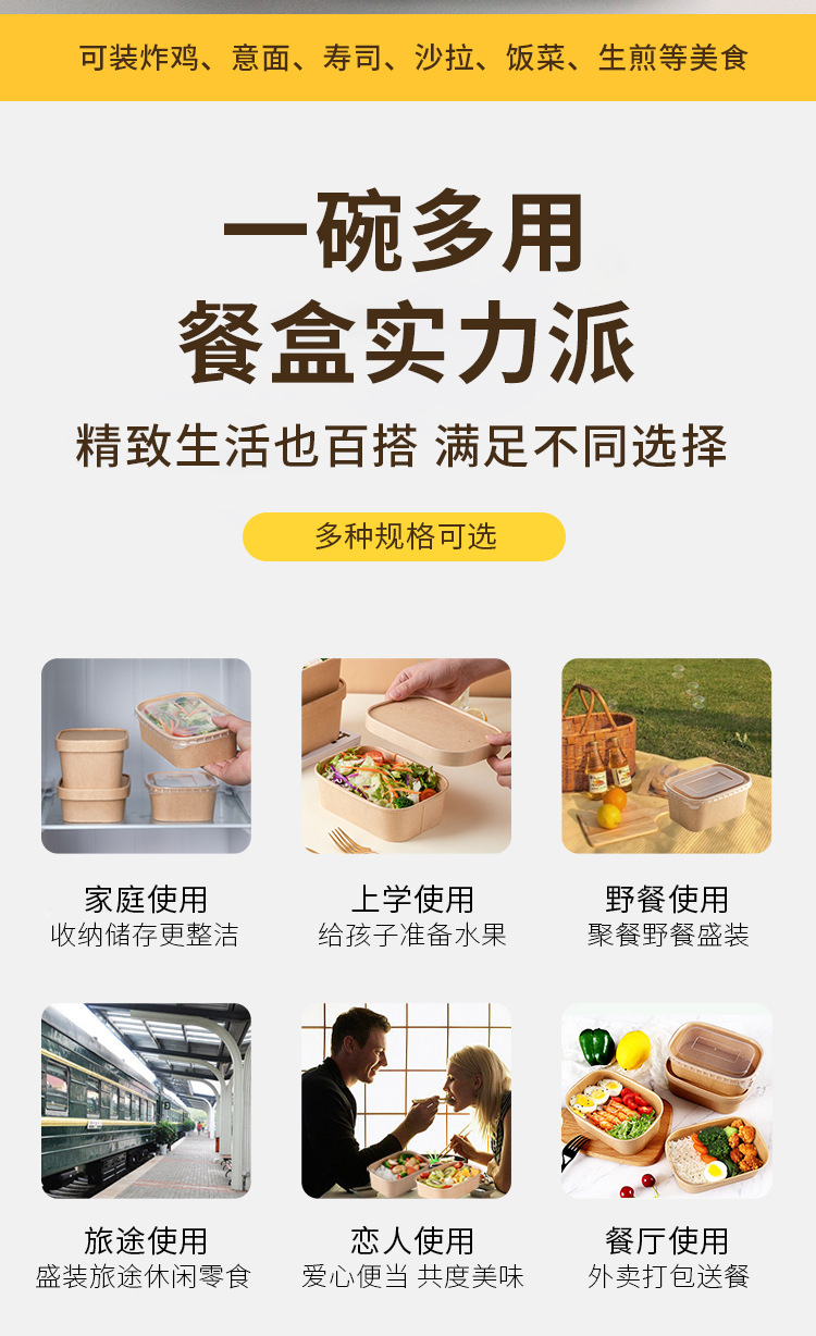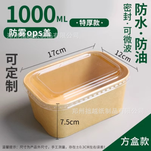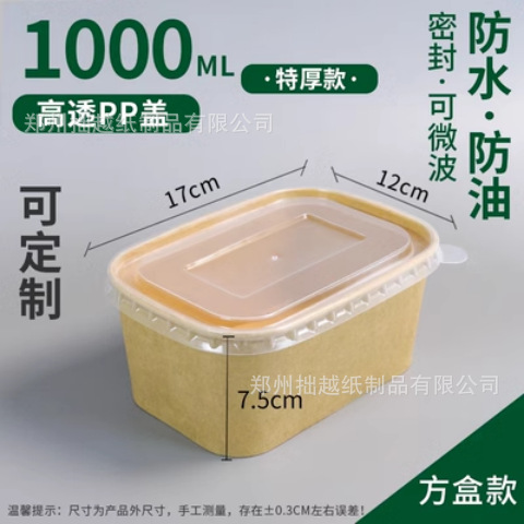 一次性长方形打包盒加厚外卖卤肉饭纸碗带盖沙拉餐盒便当盒打包盒