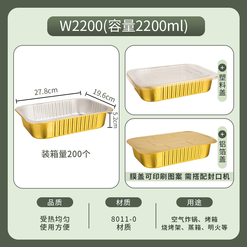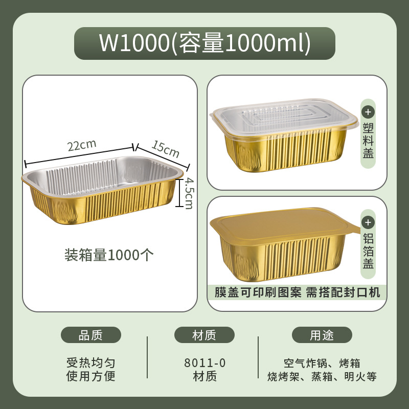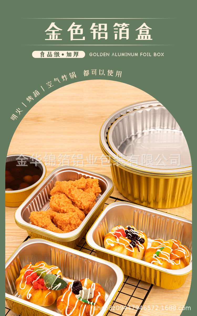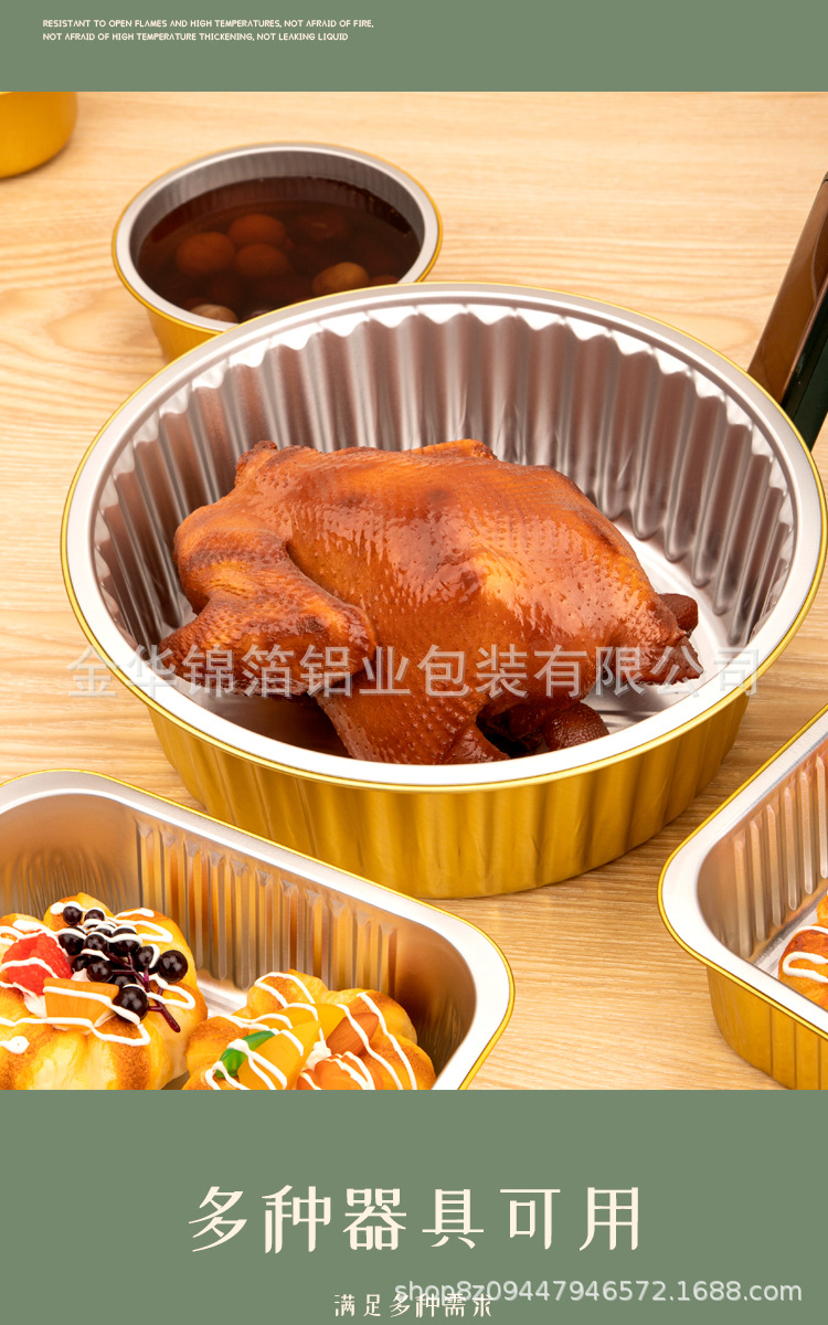 食品级加厚金色圆形长方形一次性铝箔餐盒烧烤外卖打包盒批发商用