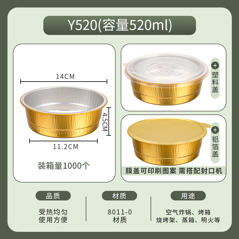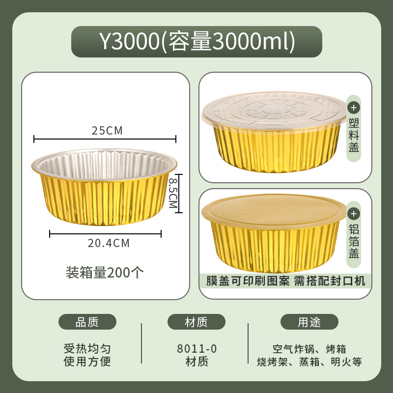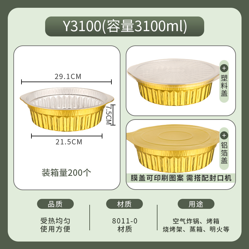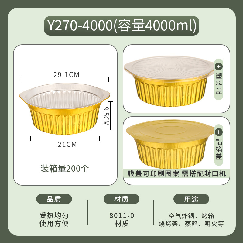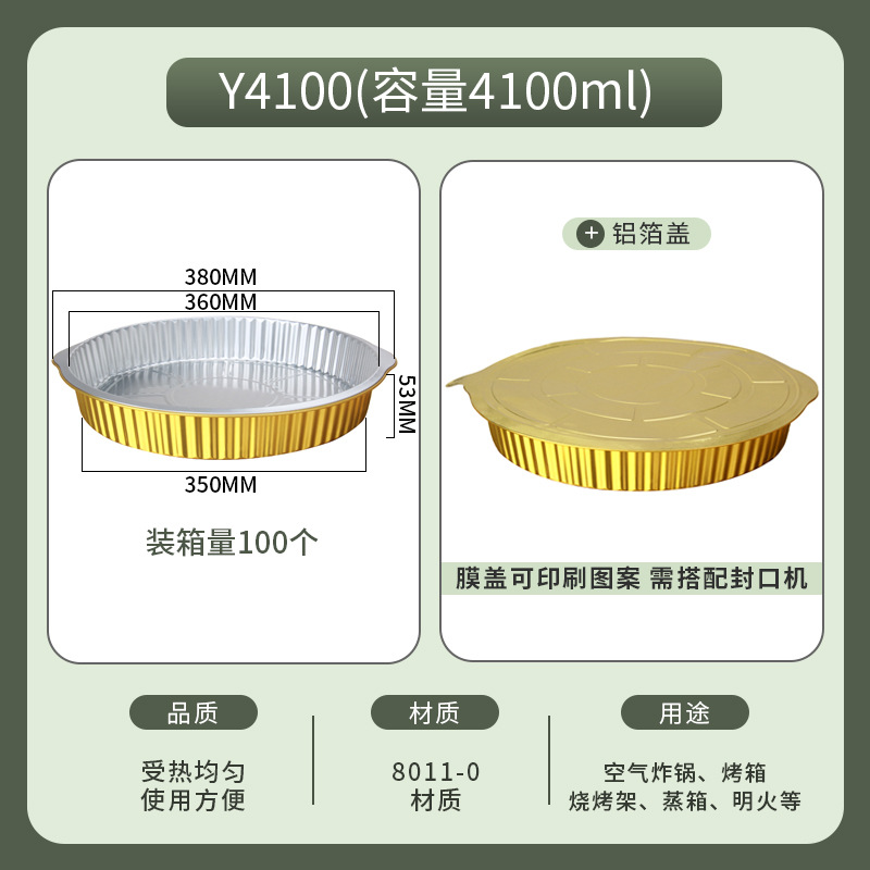 食品级加厚金色圆形长方形一次性铝箔餐盒烧烤外卖打包盒批发商用