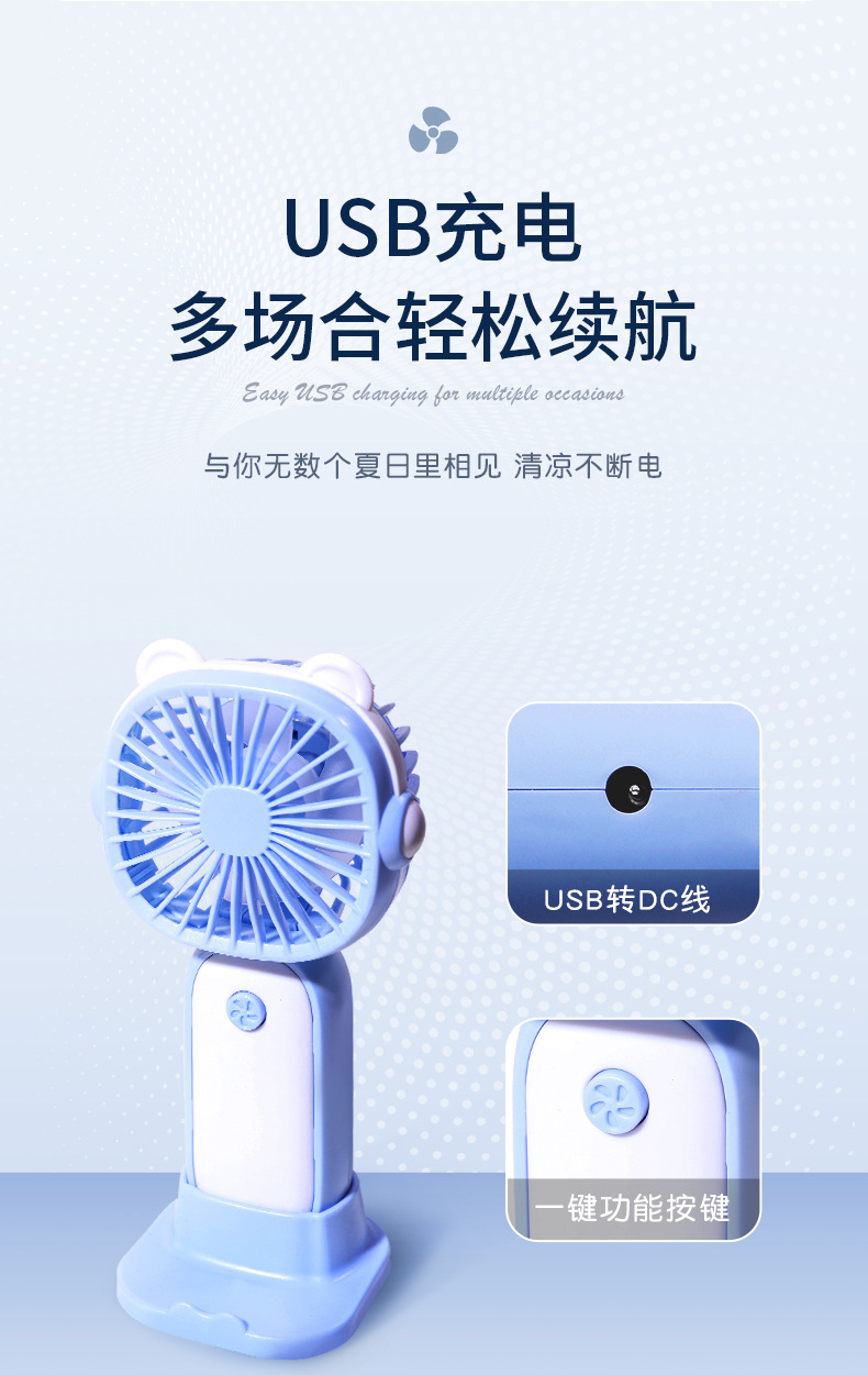 卡通可爱手持迷你简约小风扇 usb充电便携式电扇厂家批发制作LOGO