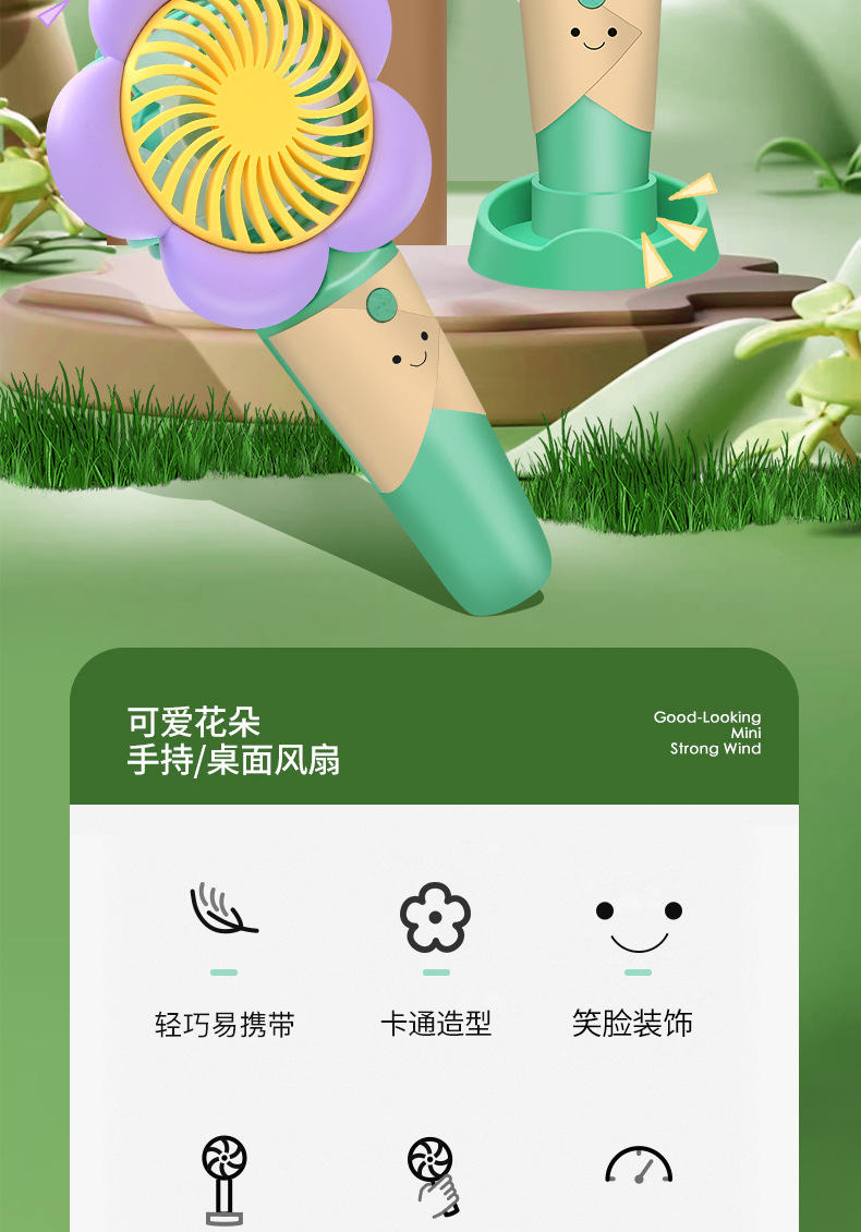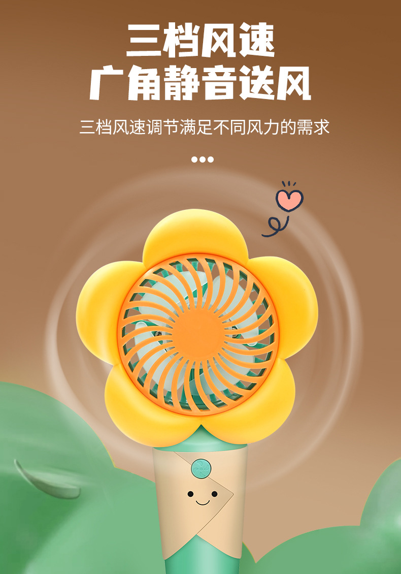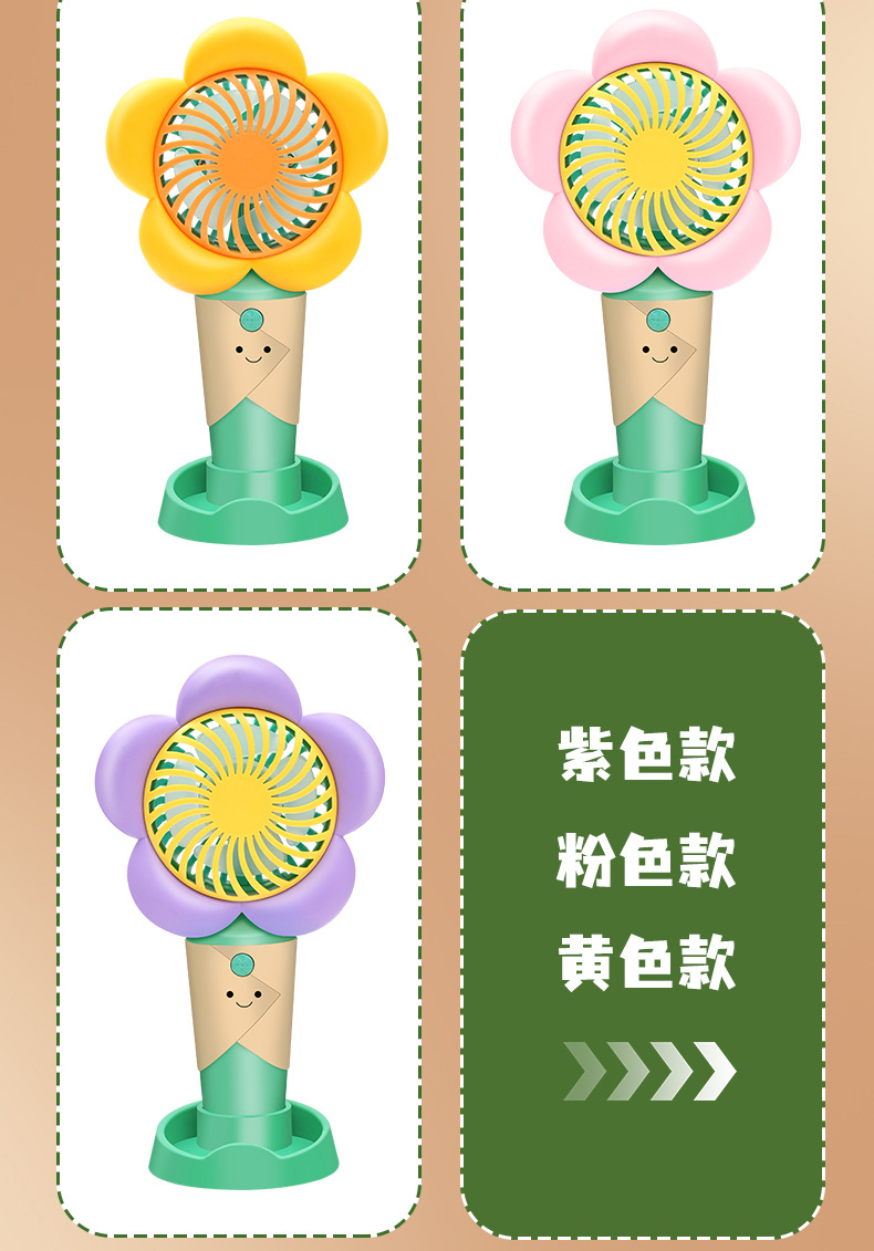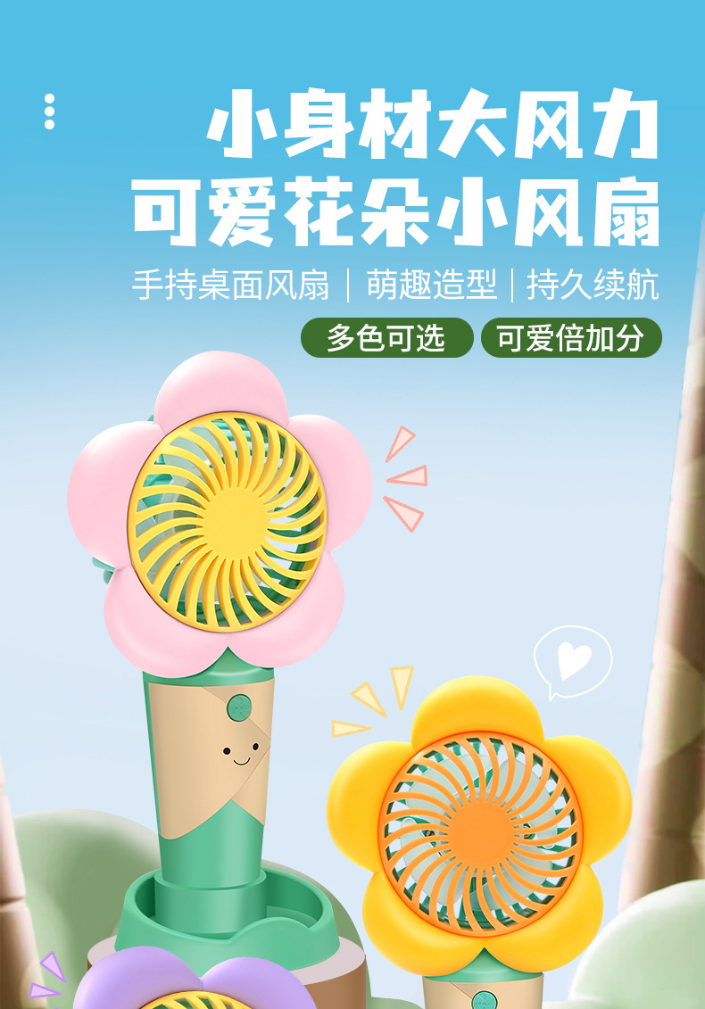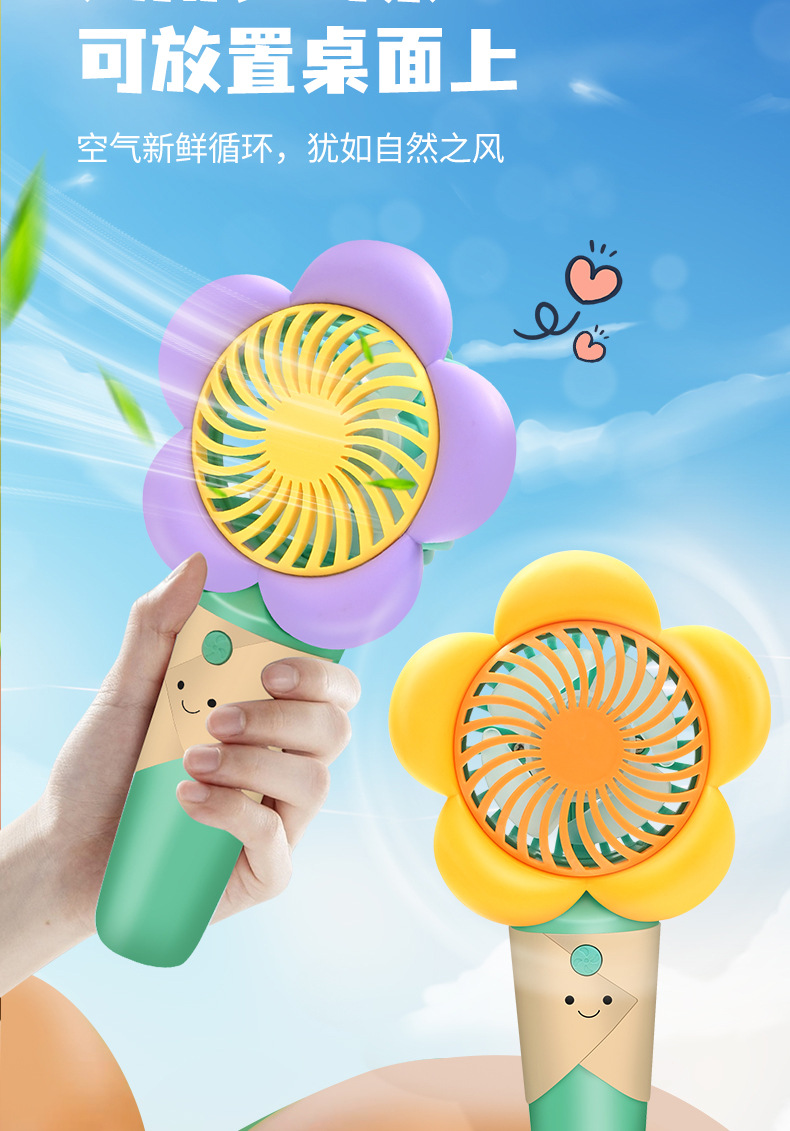 花朵手持小风扇 USB充电迷你电风扇便携大风力手拿桌面礼品风扇厂