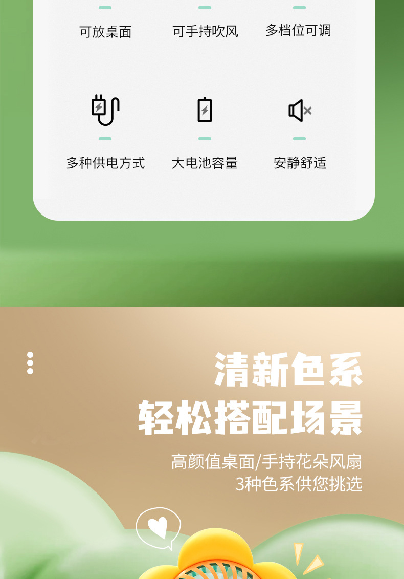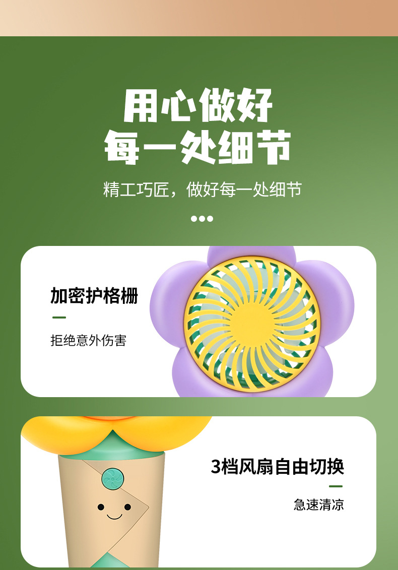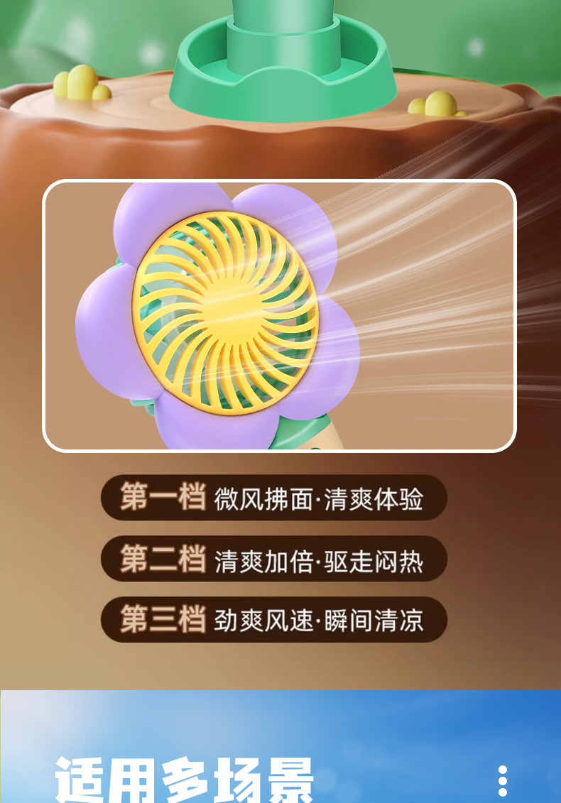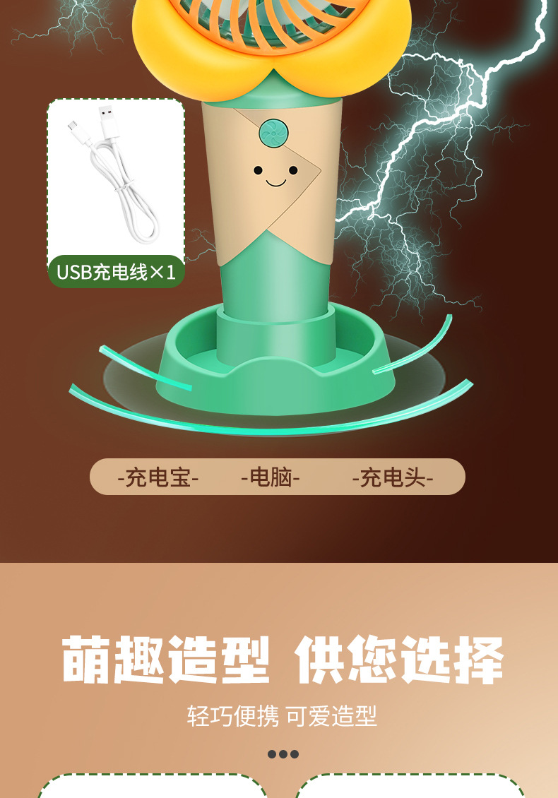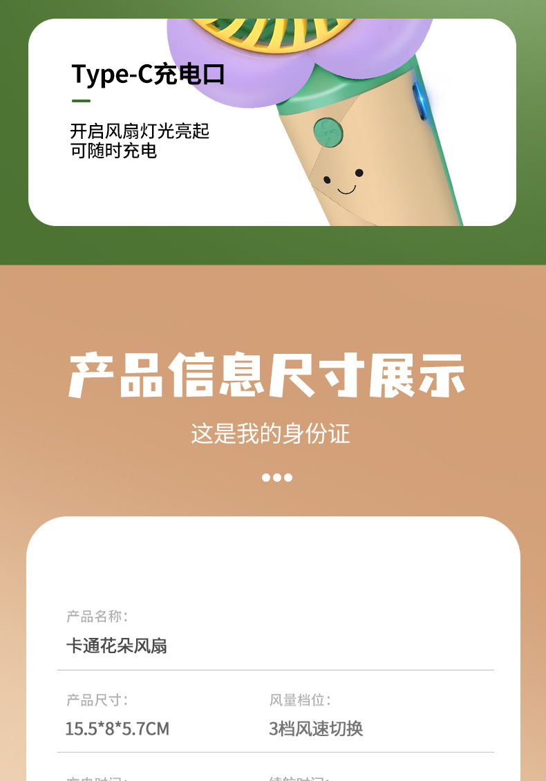 花朵手持小风扇 USB充电迷你电风扇便携大风力手拿桌面礼品风扇厂
