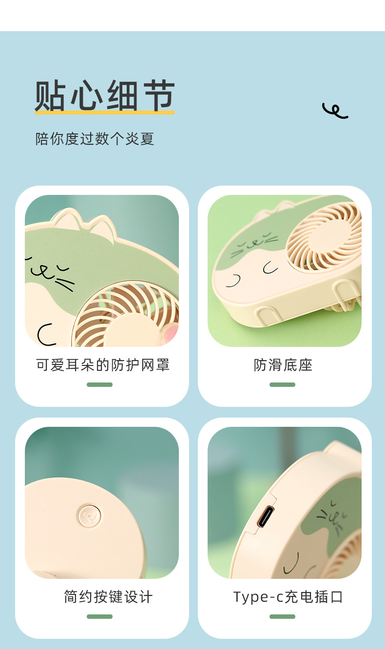 卡通手持小风扇厂迷你风扇便携式可爱usb充电户外静音跨境电风扇