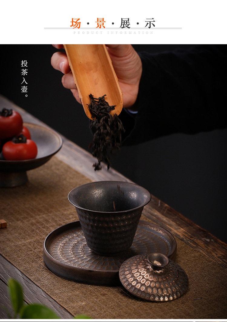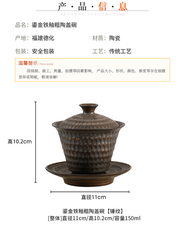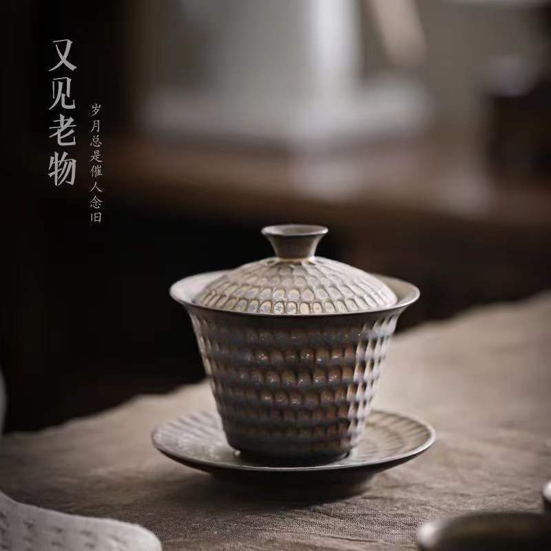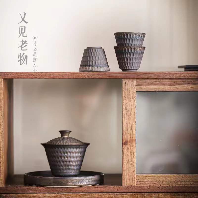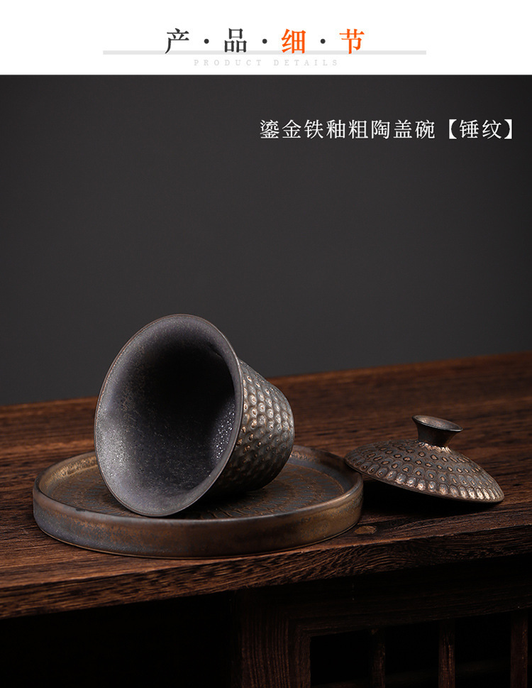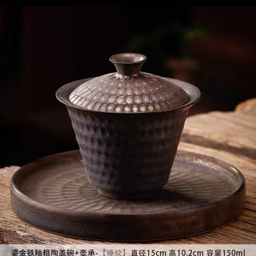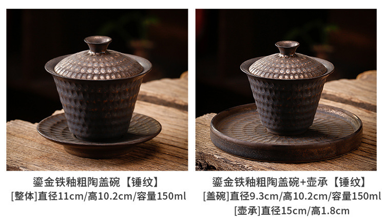 仿古三才盖碗茶杯单个功夫茶具铁锈釉中式家用泡茶碗不烫手冲茶器