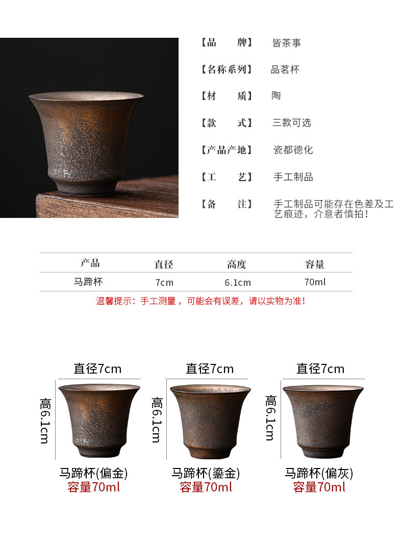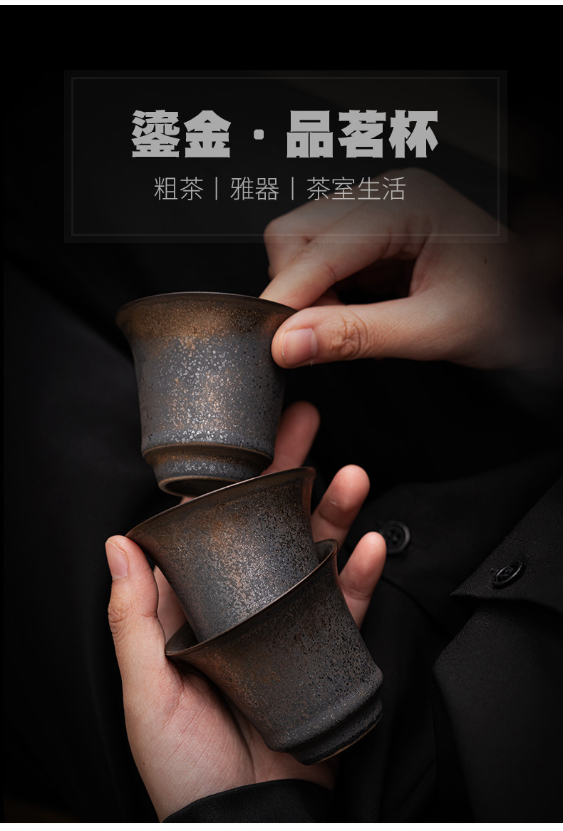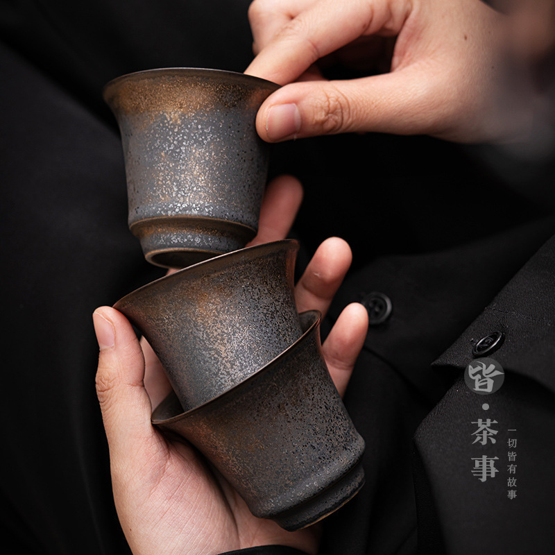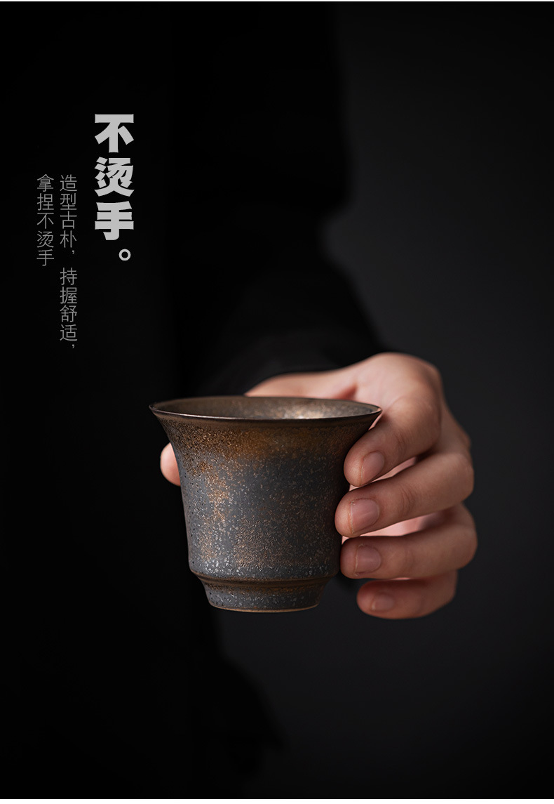 复古单个品茗杯个人杯中式功夫茶具粗陶喝茶小茶碗家用陶瓷茶杯