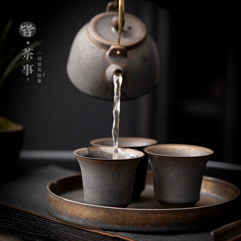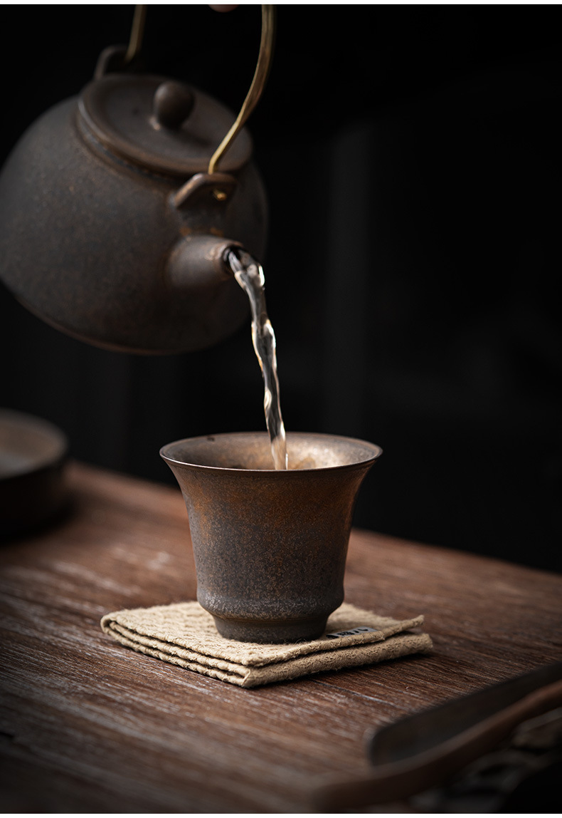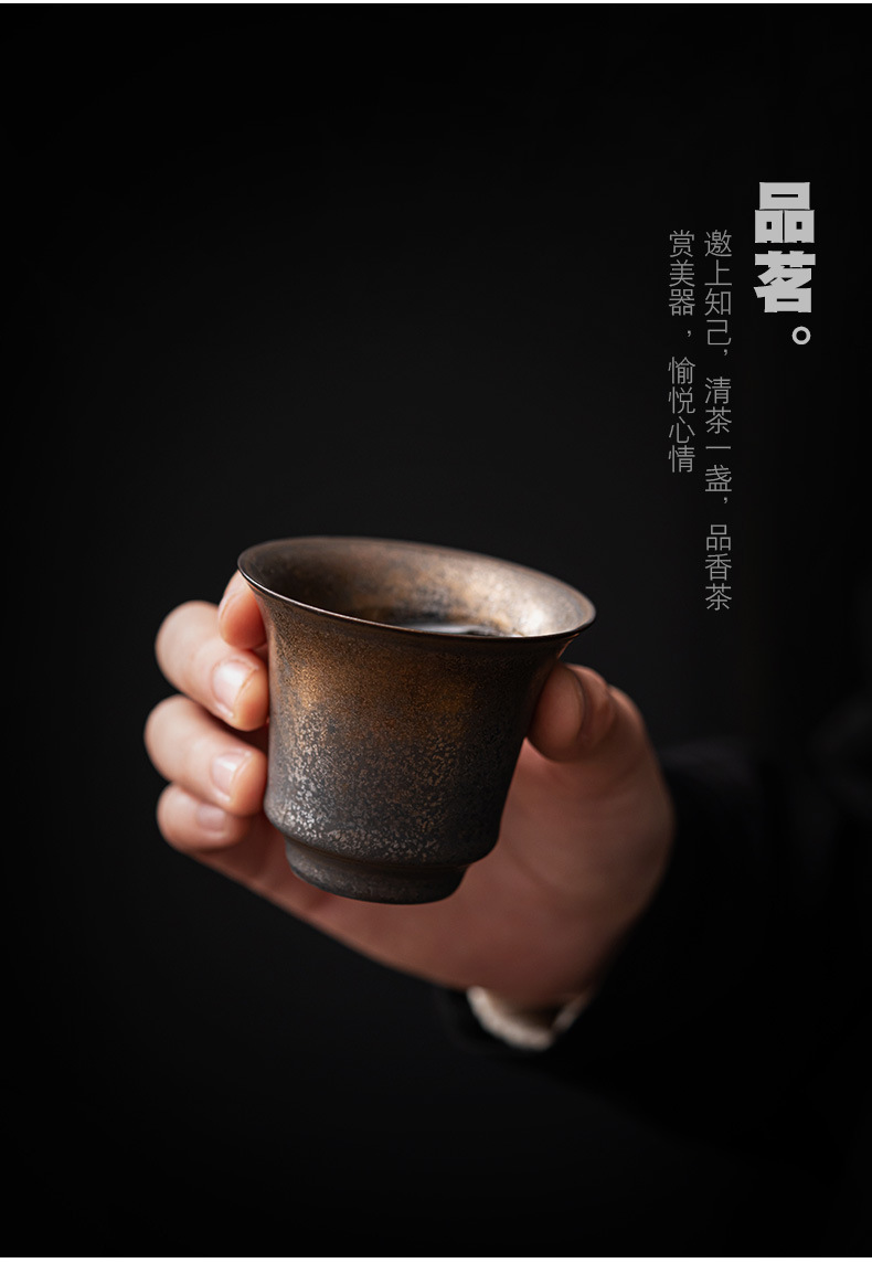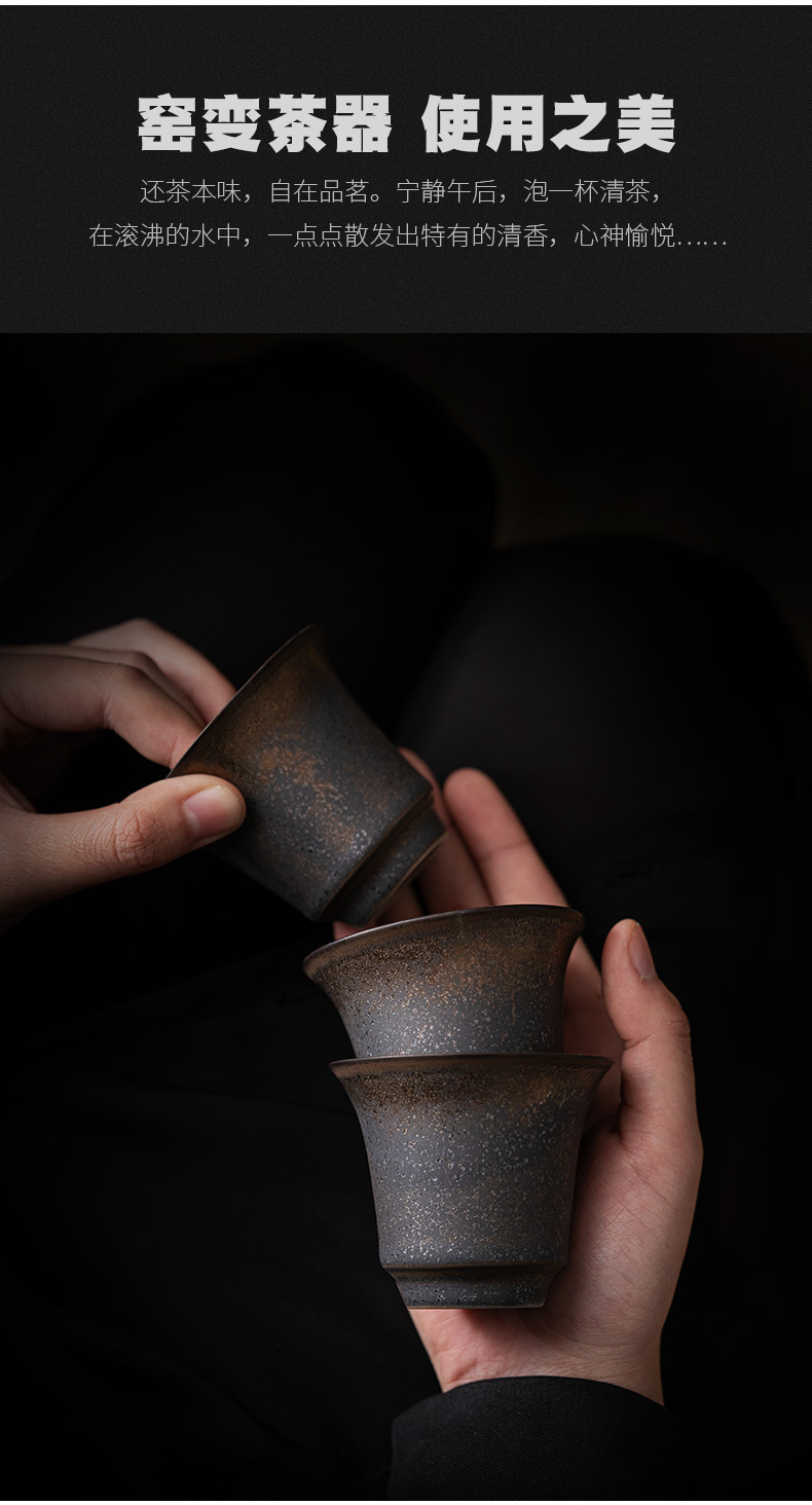 复古单个品茗杯个人杯中式功夫茶具粗陶喝茶小茶碗家用陶瓷茶杯