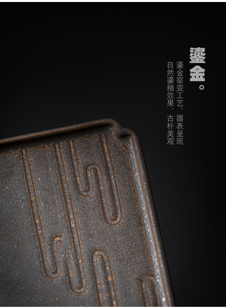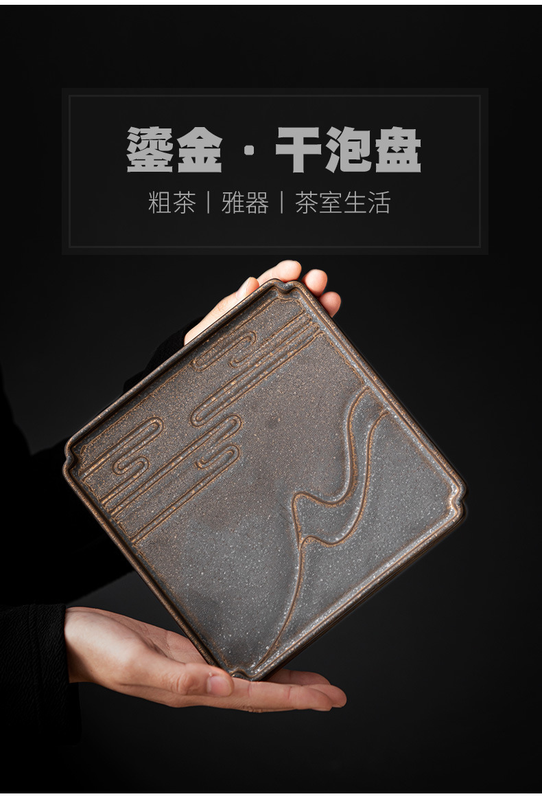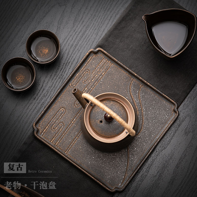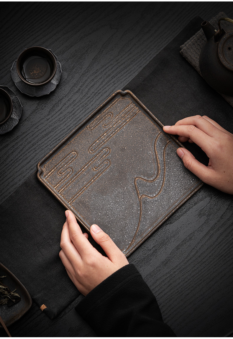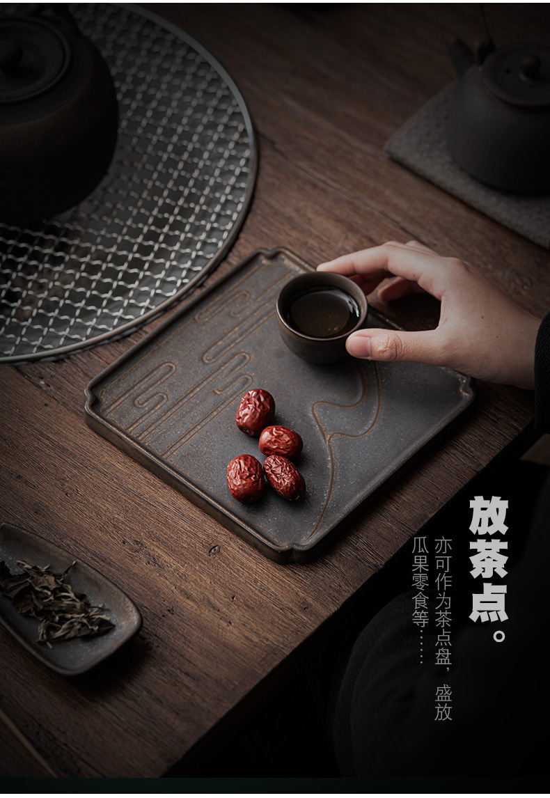 复古粗陶茶盘中式功夫茶具收纳盘泡茶盘家用陶瓷四方盘干泡盘茶托