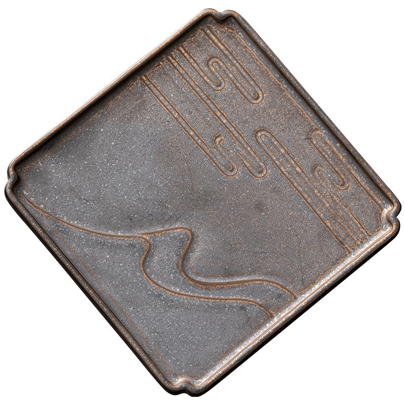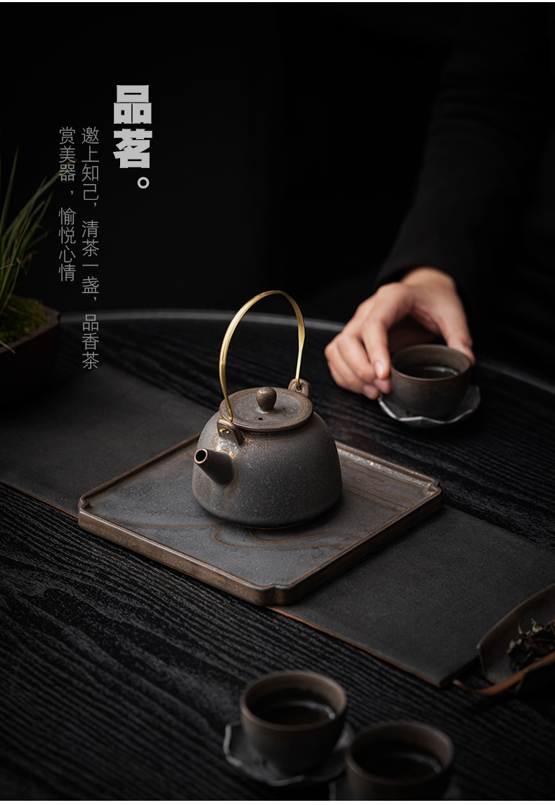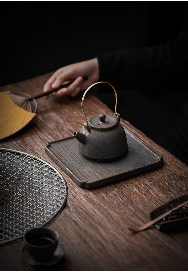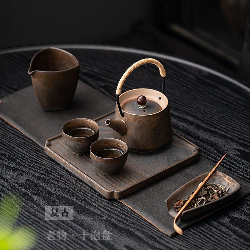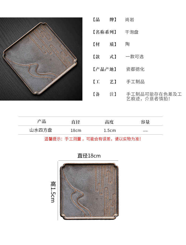 复古粗陶茶盘中式功夫茶具收纳盘泡茶盘家用陶瓷四方盘干泡盘茶托