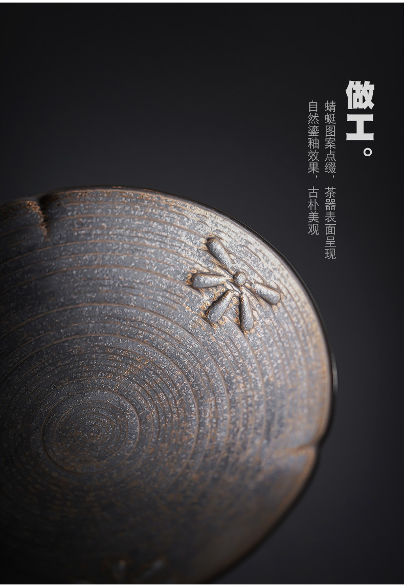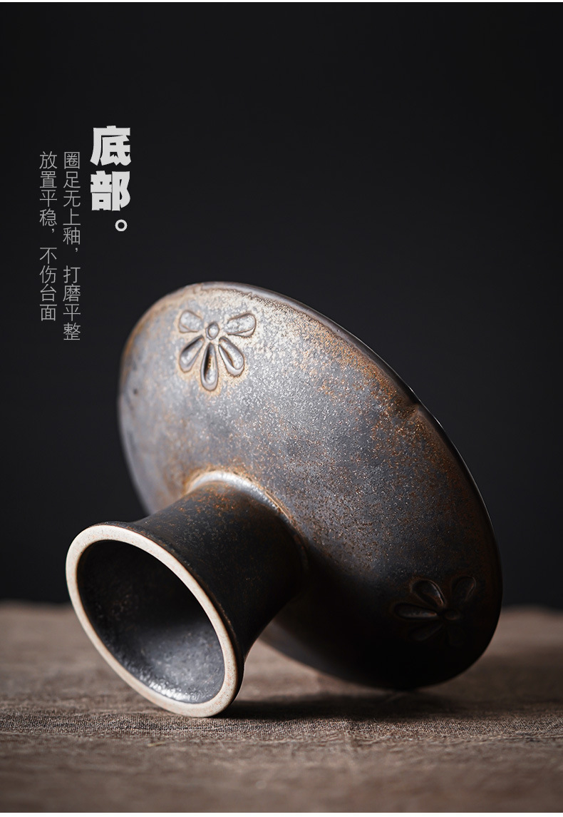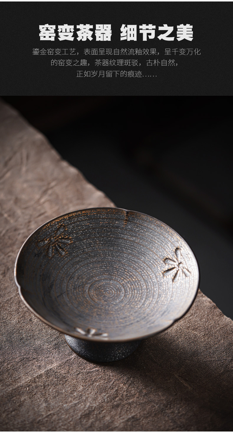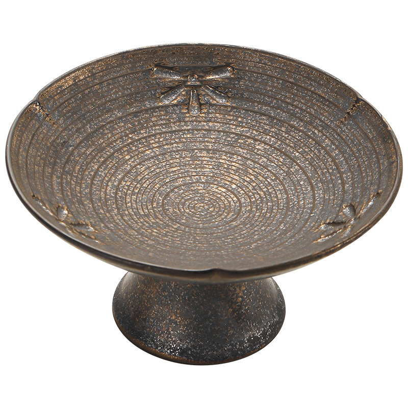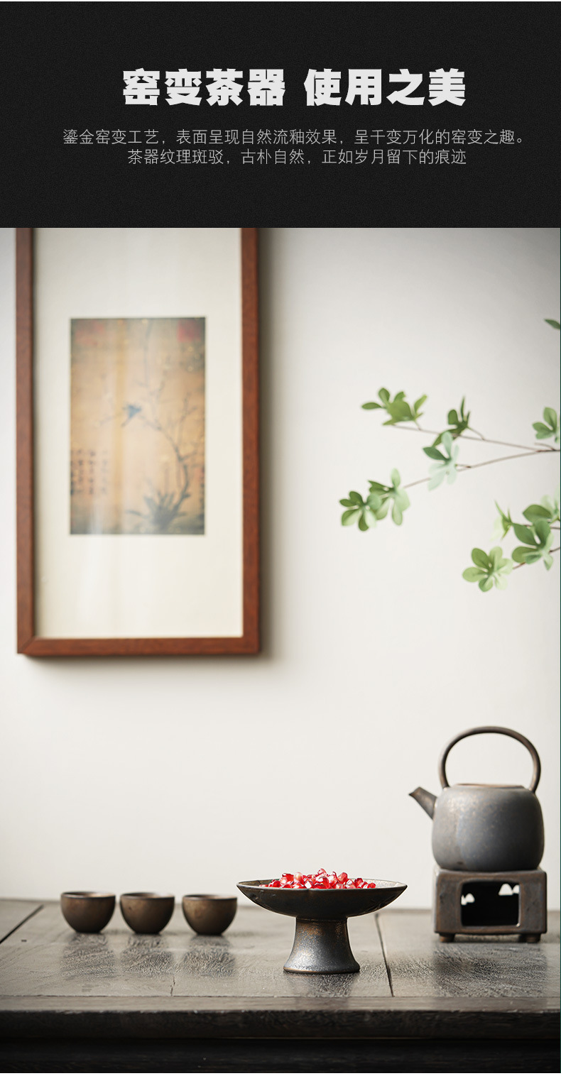 粗陶高脚水果盘复古鎏金釉盘子家用干果碟酒店餐厅蛋糕托盘花纹