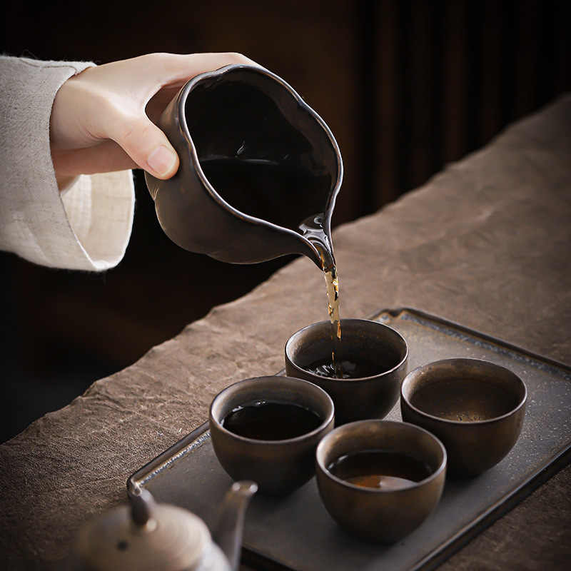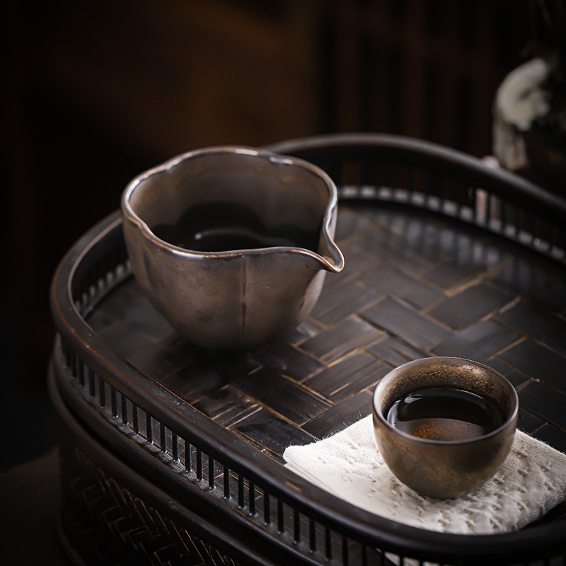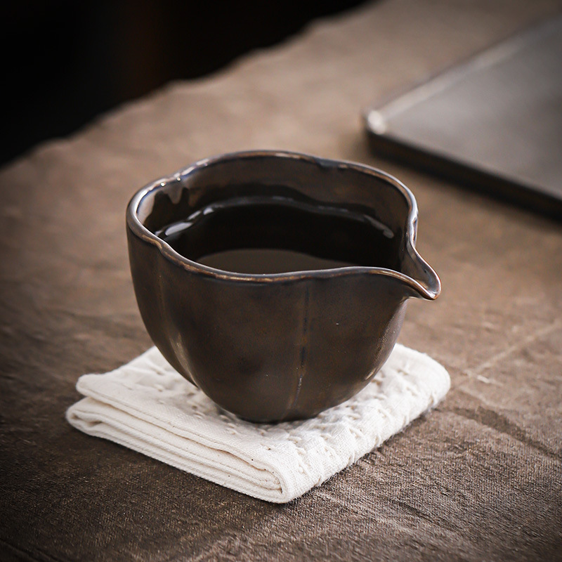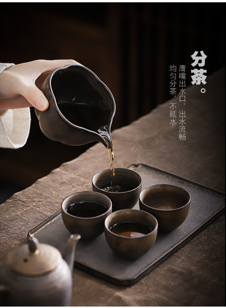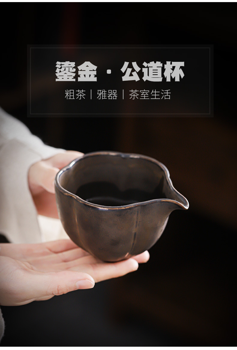 手工薄胎公道杯鎏金釉公杯茶海陶瓷日式分茶器功夫茶具茶漏配件
