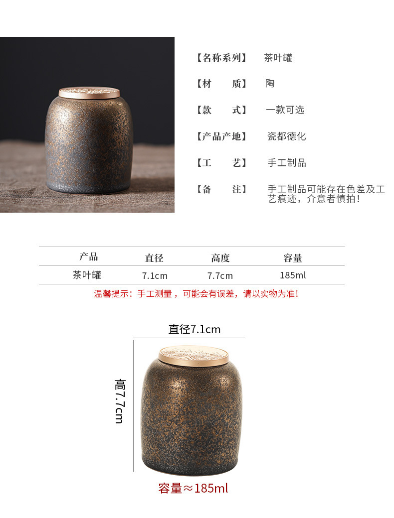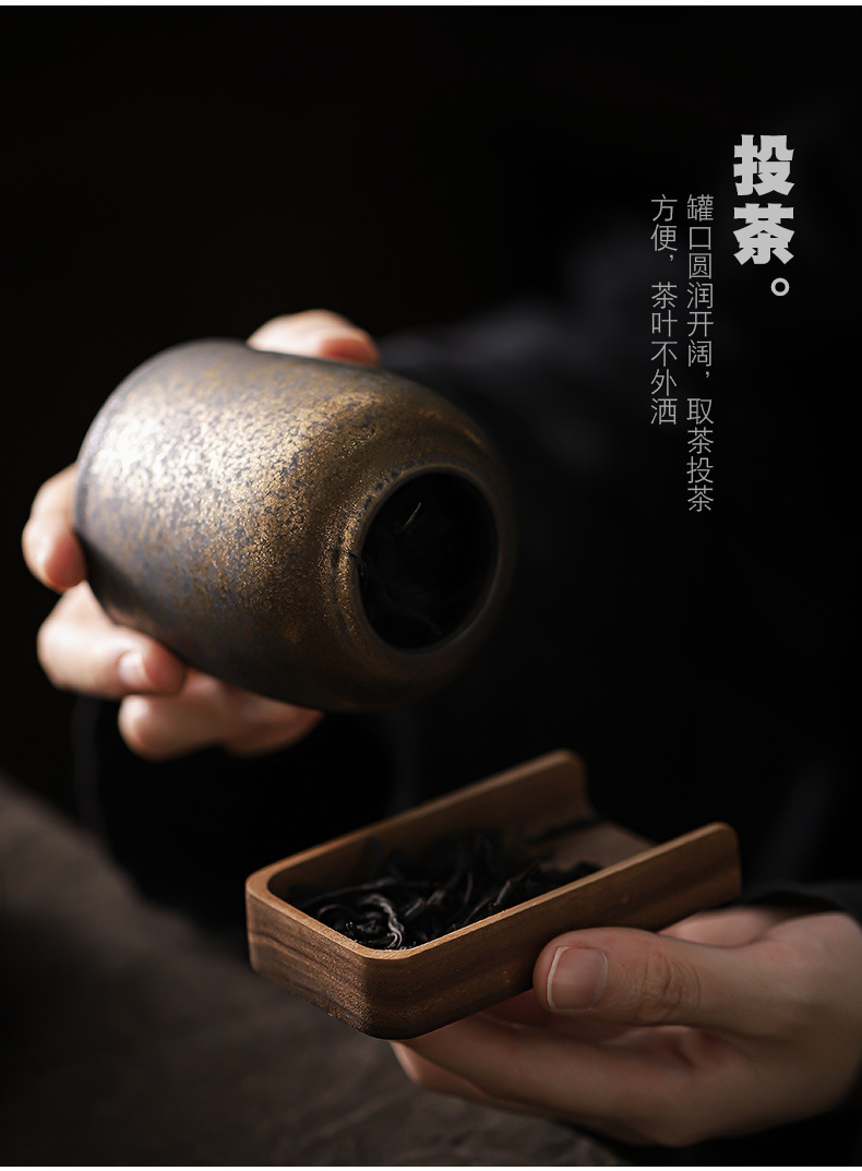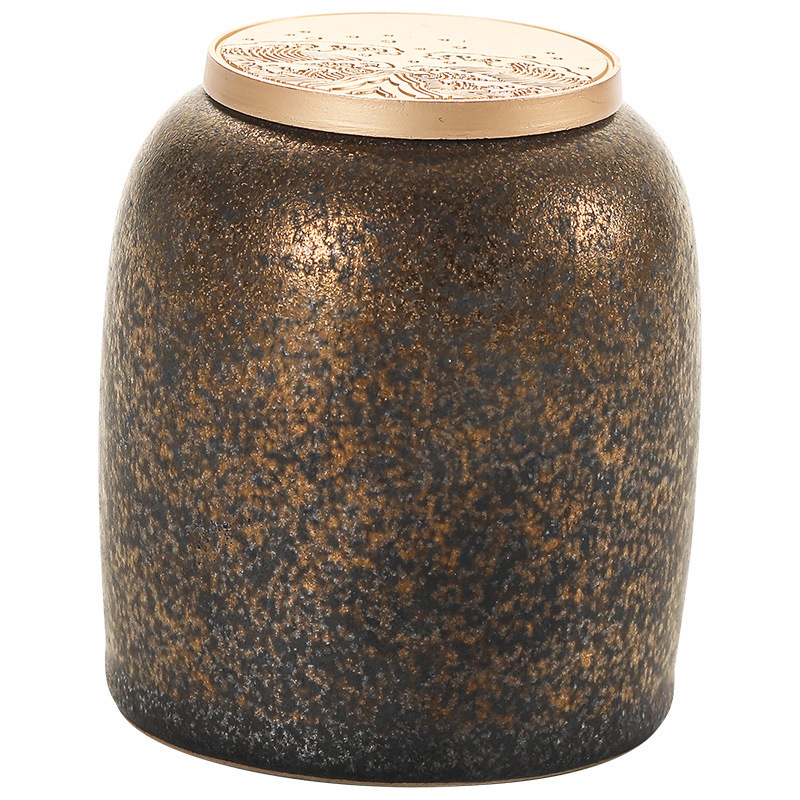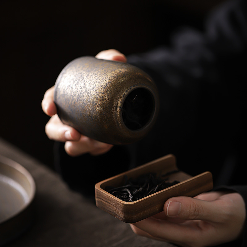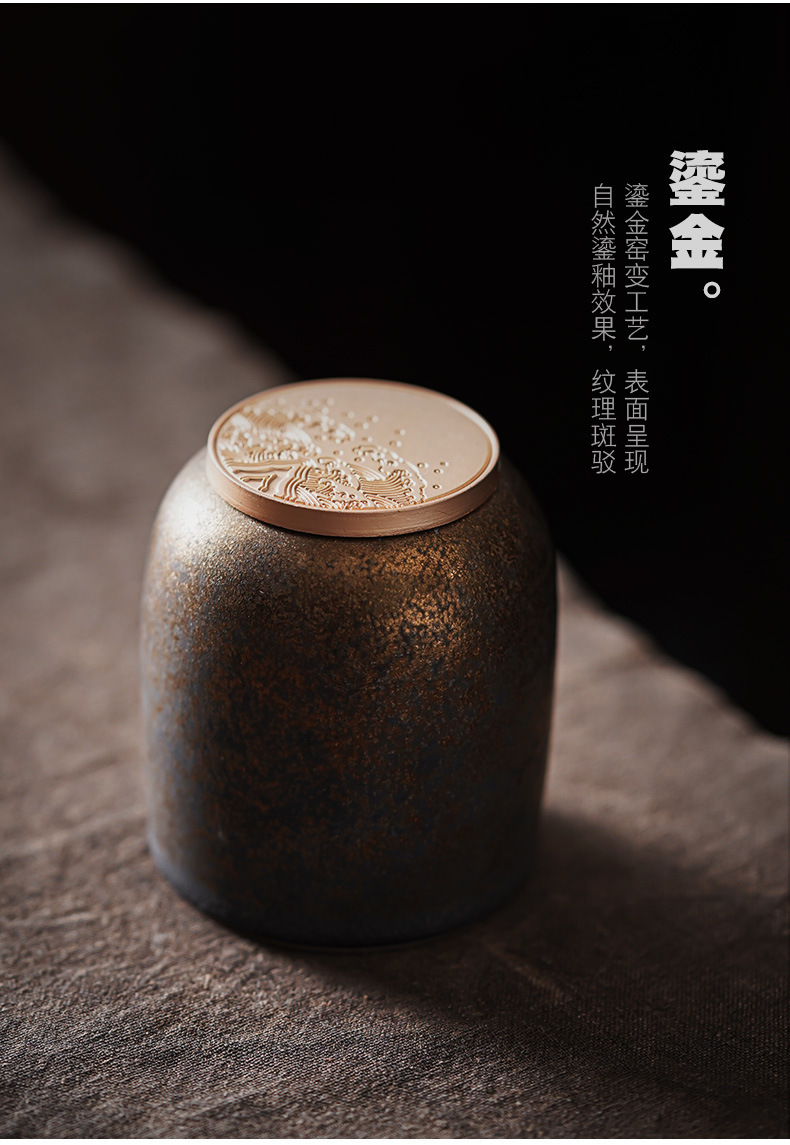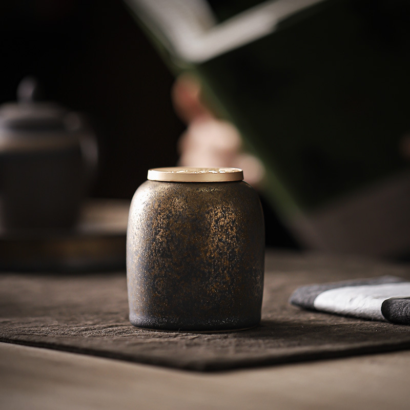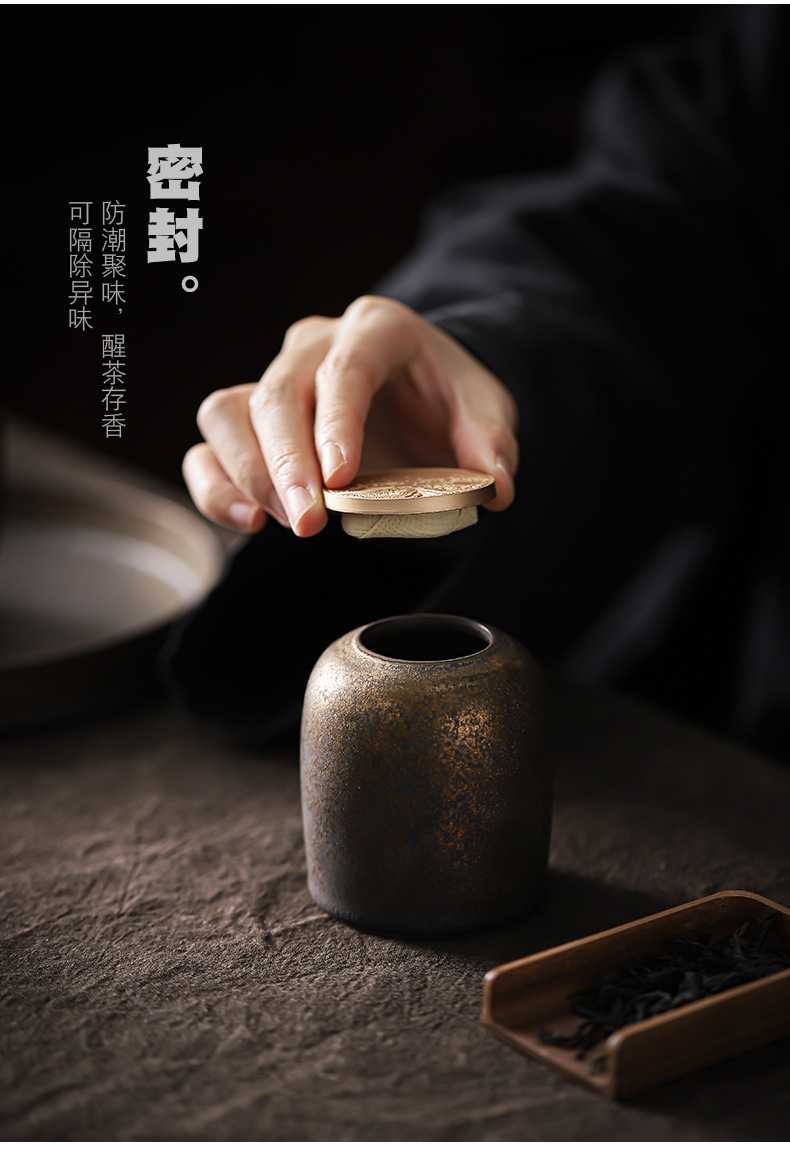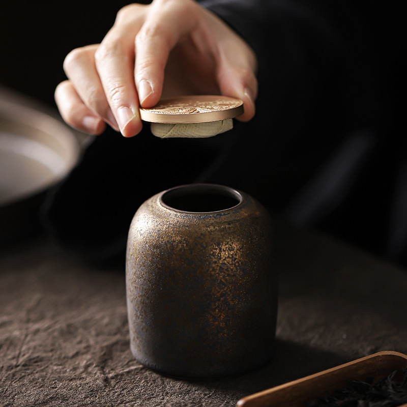 复古茶叶罐鎏金陶瓷小号存茶罐创意茶叶密封储茶罐茶醒茶罐便携